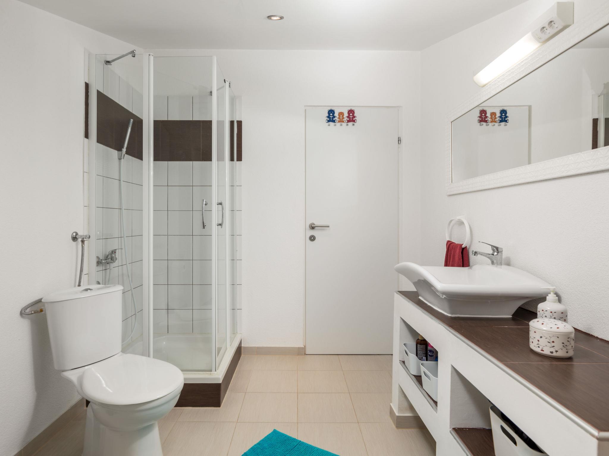 7-Zimmer-Villa 300 m2 auf 3 Stockwerken. Geräumig, geschmackvoll eingerichtet: grosses Wohn-/Esszimmer 65 m2 mit Kabel-TV und Klimaanlage. Ausgang zur Terrasse. 1 Zimmer mit 1 Doppelbett (180 cm, Länge 200 cm). 1 Zimmer mit 1 Doppelbett (2 x 90 cm, Länge 200 cm). 1 Zimmer mit 1 Doppelbett (160 cm, Länge 200 cm). Ausgang zur Terrasse. Offene Küche (Backofen, Geschirrspüler, 4 Glaskeramikplatten, Wasserkocher, Mikrowelle, Tiefkühler, elektrische Kaffeemaschine). Bad/WC, Dusche/WC, Doppelwaschbecken, Whirlbadewanne mit Eckbadewanne. Unteres Geschoss: Dusche/WC. Obergeschoss: (Aussentreppe) abgeschrägtes grosses Wohn-/Esszimmer 50 m2, Deckenhöhe 100 - 280 cm mit TV und Klimaanlage. Ausgang zum Balkon, zur Terrasse. 1 abgeschrägtes Zimmer 24 m2, Deckenhöhe 100 - 270 cm mit 1 Doppelbett (180 cm, Länge 200 cm). 1 abgeschrägtes Zimmer 25 m2, Deckenhöhe 100 - 270 cm mit 1 Doppelbett (160 cm, Länge 200 cm). Offene Küche (Backofen, 4 Glaskeramikplatten, Wasserkocher, Tiefkühler, elektrische Kaffeemaschine), Deckenhöhe 100 - 270 cm. Dusche/WC. Kleiner Balkon 3 m2, Südwestlage, 2 grosse Terrassen 50 m2 teilweise überdacht Terrasse 7 m2. Terrassenmöbel, Liegestühle (8). Herrliche Panoramasicht auf das Meer. Zur Verfügung: Waschmaschine, Safe, Babybett, Haartrockner. Internet (WLAN, gratis). Parkplatz (eingezäunt, 3 Autos). Maximal 2 Haustiere/Hunde erlaubt. Keine interne Verbindung zwischen den separaten Wohneinheiten. Bei Belegung mit weniger Personen als der maximalen Personenzahl steht eine Etage nicht zur Verfügung.