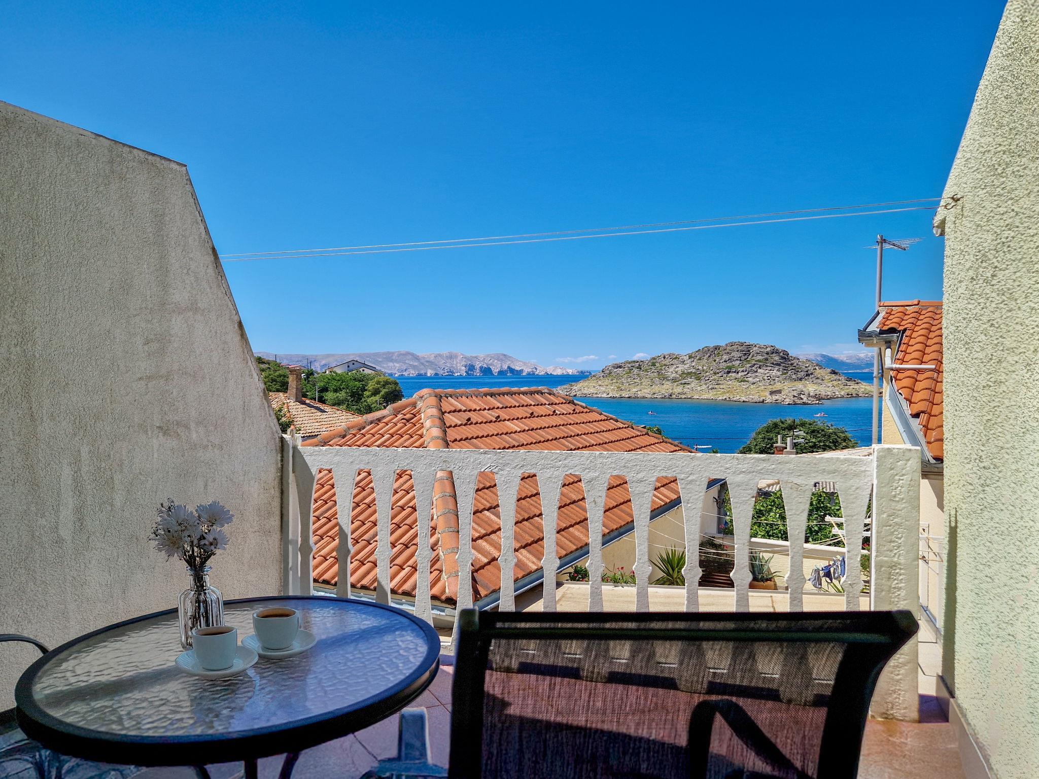 8-Zimmer-Haus 170 m2 auf 3 Stockwerken. Wohn-/Esszimmer mit Sat-TV und Klimaanlage. Ausgang zur Terrasse. 1 Zimmer mit 1 Bett (90 cm, Länge 200 cm), 1 Doppelbett (2 x 90 cm, Länge 200 cm). 1 Zimmer mit 1 franz. Bett (160 cm, Länge 200 cm). Küche (Backofen, Geschirrspüler, 4 Induktionskochplatten, Toaster, Wasserkocher, Mikrowelle, elektrische Kaffeemaschine). Dusche/WC. Obergeschoss: (Aussentreppe) Wohn-/Esszimmer mit Sat-TV. 1 Zimmer mit 2 Betten (90 cm, Länge 200 cm), Dusche/WC. 2 Zimmer, jedes Zimmer mit 1 franz. Bett (160 cm, Länge 200 cm), Dusche/WC und Klimaanlage. Ausgang zum Balkon. Offene Küche (Backofen, Geschirrspüler, 4 Induktionskochplatten, Toaster, Wasserkocher, Mikrowelle, elektrische Kaffeemaschine) mit Esstisch. Dusche/WC. 2. Obergeschoss: (steile Treppe) 1 abgeschrägtes Zimmer mit 1 franz. Bett (160 cm, Länge 200 cm), sep. WC und Klimaanlage. Keine Heizmöglichkeit. 4 Balkone 5 m2, Terrasse 15 m2. Terrassenmöbel, Balkonmöbel, Liegestühle. Sicht auf das Meer. Zur Verfügung: Internet (WLAN, gratis). Maximal 1 kleines Haustier/Hund erlaubt.