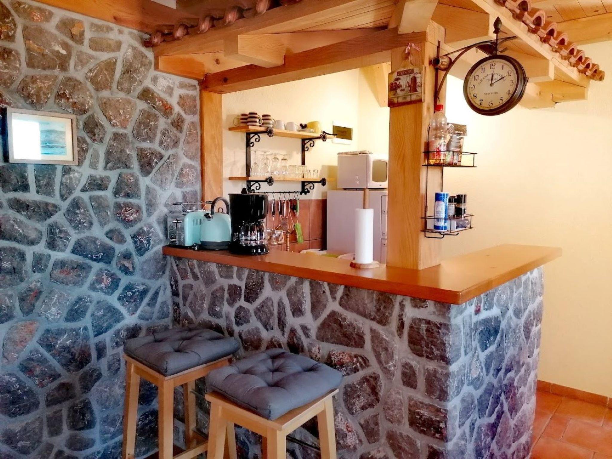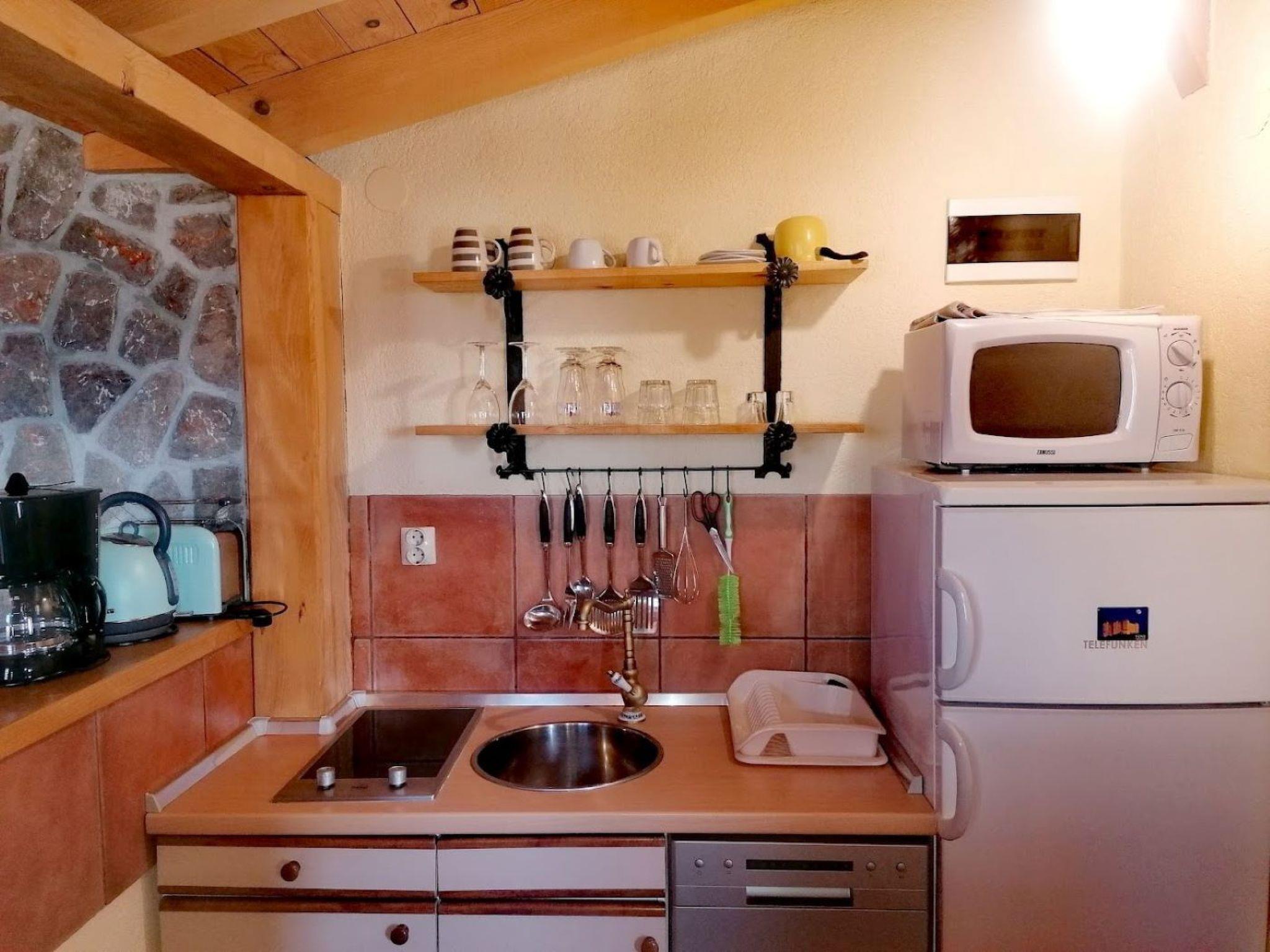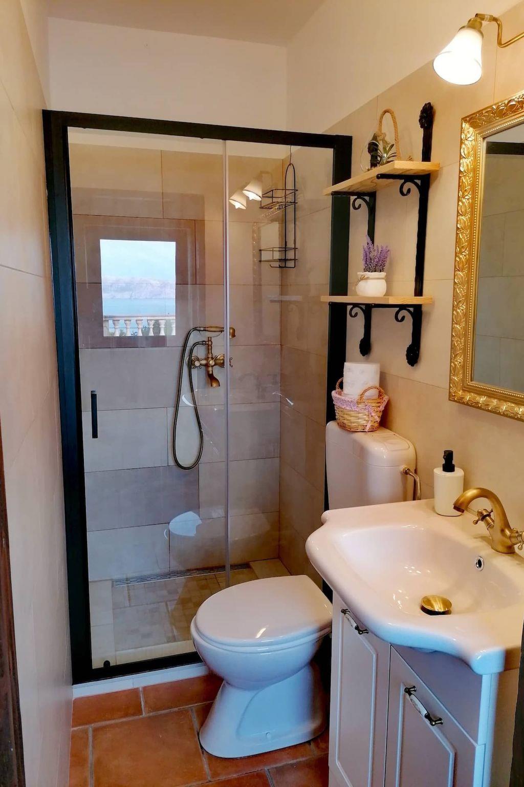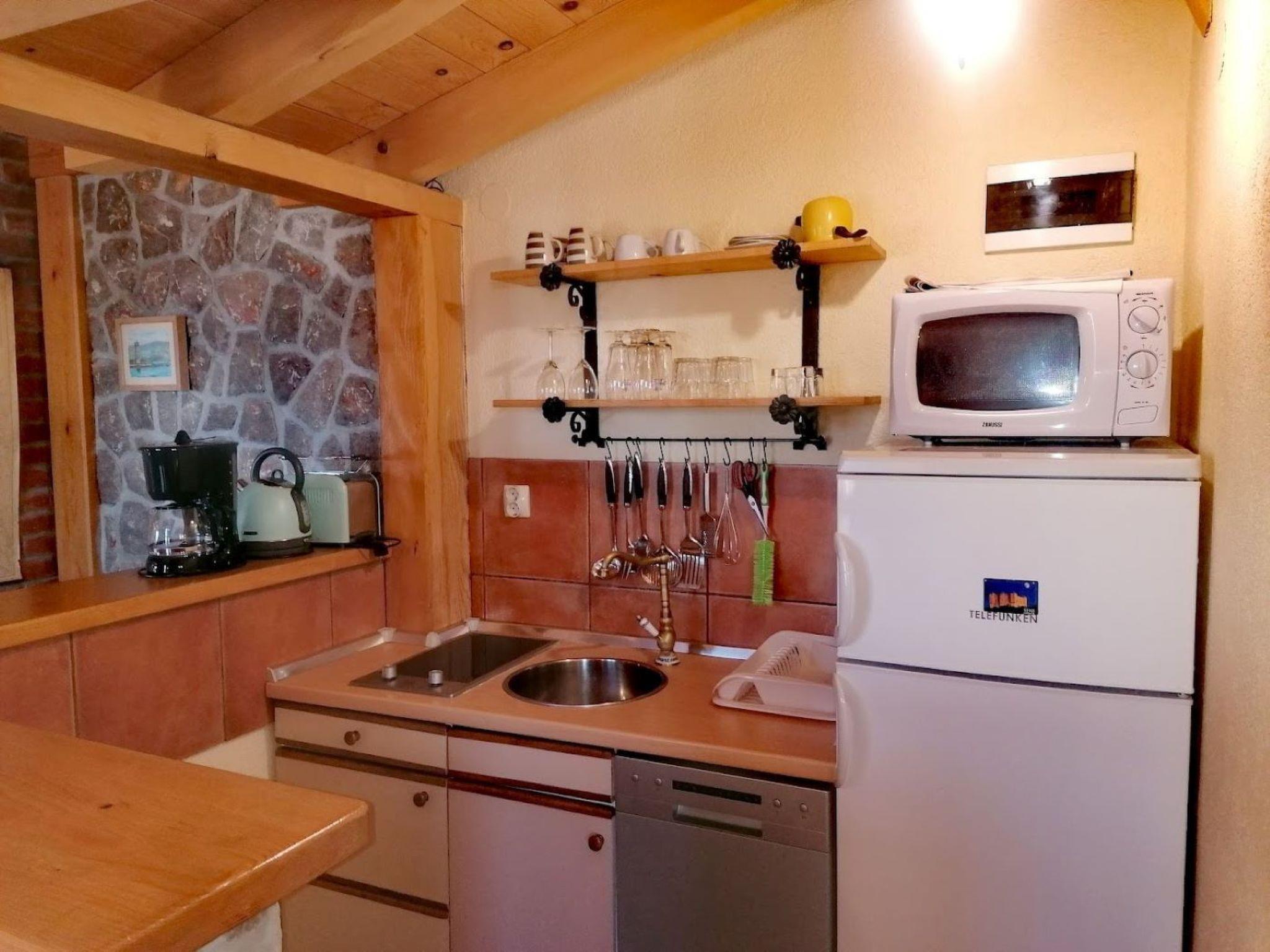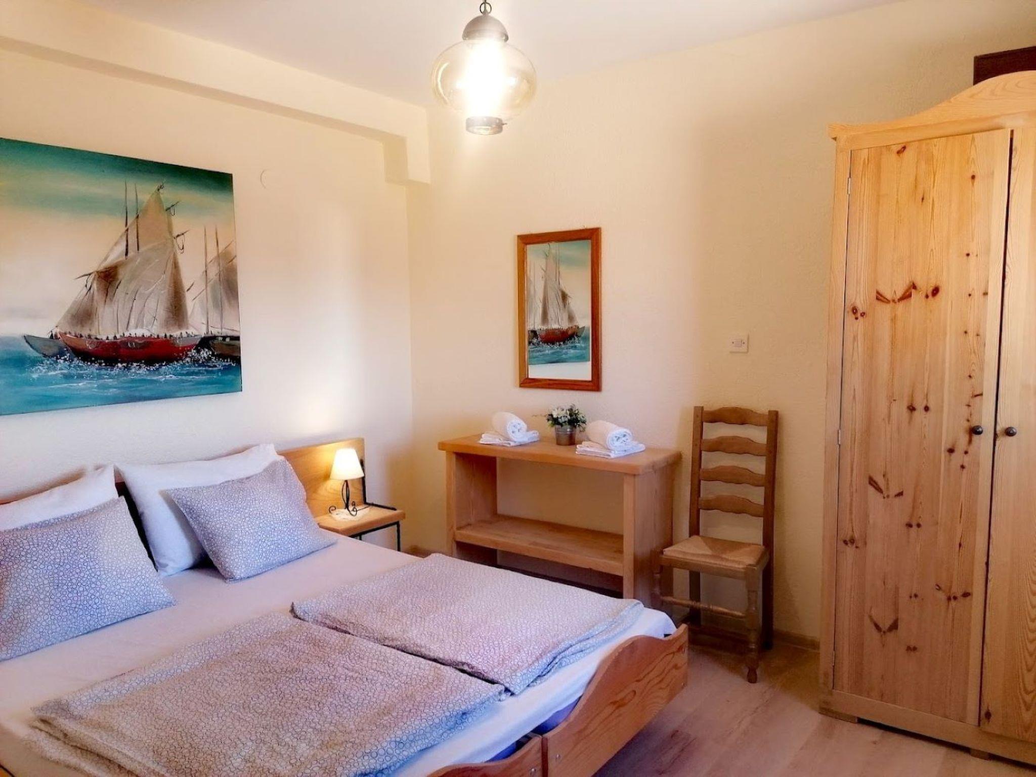 Die Wohnung befindet sich im Erdgeschoss des Hauses. Sie ist ca. 55 m² groß und bietet Platz für vier Personen. Das Wohn-/Esszimmer ist mit einem Schlafsofa für zwei Personen und einem Flachbild-Fernseher eingerichtet. Der Essbereich ist mit einem Holztisch und zwei passenden Sitzbänken rustikal gestaltet, was perfekt mit dem Sichtmauerwerk und der Holzbalkendecke harmoniert. Der angrenzende Kochbereich besitzt einen gemauerten Küchentresen, ebenfalls Sichtmauerwerk, und ist mit Induktionsherd, Kühlschrank, Mikrowelle und Wasserkocher ausgestattet. Das gemütliche Schlafzimmer verfügt über ein 160 cm breites Doppelbett und einen Kleiderschrank. Die Wohnung hat ein Badezimmer, welches mit Dusche, WC und Waschbecken ausgestattet ist. Auch ein WLAN-Anschluss ist vorhanden. Die Klimaanalge befindet sich im Wohnraum und ist so positioniert, dass sie die gesamte Wohnung kühl halten kann.