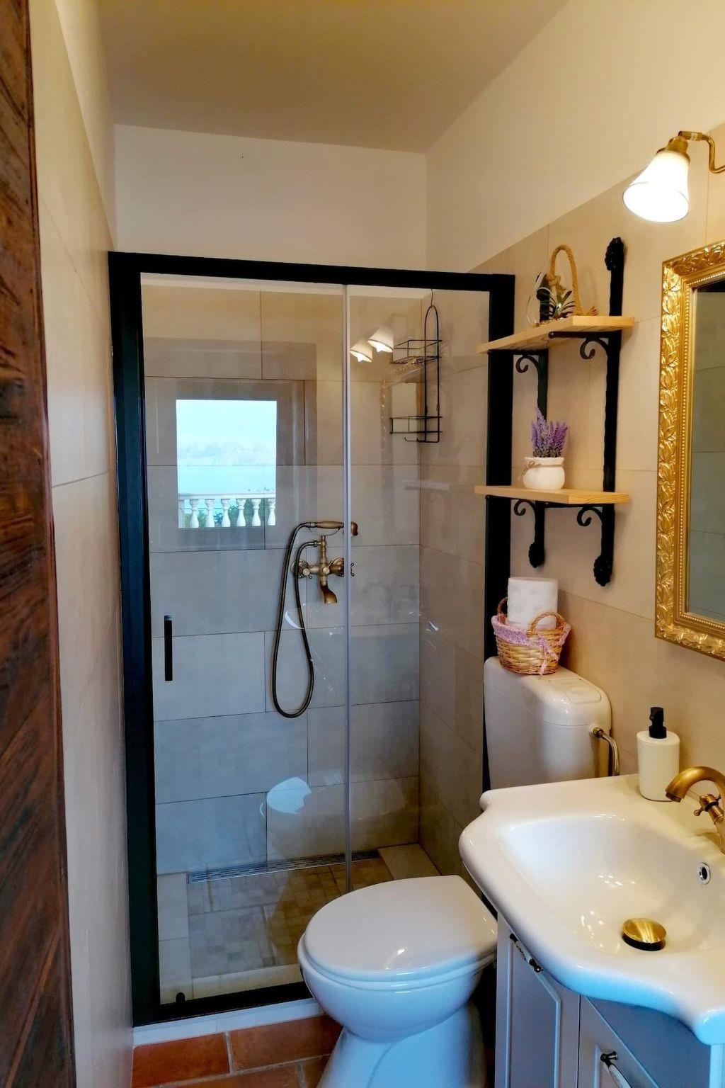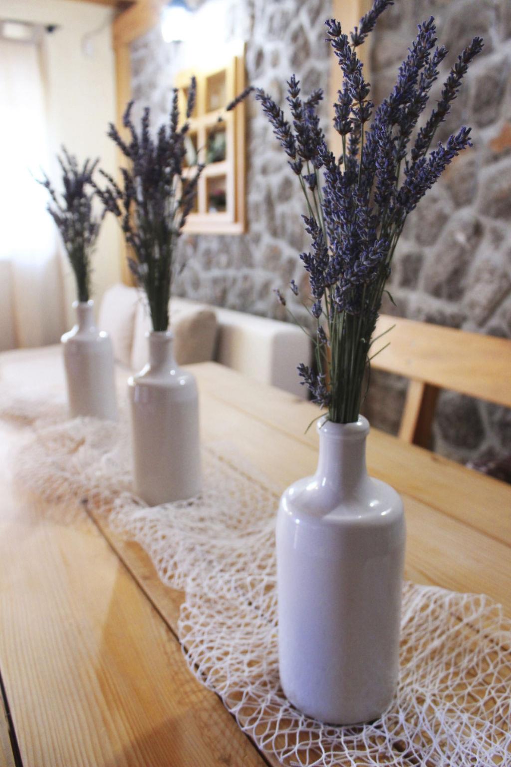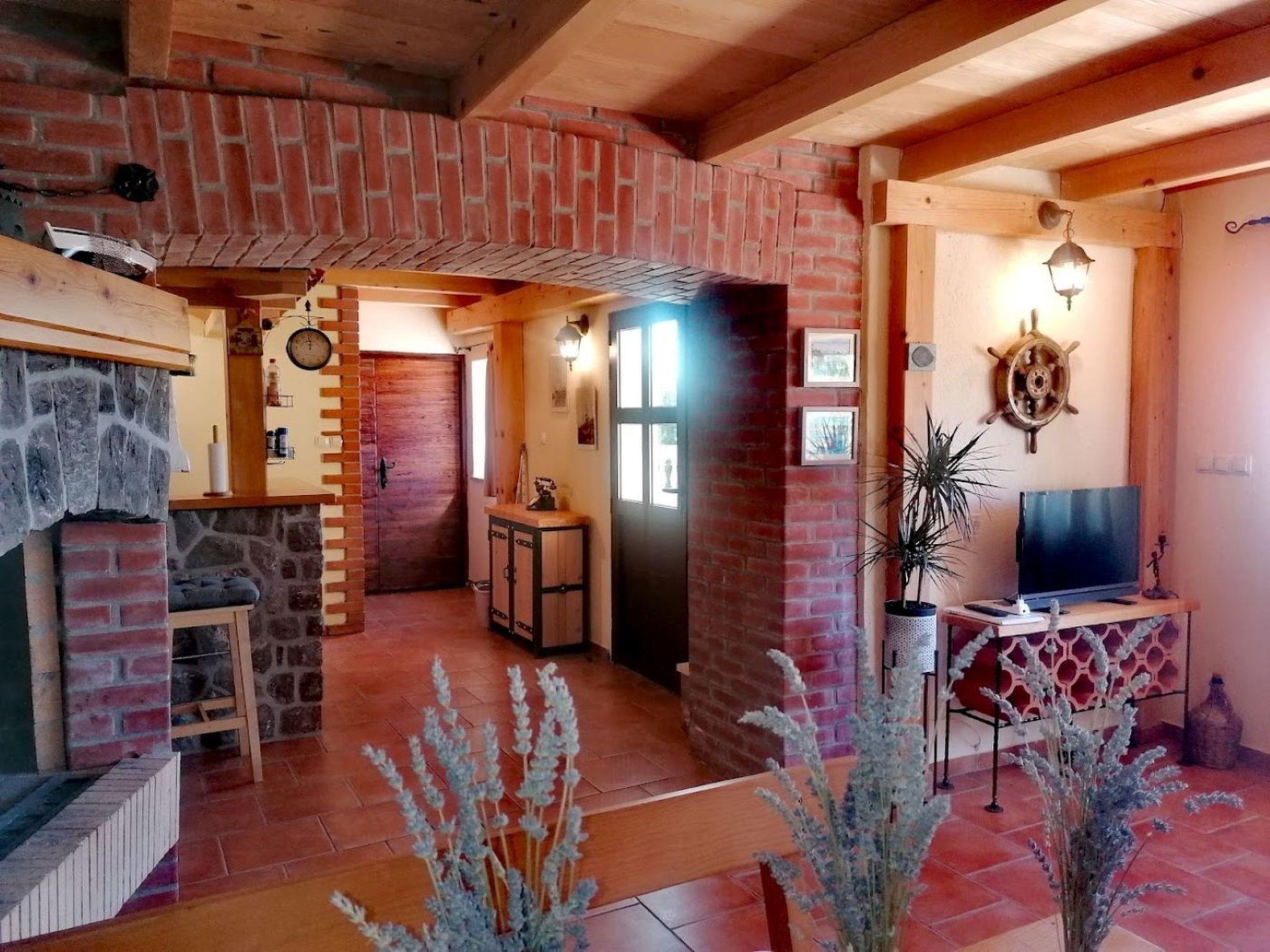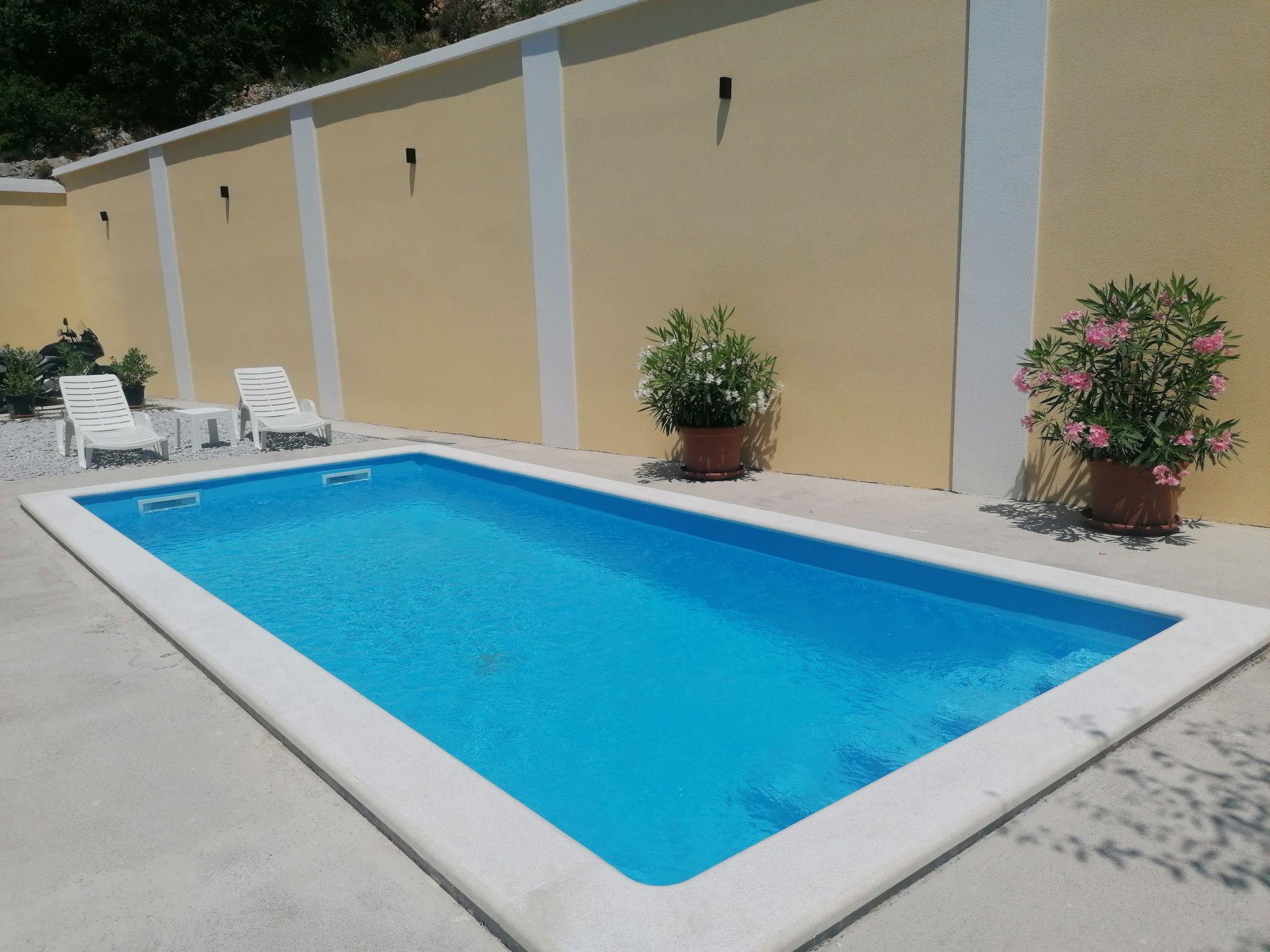 Die Wohnung befindet sich im Erdgeschoss des Hauses. Sie ist ca. 55 m² groß und bietet Platz für vier Personen. Das Wohn-/Esszimmer ist mit einem Schlafsofa für zwei Personen und einem Flachbild-Fernseher eingerichtet. Der Essbereich ist mit einem Holztisch und zwei passenden Sitzbänken rustikal gestaltet, was perfekt mit dem Sichtmauerwerk und der Holzbalkendecke harmoniert. Der angrenzende Kochbereich besitzt einen gemauerten Küchentresen, ebenfalls Sichtmauerwerk, und ist mit Induktionsherd, Kühlschrank, Mikrowelle und Wasserkocher ausgestattet. Das gemütliche Schlafzimmer verfügt über ein 160 cm breites Doppelbett und einen Kleiderschrank. Die Wohnung hat ein Badezimmer, welches mit Dusche, WC und Waschbecken ausgestattet ist. Auch ein WLAN-Anschluss ist vorhanden. Die Klimaanalge befindet sich im Wohnraum und ist so positioniert, dass sie die gesamte Wohnung kühl halten kann.