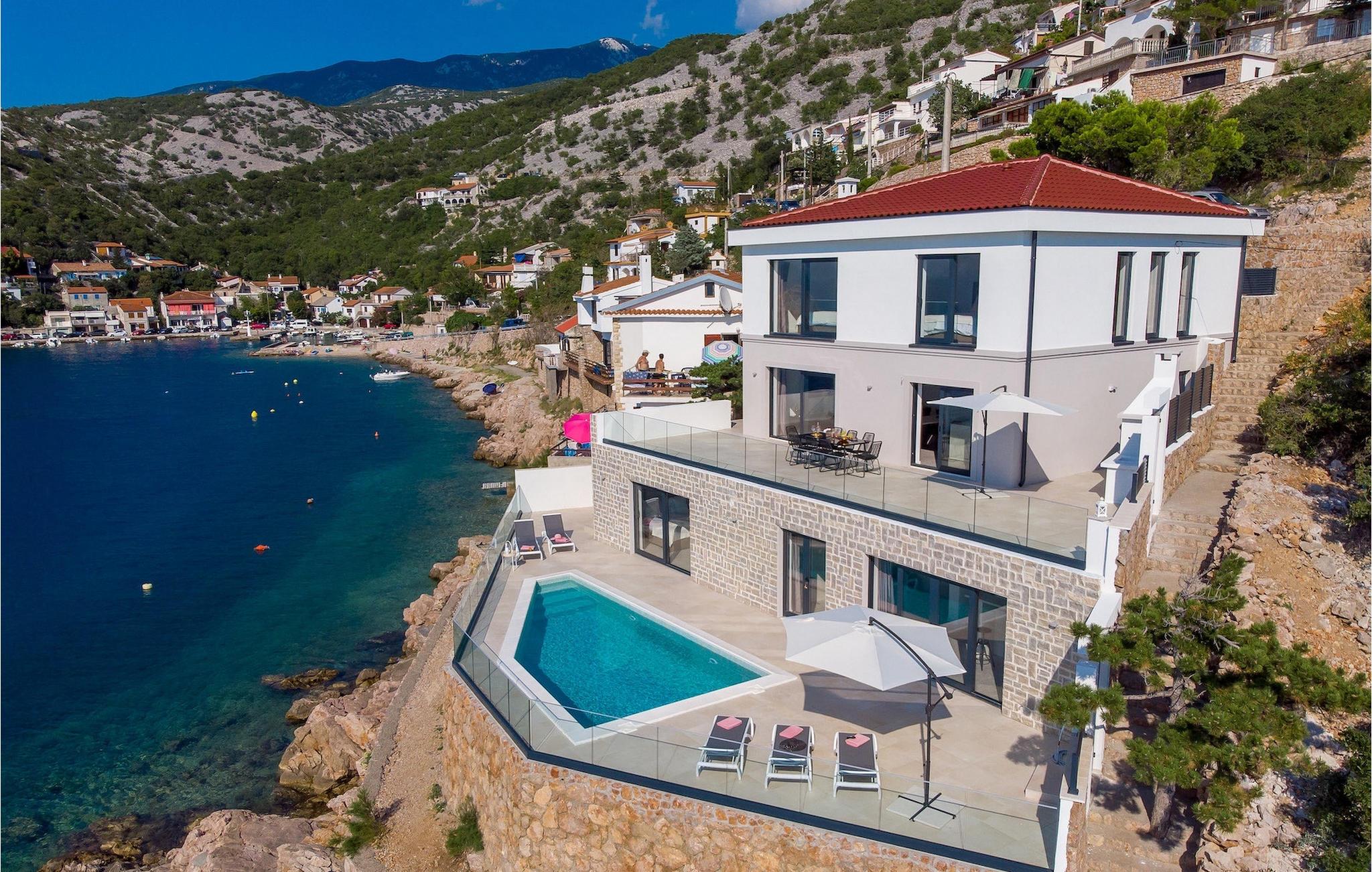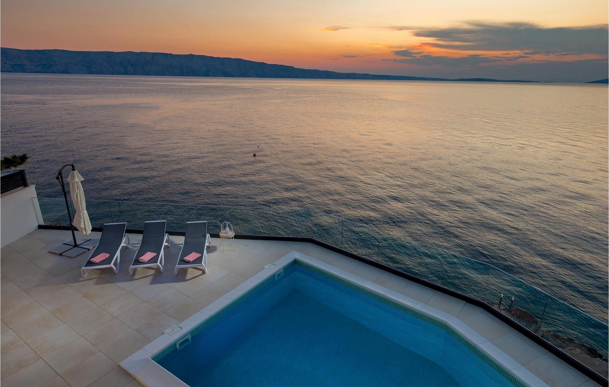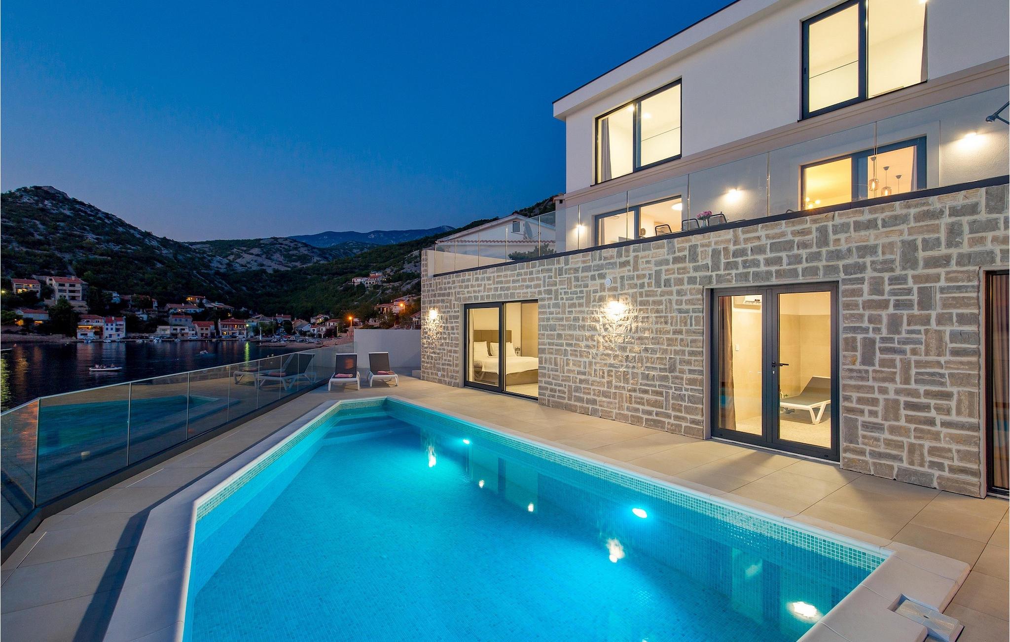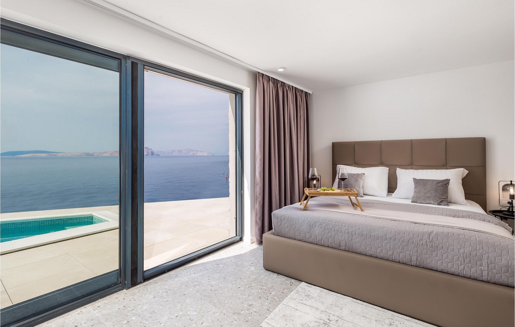 Wenn Sie nach einer Villa für einen perfekten Urlaub direkt am Meer suchen, ist Villa Frami die perfekte Wahl. Die moderne Villa bietet vier Schlafzimmer für acht Gäste, mit der Möglichkeit, bis zu zwei weitere Gäste unterzubringen. Die Villa erstreckt sich über drei Etagen. Im ersten Stock befinden sich drei helle Schlafzimmer mit jeweils einem Doppelbett. Alle Schlafzimmer sind klimatisiert und verfügen über einen TV und ein eigenes Badezimmer. Zwei Schlafzimmer bieten einen fantastischen Meerblick an. Im Erdgeschoss der Villa finden Sie ein geräumiges Wohnzimmer mit TV, sowie eine voll ausgestattete Küche und ein Esszimmer, die in einem Open-Space-Konzept miteinander verbunden sind. Auf der gleichen Etage befindet sich auch ein Spielbereich, in dem die jüngsten Gäste mit PlayStation Spaß haben können. Das Wohnzimmer öffnet sich zur schönen Terasse hin mit Blick auf das Meer und die Insel Rab. Auf der Terrasse finden Sie einen Holzkohlegrill und einen Esstisch, an dem Sie mit Familie und Freunden köstliche Essen bei einem bezaubernden Sonnenuntergang im Hintergrund genießen können. Im unteren Erdgeschoss der Villa befindet sich ein weiteres geräumiges klimatisiertes Schlafzimmer mit Doppelbett, TV und Meerblick. Für eine vollkommen romantische Atmosphäre gibt es eine Badewanne im Schlafzimmer. Hier finden Sie auch einen Spielbereich mit Darts und eine Sommerküche mit Bar, wo Sie sich ein erfrischendes Getränk zubereiten können, welches Sie am privaten Pool auf derselben Ebene genießen können. Neben dem Pool stehen Ihnen Sonnenliegen zur Verfügung, wo Sie sich mit einem guten Buch entspannen oder einfach die beruhigende Atmosphäre genießen können, die das Meer und die Sonne bieten. Das Grundstück ist komplett eingezäunt und verfügt über Parkplätze für 3 Autos. Buchen Sie die Villa Frami und verbringen Sie einen unvergesslichen Urlaub am Meer mit Familie und Freunden.Die Villa Frami befindet sich in der kleinen Stadt Starigrad in der Nähe von Senj im Naturpark Velebit, direkt am Meer, wo sich der mächtige Berg und das Meer treffen. Für Gäste, die sich für Naturschönheiten und Erholung in unberührter Natur interessieren, ist die Villa Frami ein idealer Ausgangspunkt. Wir empfehlen Ihnen einen Besuch der Stätten an der Liste des UNESCO-Weltkulturerbes - des Nationalparks Nördlicher Velebit und der strengen Reservate Hajducki und Rožanski kukovi. Wir sind sicher, dass Ihnen auch die weltberühmten Plitvicer Seen oder das Bärenschutzgebiet in Kuterevo gefallen werden. Wenn Sie kulturelle und historische Sehenswürdigkeiten besuchen möchten, erreichen Sie in einer halben Stunde Fahrt Senj, die älteste Stadt in diesem Teil der Adria mit der berühmten Festung Nehaj. Auch die Städte Crikvenica, Novi Vinodolski und Rijeka sind nicht weit entfernt. Kiesstrände in der Gegend von Crikvenica und Novi Vinodolski gehören zu den schönsten Stränden an der Adriaküste.