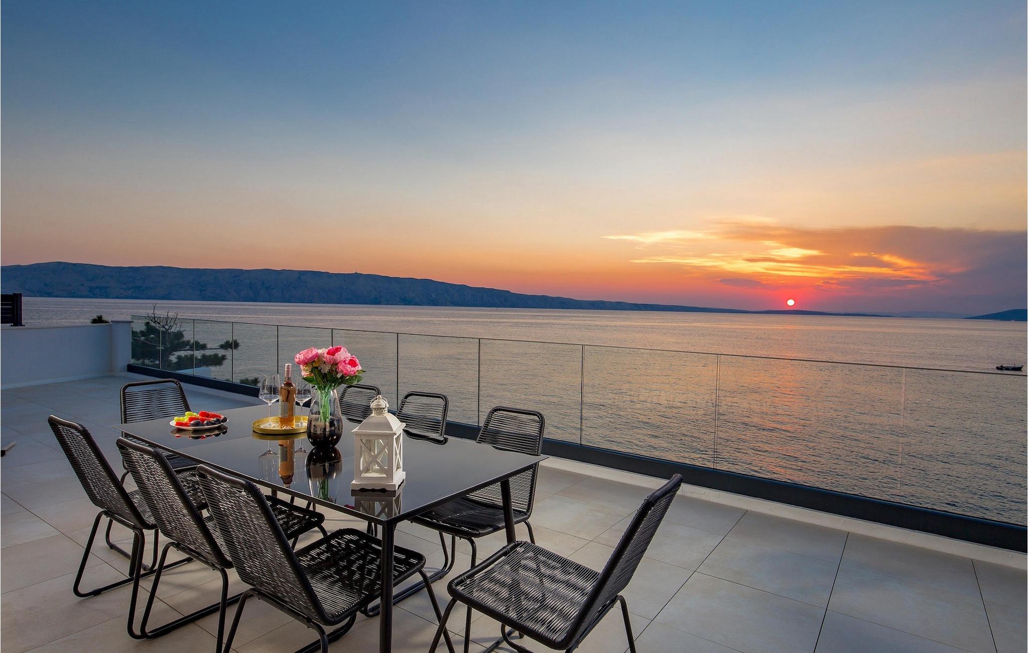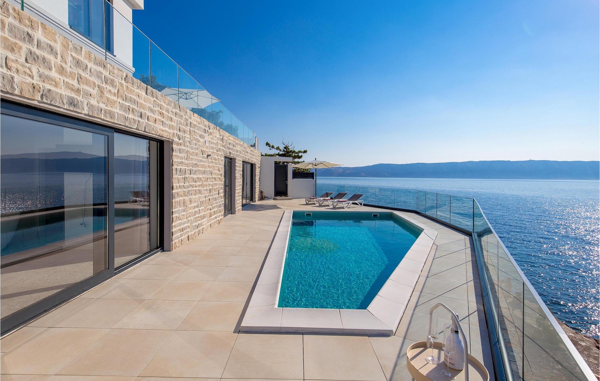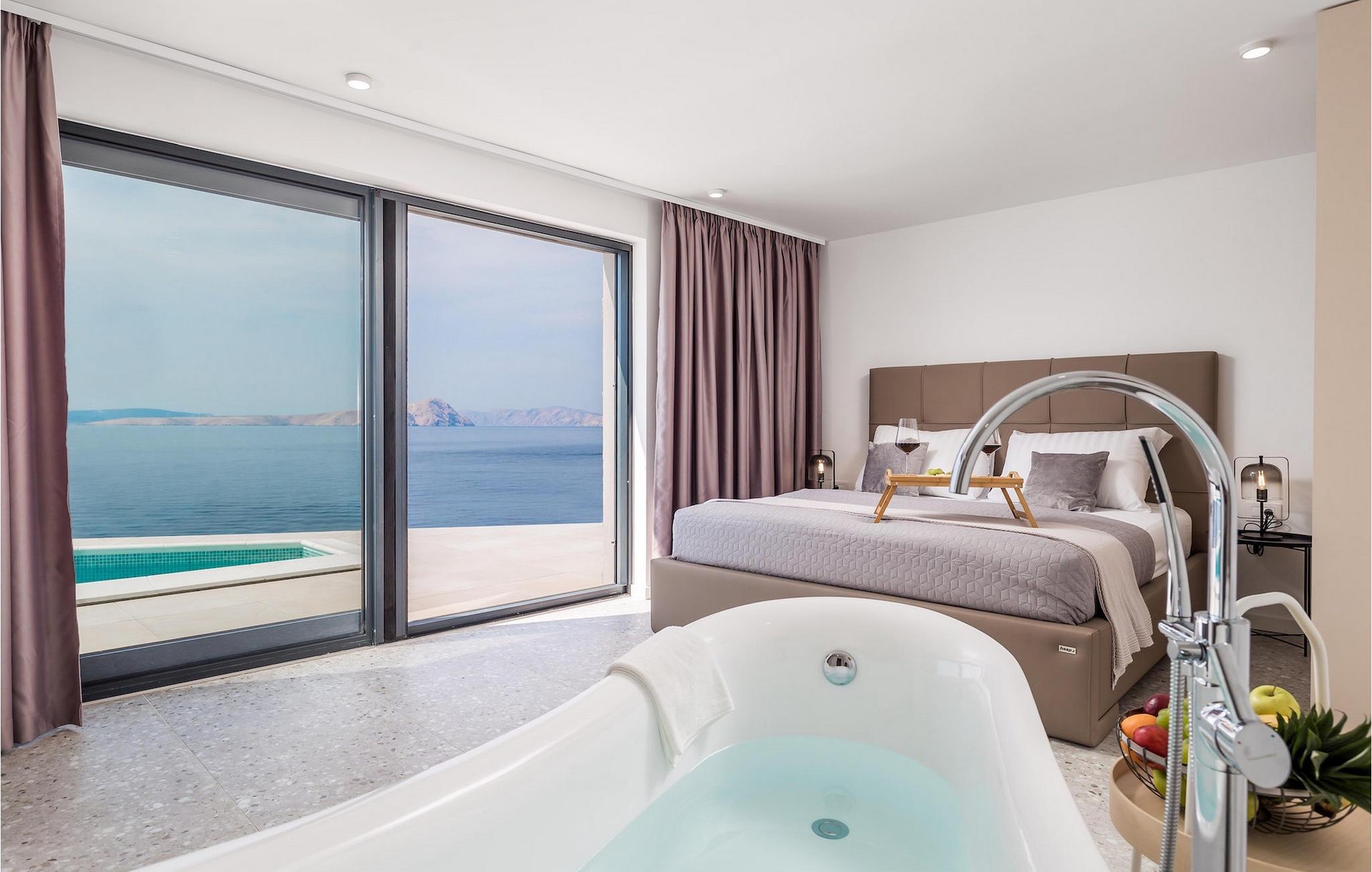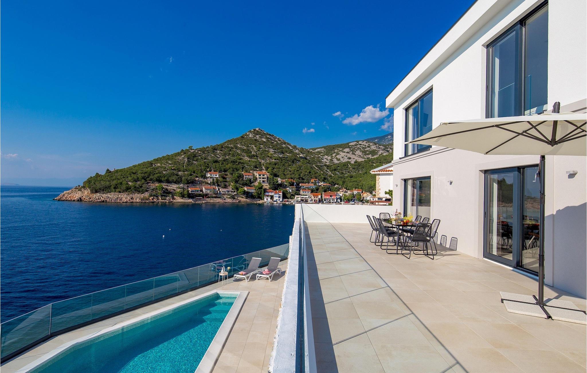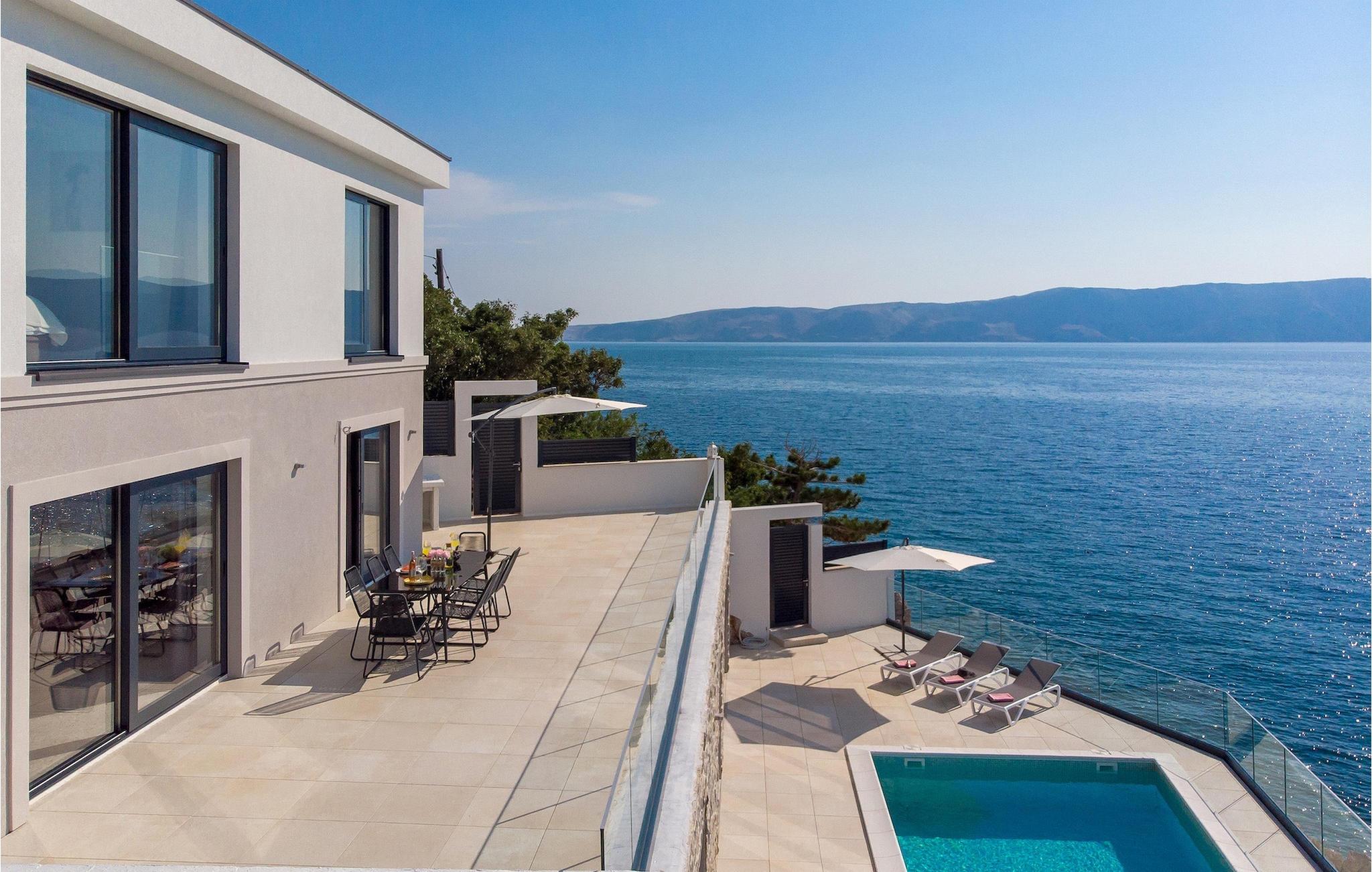 Wenn Sie nach einer Villa für einen perfekten Urlaub direkt am Meer suchen, ist Villa Frami die perfekte Wahl. Die moderne Villa bietet vier Schlafzimmer für acht Gäste, mit der Möglichkeit, bis zu zwei weitere Gäste unterzubringen. Die Villa erstreckt sich über drei Etagen. Im ersten Stock befinden sich drei helle Schlafzimmer mit jeweils einem Doppelbett. Alle Schlafzimmer sind klimatisiert und verfügen über einen TV und ein eigenes Badezimmer. Zwei Schlafzimmer bieten einen fantastischen Meerblick an. Im Erdgeschoss der Villa finden Sie ein geräumiges Wohnzimmer mit TV, sowie eine voll ausgestattete Küche und ein Esszimmer, die in einem Open-Space-Konzept miteinander verbunden sind. Auf der gleichen Etage befindet sich auch ein Spielbereich, in dem die jüngsten Gäste mit PlayStation Spaß haben können. Das Wohnzimmer öffnet sich zur schönen Terasse hin mit Blick auf das Meer und die Insel Rab. Auf der Terrasse finden Sie einen Holzkohlegrill und einen Esstisch, an dem Sie mit Familie und Freunden köstliche Essen bei einem bezaubernden Sonnenuntergang im Hintergrund genießen können. Im unteren Erdgeschoss der Villa befindet sich ein weiteres geräumiges klimatisiertes Schlafzimmer mit Doppelbett, TV und Meerblick. Für eine vollkommen romantische Atmosphäre gibt es eine Badewanne im Schlafzimmer. Hier finden Sie auch einen Spielbereich mit Darts und eine Sommerküche mit Bar, wo Sie sich ein erfrischendes Getränk zubereiten können, welches Sie am privaten Pool auf derselben Ebene genießen können. Neben dem Pool stehen Ihnen Sonnenliegen zur Verfügung, wo Sie sich mit einem guten Buch entspannen oder einfach die beruhigende Atmosphäre genießen können, die das Meer und die Sonne bieten. Das Grundstück ist komplett eingezäunt und verfügt über Parkplätze für 3 Autos. Buchen Sie die Villa Frami und verbringen Sie einen unvergesslichen Urlaub am Meer mit Familie und Freunden.Die Villa Frami befindet sich in der kleinen Stadt Starigrad in der Nähe von Senj im Naturpark Velebit, direkt am Meer, wo sich der mächtige Berg und das Meer treffen. Für Gäste, die sich für Naturschönheiten und Erholung in unberührter Natur interessieren, ist die Villa Frami ein idealer Ausgangspunkt. Wir empfehlen Ihnen einen Besuch der Stätten an der Liste des UNESCO-Weltkulturerbes - des Nationalparks Nördlicher Velebit und der strengen Reservate Hajducki und Rožanski kukovi. Wir sind sicher, dass Ihnen auch die weltberühmten Plitvicer Seen oder das Bärenschutzgebiet in Kuterevo gefallen werden. Wenn Sie kulturelle und historische Sehenswürdigkeiten besuchen möchten, erreichen Sie in einer halben Stunde Fahrt Senj, die älteste Stadt in diesem Teil der Adria mit der berühmten Festung Nehaj. Auch die Städte Crikvenica, Novi Vinodolski und Rijeka sind nicht weit entfernt. Kiesstrände in der Gegend von Crikvenica und Novi Vinodolski gehören zu den schönsten Stränden an der Adriaküste.
