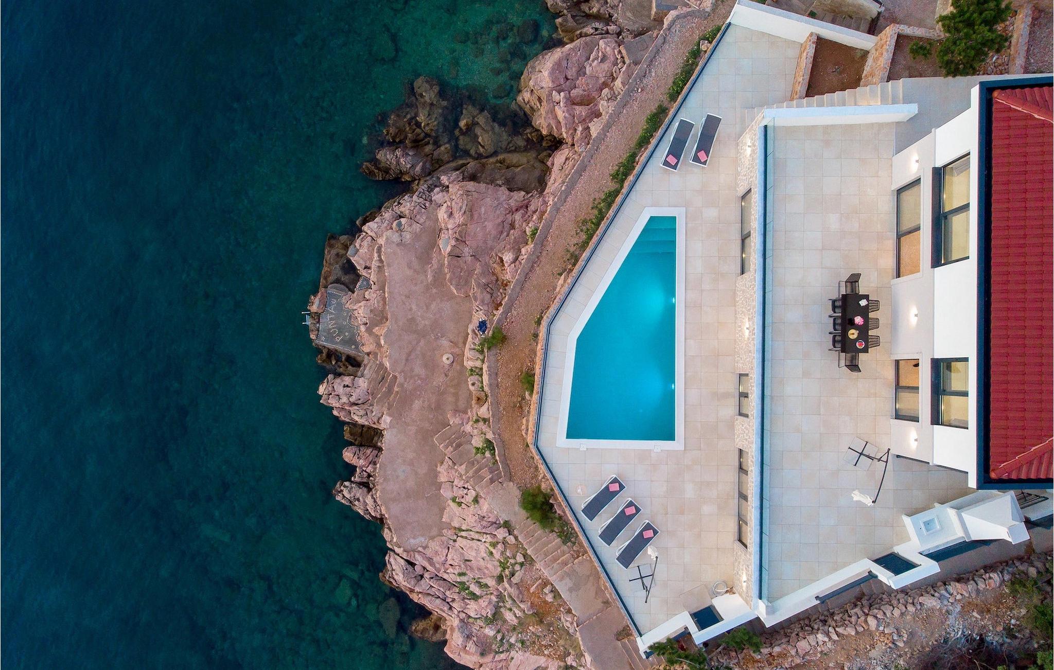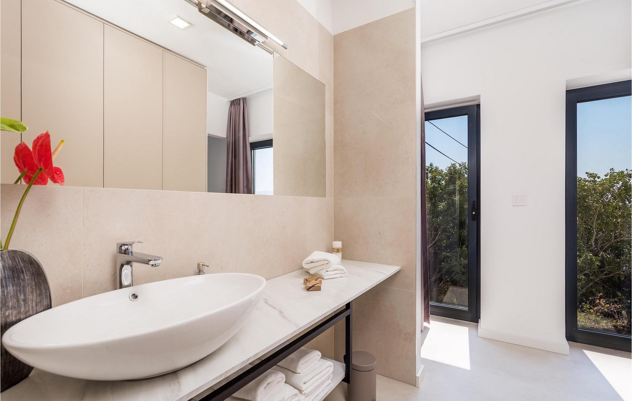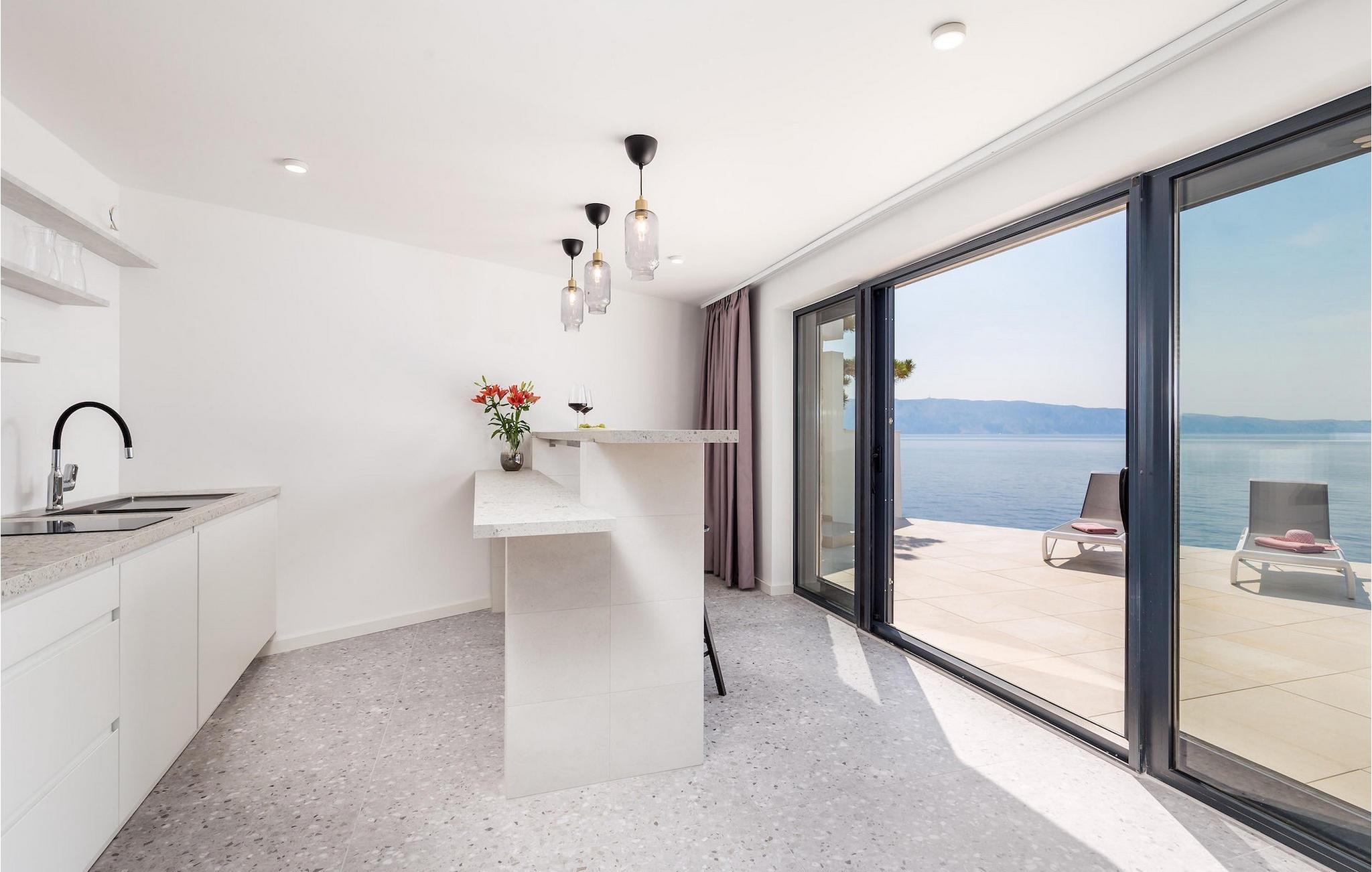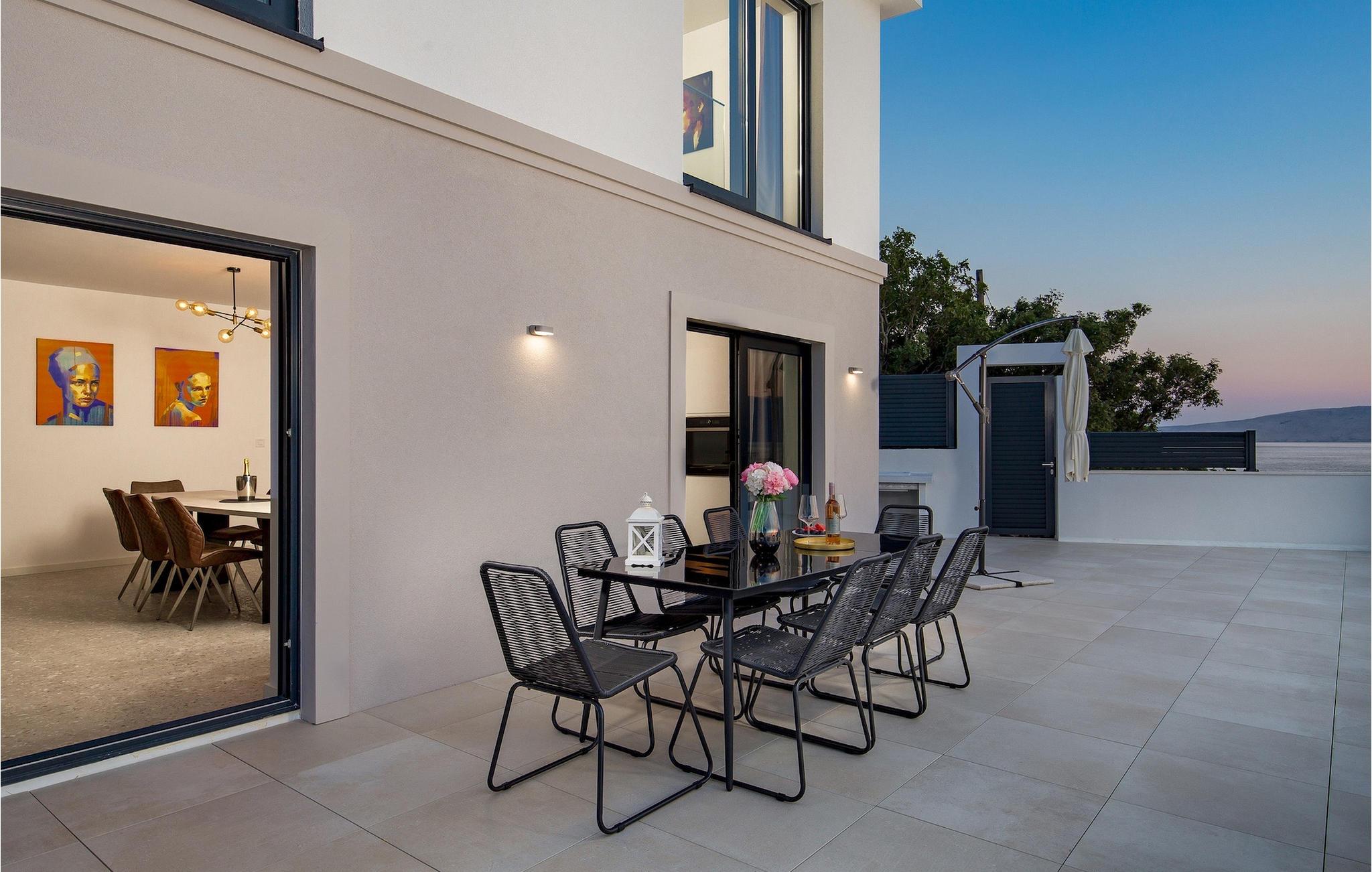 Wenn Sie nach einer Villa für einen perfekten Urlaub direkt am Meer suchen, ist Villa Frami die perfekte Wahl. Die moderne Villa bietet vier Schlafzimmer für acht Gäste, mit der Möglichkeit, bis zu zwei weitere Gäste unterzubringen. Die Villa erstreckt sich über drei Etagen. Im ersten Stock befinden sich drei helle Schlafzimmer mit jeweils einem Doppelbett. Alle Schlafzimmer sind klimatisiert und verfügen über einen TV und ein eigenes Badezimmer. Zwei Schlafzimmer bieten einen fantastischen Meerblick an. Im Erdgeschoss der Villa finden Sie ein geräumiges Wohnzimmer mit TV, sowie eine voll ausgestattete Küche und ein Esszimmer, die in einem Open-Space-Konzept miteinander verbunden sind. Auf der gleichen Etage befindet sich auch ein Spielbereich, in dem die jüngsten Gäste mit PlayStation Spaß haben können. Das Wohnzimmer öffnet sich zur schönen Terasse hin mit Blick auf das Meer und die Insel Rab. Auf der Terrasse finden Sie einen Holzkohlegrill und einen Esstisch, an dem Sie mit Familie und Freunden köstliche Essen bei einem bezaubernden Sonnenuntergang im Hintergrund genießen können. Im unteren Erdgeschoss der Villa befindet sich ein weiteres geräumiges klimatisiertes Schlafzimmer mit Doppelbett, TV und Meerblick. Für eine vollkommen romantische Atmosphäre gibt es eine Badewanne im Schlafzimmer. Hier finden Sie auch einen Spielbereich mit Darts und eine Sommerküche mit Bar, wo Sie sich ein erfrischendes Getränk zubereiten können, welches Sie am privaten Pool auf derselben Ebene genießen können. Neben dem Pool stehen Ihnen Sonnenliegen zur Verfügung, wo Sie sich mit einem guten Buch entspannen oder einfach die beruhigende Atmosphäre genießen können, die das Meer und die Sonne bieten. Das Grundstück ist komplett eingezäunt und verfügt über Parkplätze für 3 Autos. Buchen Sie die Villa Frami und verbringen Sie einen unvergesslichen Urlaub am Meer mit Familie und Freunden.Die Villa Frami befindet sich in der kleinen Stadt Starigrad in der Nähe von Senj im Naturpark Velebit, direkt am Meer, wo sich der mächtige Berg und das Meer treffen. Für Gäste, die sich für Naturschönheiten und Erholung in unberührter Natur interessieren, ist die Villa Frami ein idealer Ausgangspunkt. Wir empfehlen Ihnen einen Besuch der Stätten an der Liste des UNESCO-Weltkulturerbes - des Nationalparks Nördlicher Velebit und der strengen Reservate Hajducki und Rožanski kukovi. Wir sind sicher, dass Ihnen auch die weltberühmten Plitvicer Seen oder das Bärenschutzgebiet in Kuterevo gefallen werden. Wenn Sie kulturelle und historische Sehenswürdigkeiten besuchen möchten, erreichen Sie in einer halben Stunde Fahrt Senj, die älteste Stadt in diesem Teil der Adria mit der berühmten Festung Nehaj. Auch die Städte Crikvenica, Novi Vinodolski und Rijeka sind nicht weit entfernt. Kiesstrände in der Gegend von Crikvenica und Novi Vinodolski gehören zu den schönsten Stränden an der Adriaküste.