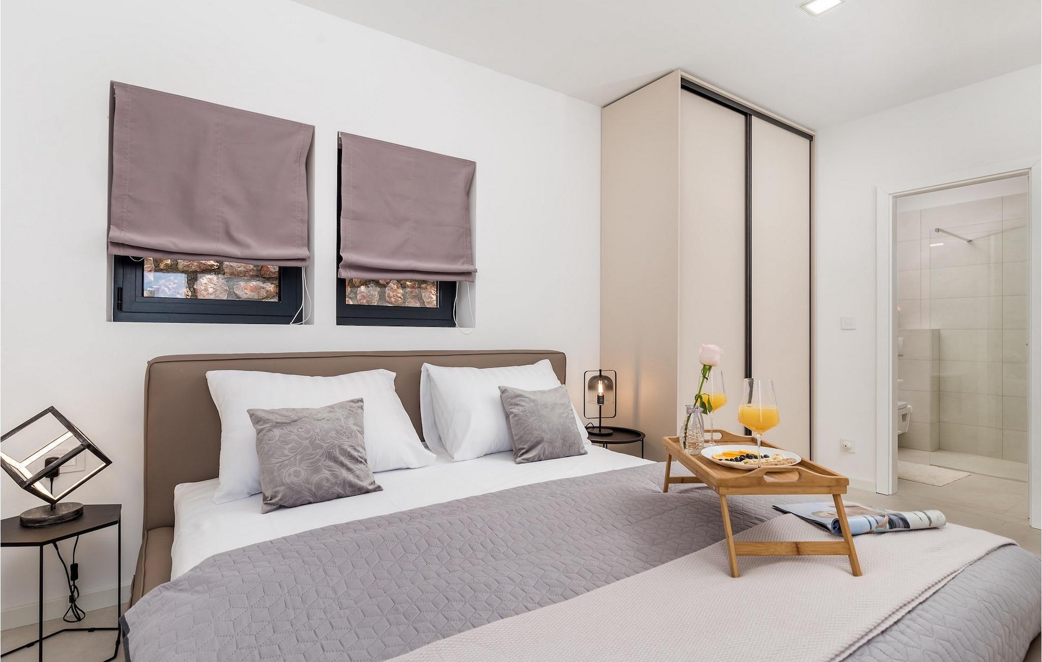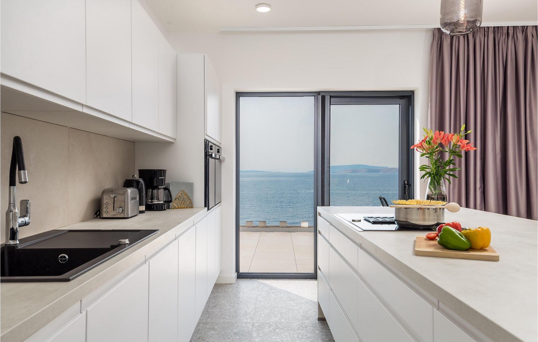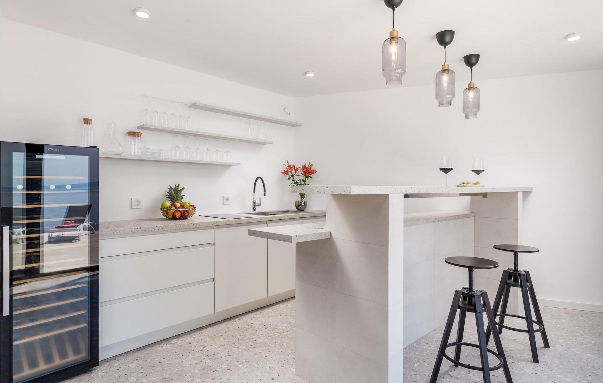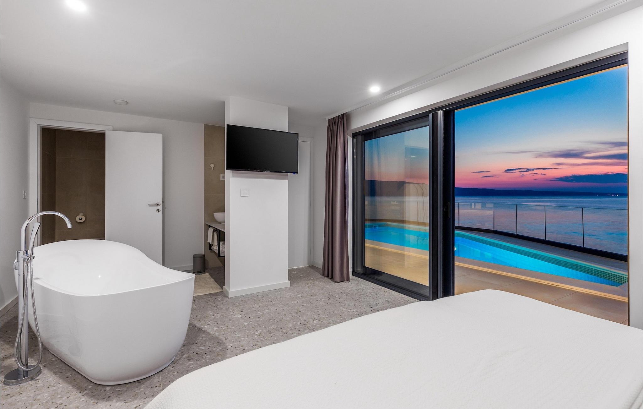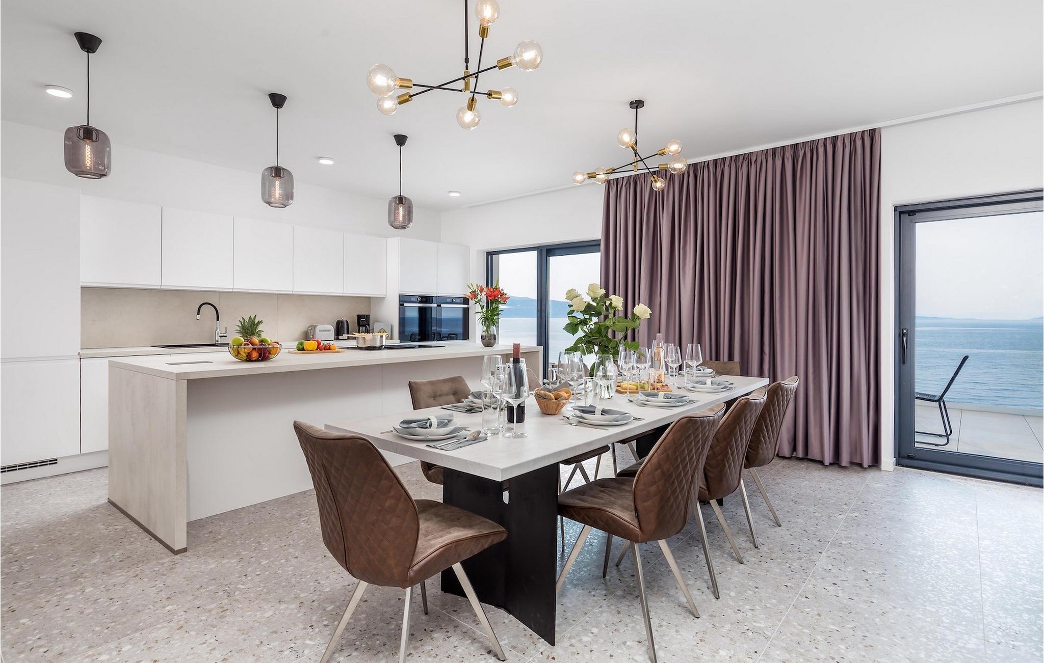 Wenn Sie nach einer Villa für einen perfekten Urlaub direkt am Meer suchen, ist Villa Frami die perfekte Wahl. Die moderne Villa bietet vier Schlafzimmer für acht Gäste, mit der Möglichkeit, bis zu zwei weitere Gäste unterzubringen. Die Villa erstreckt sich über drei Etagen. Im ersten Stock befinden sich drei helle Schlafzimmer mit jeweils einem Doppelbett. Alle Schlafzimmer sind klimatisiert und verfügen über einen TV und ein eigenes Badezimmer. Zwei Schlafzimmer bieten einen fantastischen Meerblick an. Im Erdgeschoss der Villa finden Sie ein geräumiges Wohnzimmer mit TV, sowie eine voll ausgestattete Küche und ein Esszimmer, die in einem Open-Space-Konzept miteinander verbunden sind. Auf der gleichen Etage befindet sich auch ein Spielbereich, in dem die jüngsten Gäste mit PlayStation Spaß haben können. Das Wohnzimmer öffnet sich zur schönen Terasse hin mit Blick auf das Meer und die Insel Rab. Auf der Terrasse finden Sie einen Holzkohlegrill und einen Esstisch, an dem Sie mit Familie und Freunden köstliche Essen bei einem bezaubernden Sonnenuntergang im Hintergrund genießen können. Im unteren Erdgeschoss der Villa befindet sich ein weiteres geräumiges klimatisiertes Schlafzimmer mit Doppelbett, TV und Meerblick. Für eine vollkommen romantische Atmosphäre gibt es eine Badewanne im Schlafzimmer. Hier finden Sie auch einen Spielbereich mit Darts und eine Sommerküche mit Bar, wo Sie sich ein erfrischendes Getränk zubereiten können, welches Sie am privaten Pool auf derselben Ebene genießen können. Neben dem Pool stehen Ihnen Sonnenliegen zur Verfügung, wo Sie sich mit einem guten Buch entspannen oder einfach die beruhigende Atmosphäre genießen können, die das Meer und die Sonne bieten. Das Grundstück ist komplett eingezäunt und verfügt über Parkplätze für 3 Autos. Buchen Sie die Villa Frami und verbringen Sie einen unvergesslichen Urlaub am Meer mit Familie und Freunden.Die Villa Frami befindet sich in der kleinen Stadt Starigrad in der Nähe von Senj im Naturpark Velebit, direkt am Meer, wo sich der mächtige Berg und das Meer treffen. Für Gäste, die sich für Naturschönheiten und Erholung in unberührter Natur interessieren, ist die Villa Frami ein idealer Ausgangspunkt. Wir empfehlen Ihnen einen Besuch der Stätten an der Liste des UNESCO-Weltkulturerbes - des Nationalparks Nördlicher Velebit und der strengen Reservate Hajducki und Rožanski kukovi. Wir sind sicher, dass Ihnen auch die weltberühmten Plitvicer Seen oder das Bärenschutzgebiet in Kuterevo gefallen werden. Wenn Sie kulturelle und historische Sehenswürdigkeiten besuchen möchten, erreichen Sie in einer halben Stunde Fahrt Senj, die älteste Stadt in diesem Teil der Adria mit der berühmten Festung Nehaj. Auch die Städte Crikvenica, Novi Vinodolski und Rijeka sind nicht weit entfernt. Kiesstrände in der Gegend von Crikvenica und Novi Vinodolski gehören zu den schönsten Stränden an der Adriaküste.