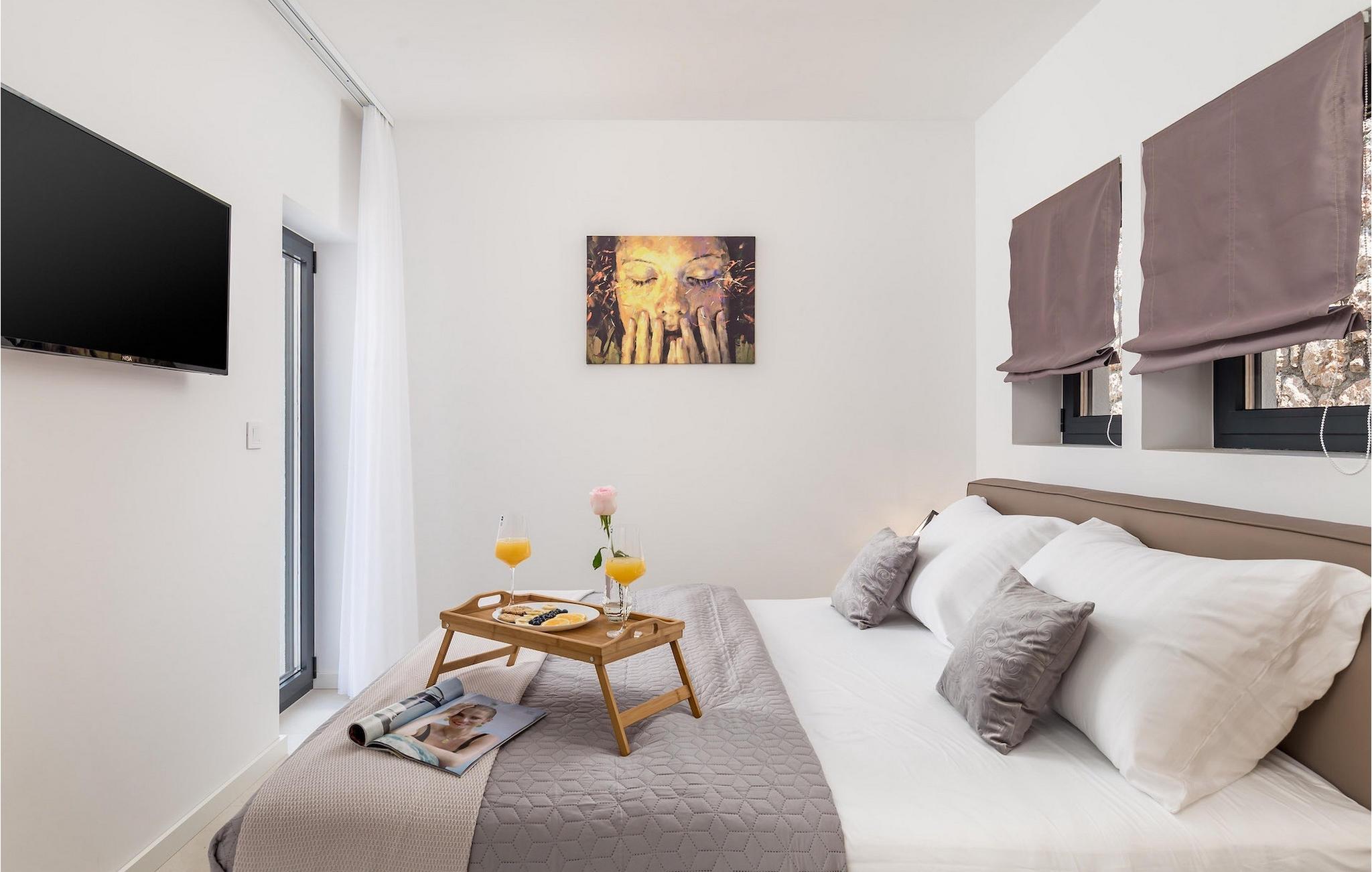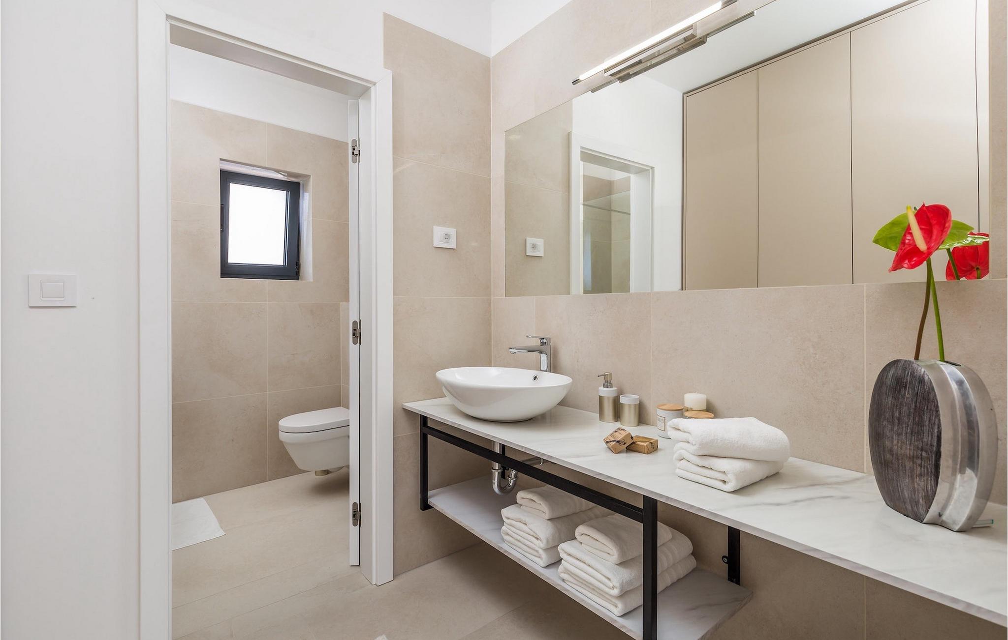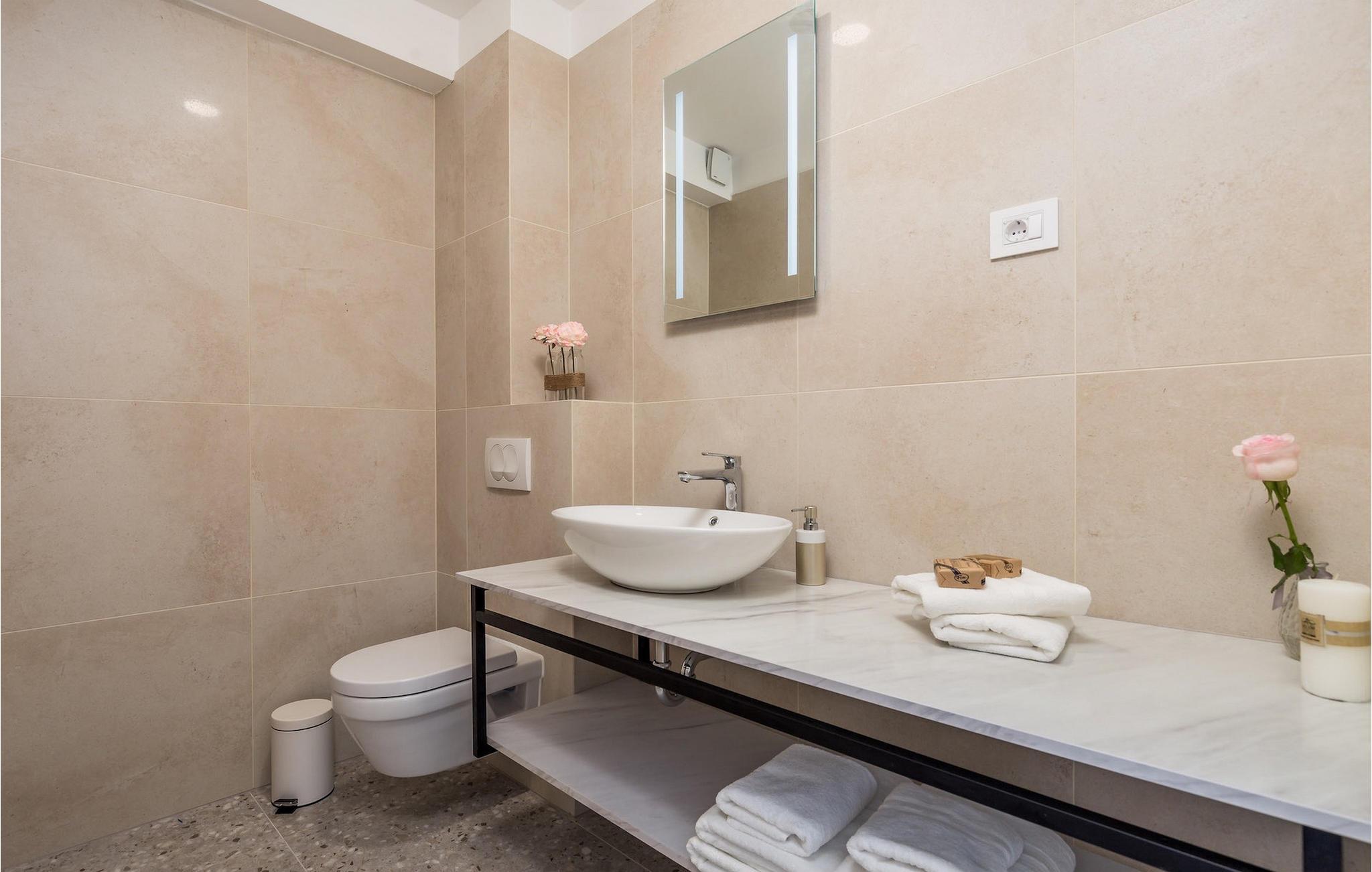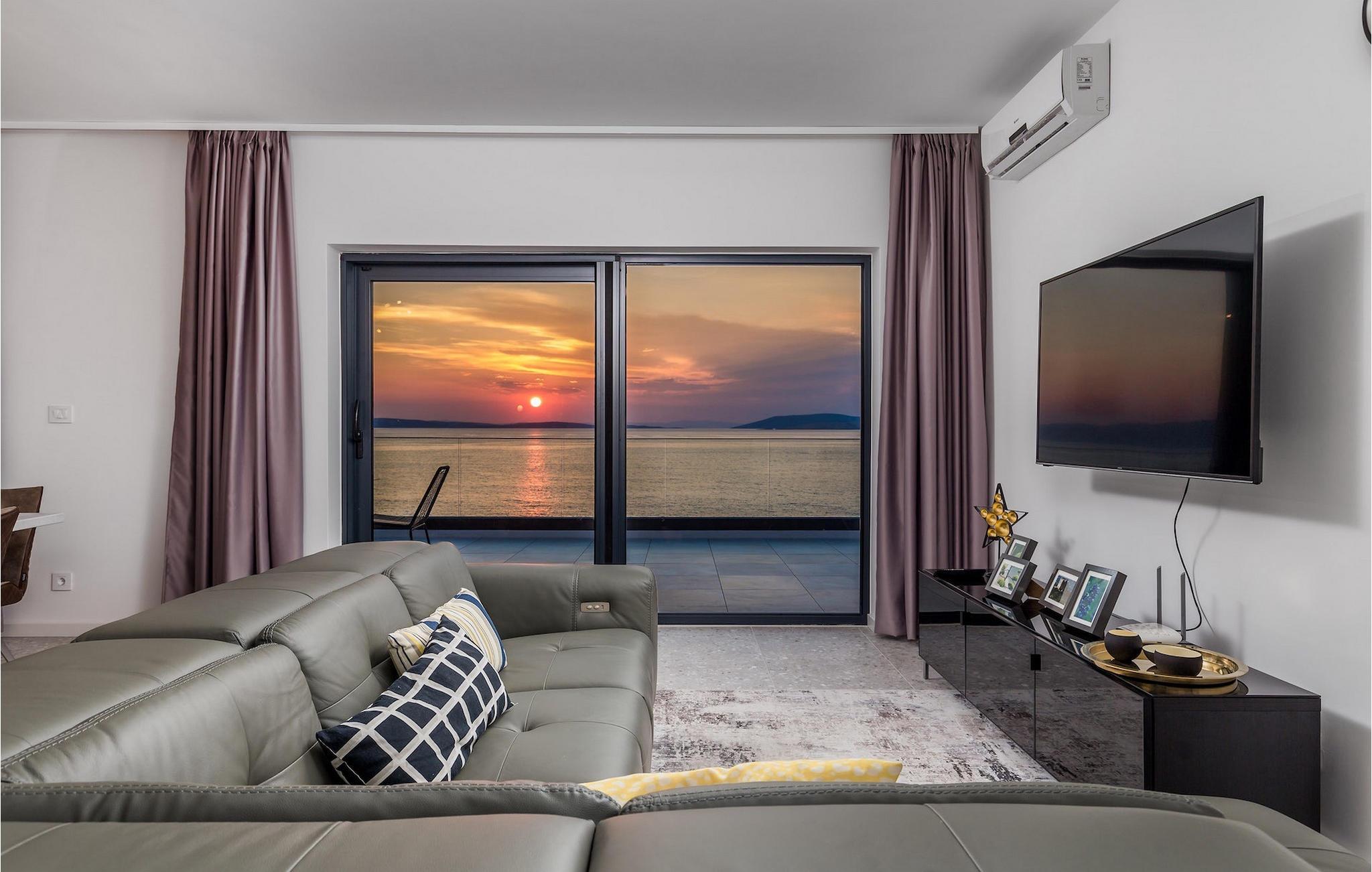 Wenn Sie nach einer Villa für einen perfekten Urlaub direkt am Meer suchen, ist Villa Frami die perfekte Wahl. Die moderne Villa bietet vier Schlafzimmer für acht Gäste, mit der Möglichkeit, bis zu zwei weitere Gäste unterzubringen. Die Villa erstreckt sich über drei Etagen. Im ersten Stock befinden sich drei helle Schlafzimmer mit jeweils einem Doppelbett. Alle Schlafzimmer sind klimatisiert und verfügen über einen TV und ein eigenes Badezimmer. Zwei Schlafzimmer bieten einen fantastischen Meerblick an. Im Erdgeschoss der Villa finden Sie ein geräumiges Wohnzimmer mit TV, sowie eine voll ausgestattete Küche und ein Esszimmer, die in einem Open-Space-Konzept miteinander verbunden sind. Auf der gleichen Etage befindet sich auch ein Spielbereich, in dem die jüngsten Gäste mit PlayStation Spaß haben können. Das Wohnzimmer öffnet sich zur schönen Terasse hin mit Blick auf das Meer und die Insel Rab. Auf der Terrasse finden Sie einen Holzkohlegrill und einen Esstisch, an dem Sie mit Familie und Freunden köstliche Essen bei einem bezaubernden Sonnenuntergang im Hintergrund genießen können. Im unteren Erdgeschoss der Villa befindet sich ein weiteres geräumiges klimatisiertes Schlafzimmer mit Doppelbett, TV und Meerblick. Für eine vollkommen romantische Atmosphäre gibt es eine Badewanne im Schlafzimmer. Hier finden Sie auch einen Spielbereich mit Darts und eine Sommerküche mit Bar, wo Sie sich ein erfrischendes Getränk zubereiten können, welches Sie am privaten Pool auf derselben Ebene genießen können. Neben dem Pool stehen Ihnen Sonnenliegen zur Verfügung, wo Sie sich mit einem guten Buch entspannen oder einfach die beruhigende Atmosphäre genießen können, die das Meer und die Sonne bieten. Das Grundstück ist komplett eingezäunt und verfügt über Parkplätze für 3 Autos. Buchen Sie die Villa Frami und verbringen Sie einen unvergesslichen Urlaub am Meer mit Familie und Freunden.Die Villa Frami befindet sich in der kleinen Stadt Starigrad in der Nähe von Senj im Naturpark Velebit, direkt am Meer, wo sich der mächtige Berg und das Meer treffen. Für Gäste, die sich für Naturschönheiten und Erholung in unberührter Natur interessieren, ist die Villa Frami ein idealer Ausgangspunkt. Wir empfehlen Ihnen einen Besuch der Stätten an der Liste des UNESCO-Weltkulturerbes - des Nationalparks Nördlicher Velebit und der strengen Reservate Hajducki und Rožanski kukovi. Wir sind sicher, dass Ihnen auch die weltberühmten Plitvicer Seen oder das Bärenschutzgebiet in Kuterevo gefallen werden. Wenn Sie kulturelle und historische Sehenswürdigkeiten besuchen möchten, erreichen Sie in einer halben Stunde Fahrt Senj, die älteste Stadt in diesem Teil der Adria mit der berühmten Festung Nehaj. Auch die Städte Crikvenica, Novi Vinodolski und Rijeka sind nicht weit entfernt. Kiesstrände in der Gegend von Crikvenica und Novi Vinodolski gehören zu den schönsten Stränden an der Adriaküste.