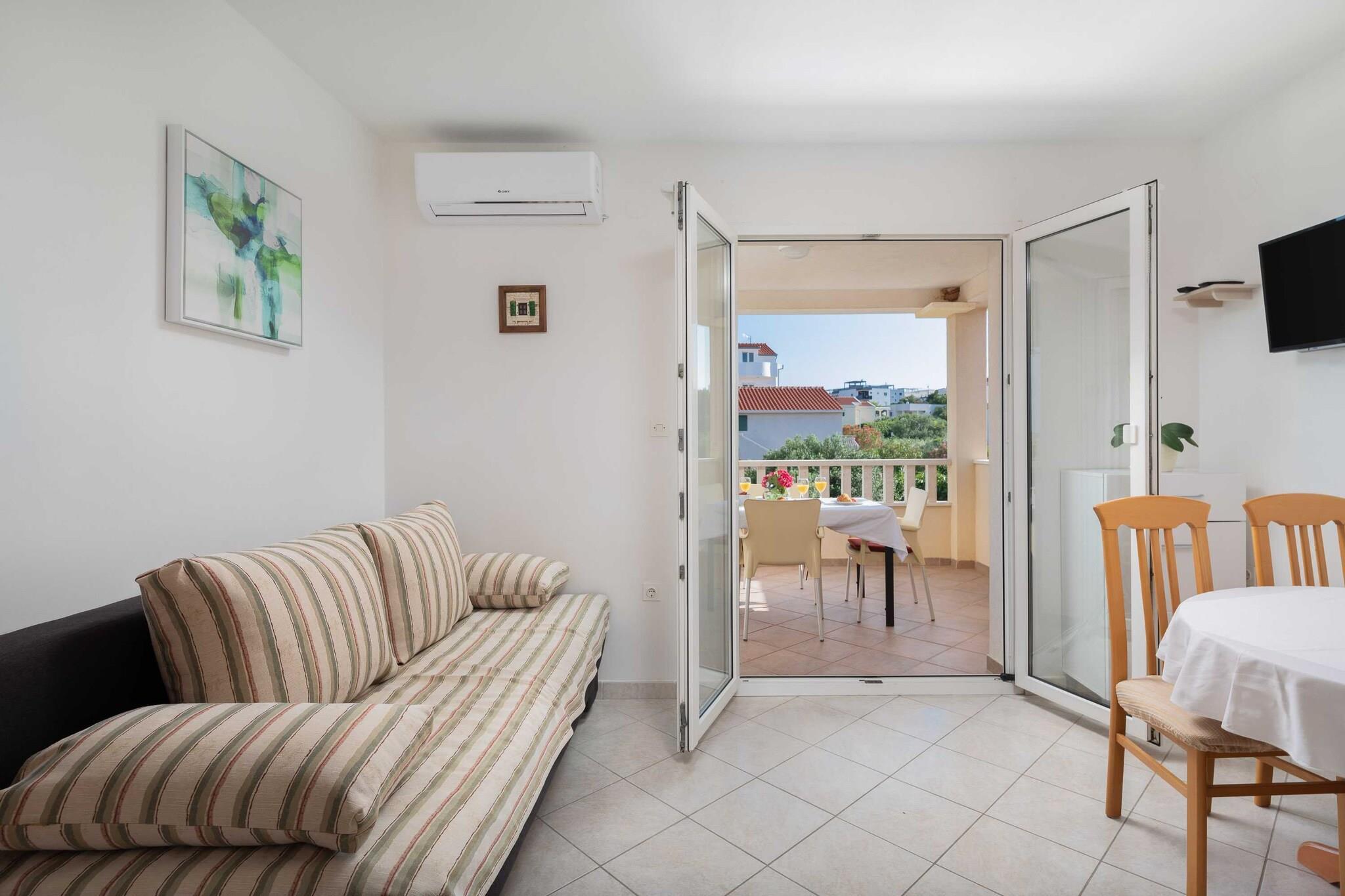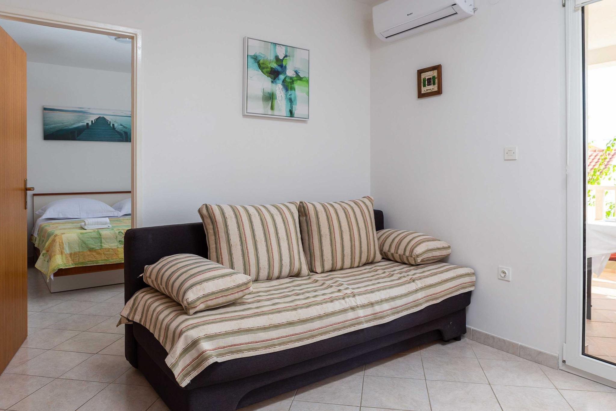 Apartments Bella Vista are located in Sevid, a peaceful coastal village in Split-Dalmatia County, Croatia. Nestled in the picturesque Sevid, this retreat boasts a modern design, breathtaking sea views, and premium amenities, ideal for relaxation and comfort. Perfect for travelers seeking sophistication and tranquility by the Adriatic coast. The owner lives on the property on their own etage on the ground level, and they are available to guests if they need anything. Note: Private parking is available, and a reservation is not required. A baby cot is available on request. Wi-Fi is available throughout the property. Pets are not allowed. This one-bedroom can accommodate up to four guests. It features an SAT/flat-screen TV and is combined with a seating area, sofa, and kitchen. The private bathroom is equipped with a shower and toilet. Free toiletries are available on request. Thanks to its excellent location, everything you'll need for your vacation is just a short walk from the property. Grocery store/supermarket, restaurant — everything is within a 100 m radius. The beach is 50 m away from the property. The airport is 30 km away from the property.