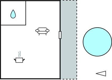 Wohnraum/Küche 18m2 - 2 Schlafmöglichkeiten. (Doppelbett(en)). 1 Schlafmöglichkeit. (Schlafsofa,Matratze,Sonstiges).