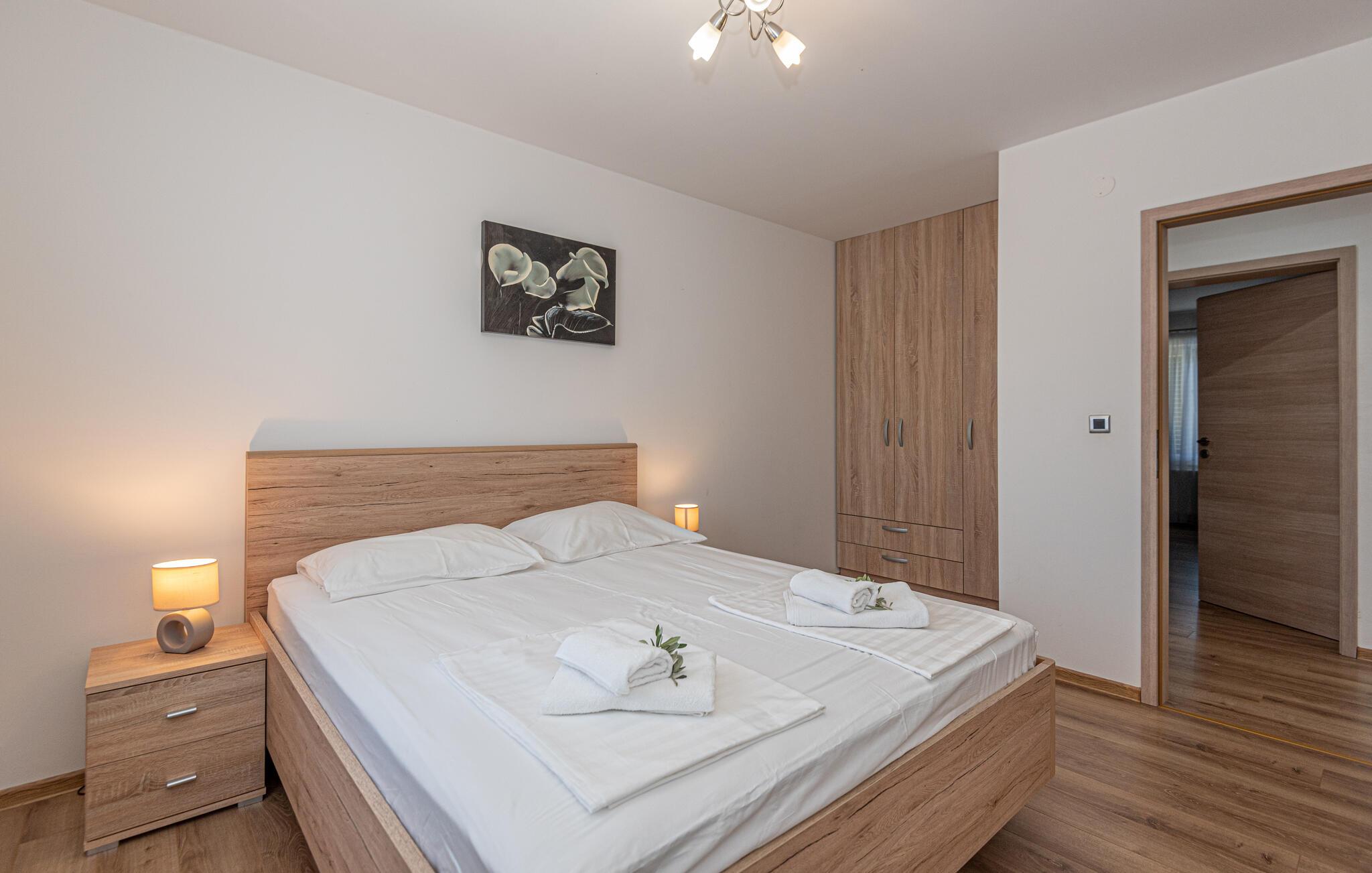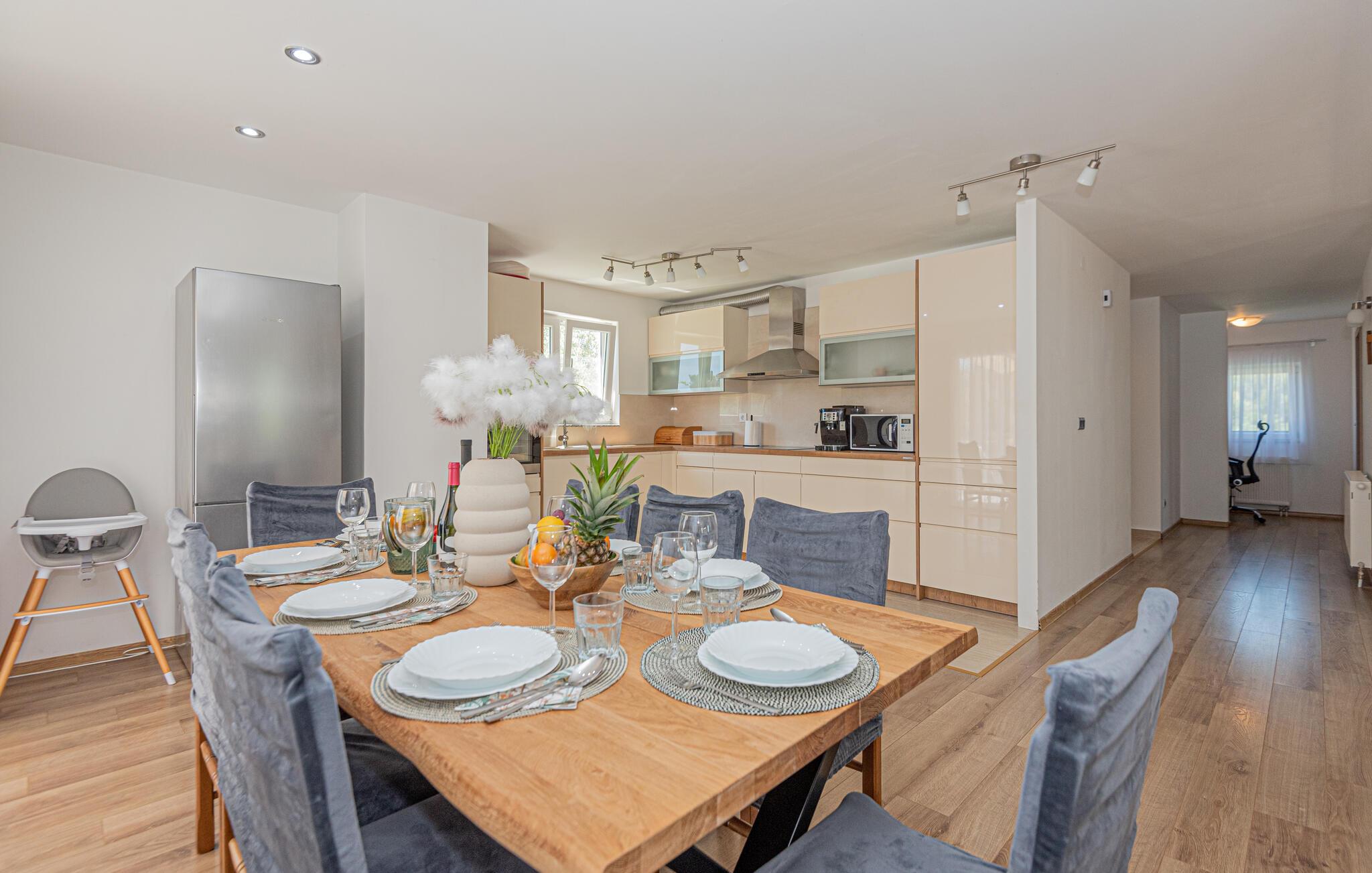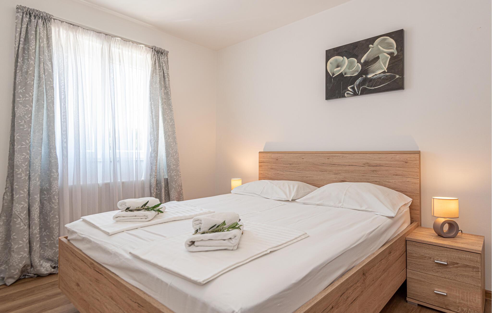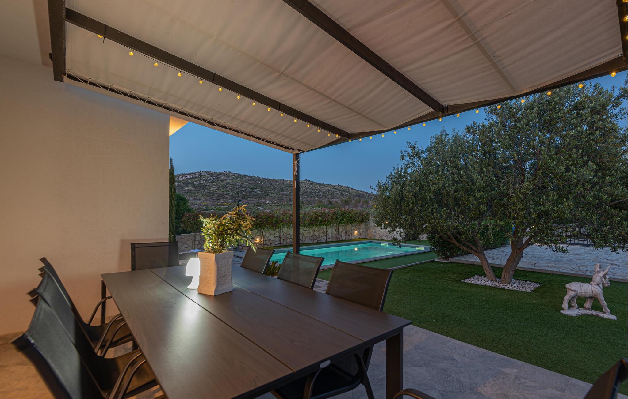 Dieses schöne und mit Geschmack eingerichtete Ferienhaus mit eigenem Pool liegt in dem ruhigen Touristenort Zaton, in der Nähe von Šibenik. Es erstreckt sich auf zwei durch eine interne Treppe verbundenen Etagen. Ein paar Stufen führen zum Wohnbereich hinab. Der lange Sandstrand des Ortes ist barrierefrei und somit auch für Menschen mit körperlichen Einschränkungen bestens geeignet. Direkt an den Strand grenzt ein kleiner Pinienwald an, der an heißen Sommertagen Abkühlung und Schatten in der Mittagshitze spendet. Interessante Ausflugsziele sind die Stadt Zadar, der benachbarte Ort Nin und die Nationalparks Krka, Kornati und Paklenica.