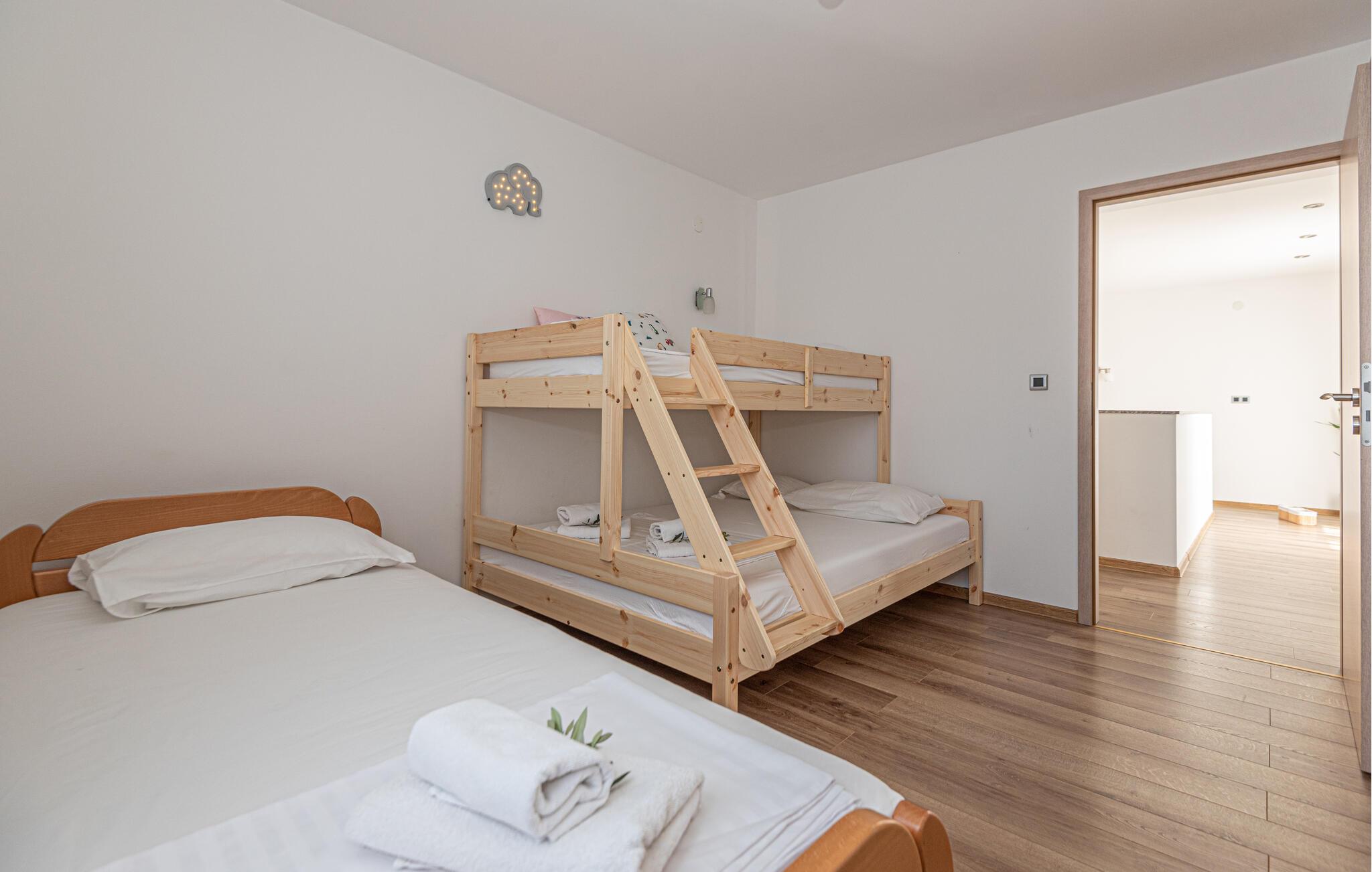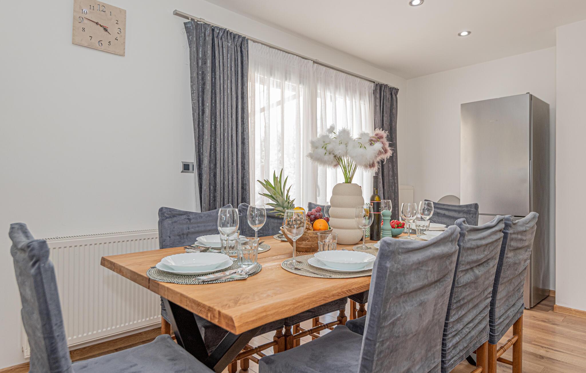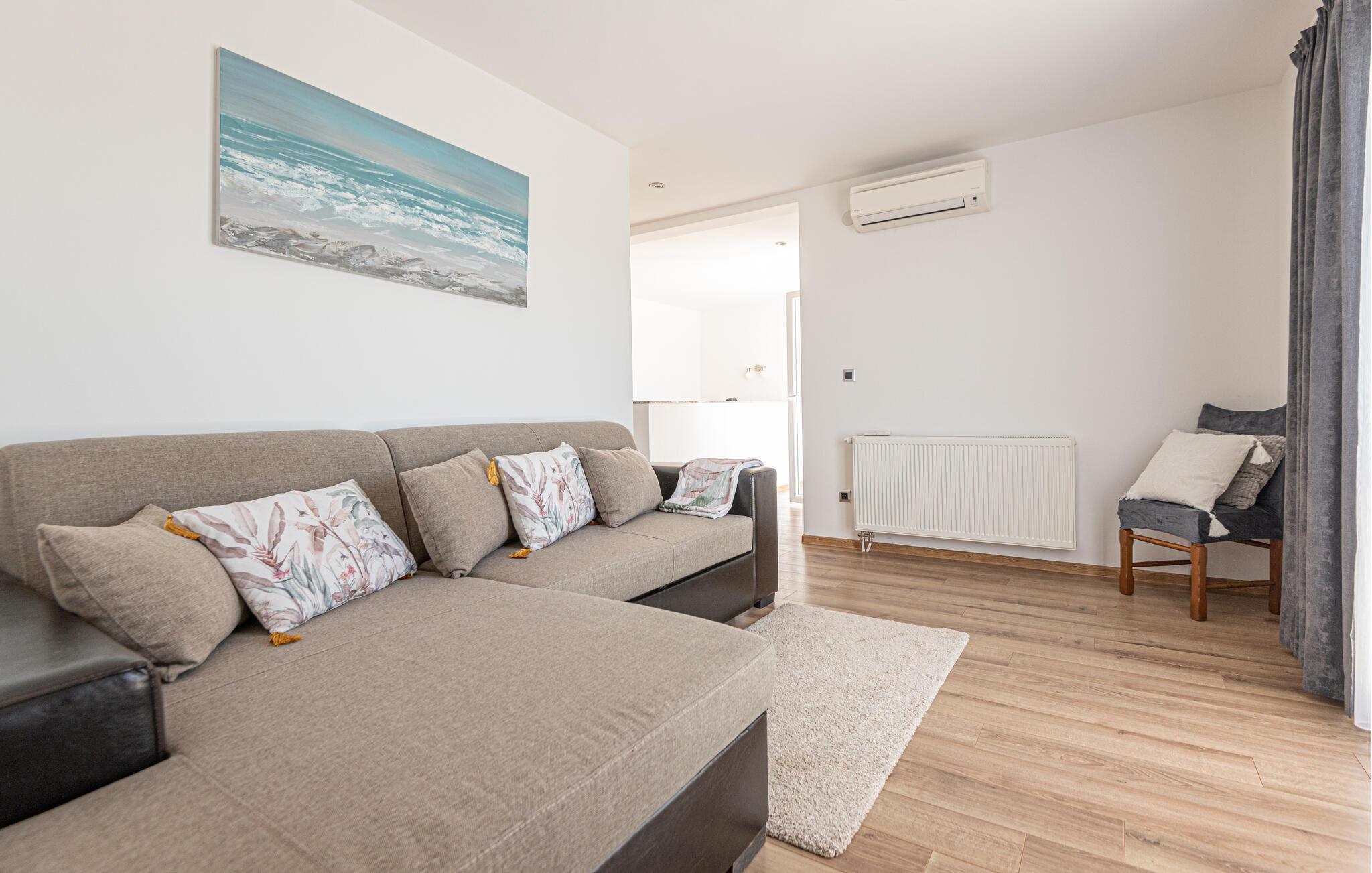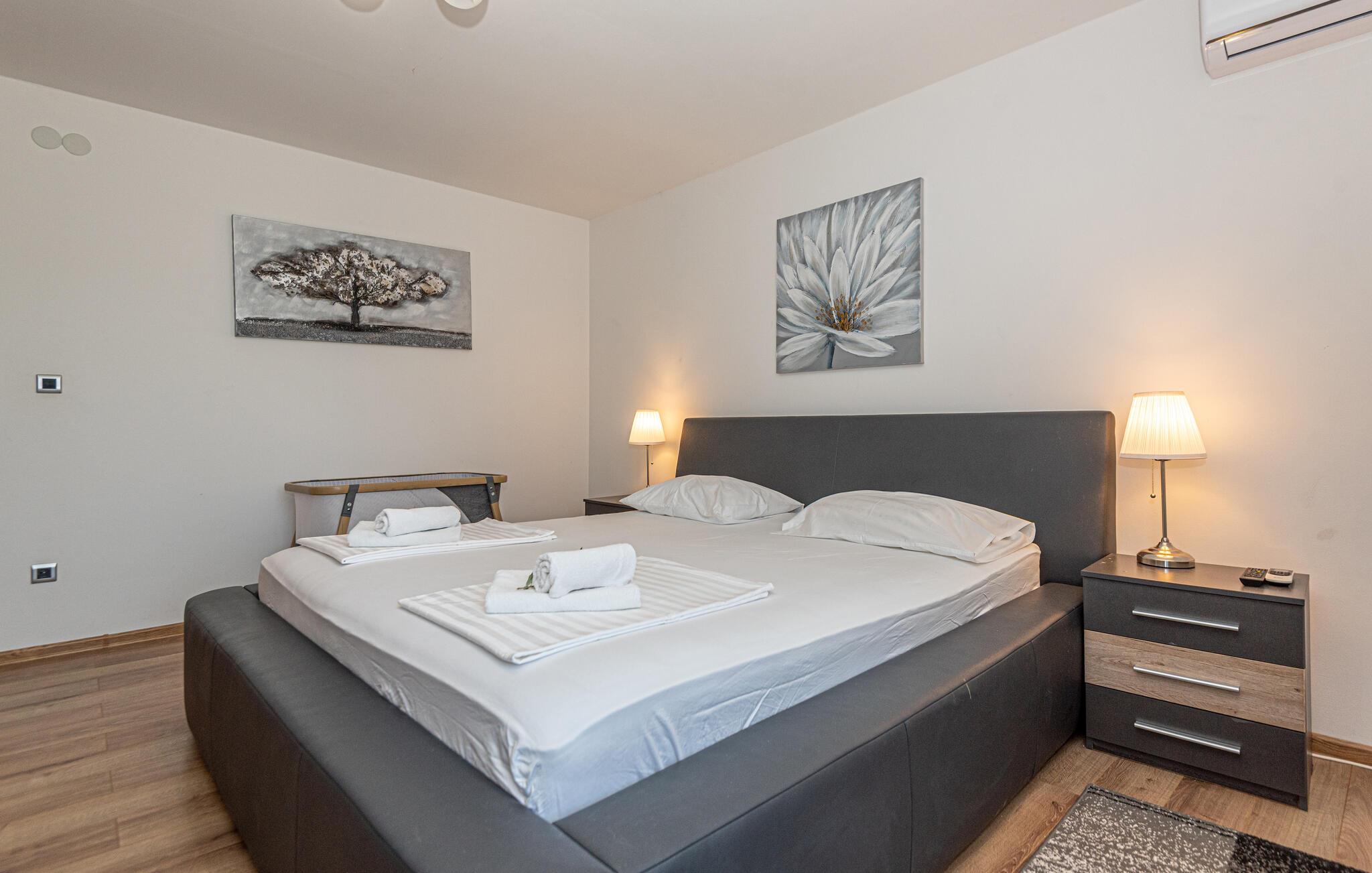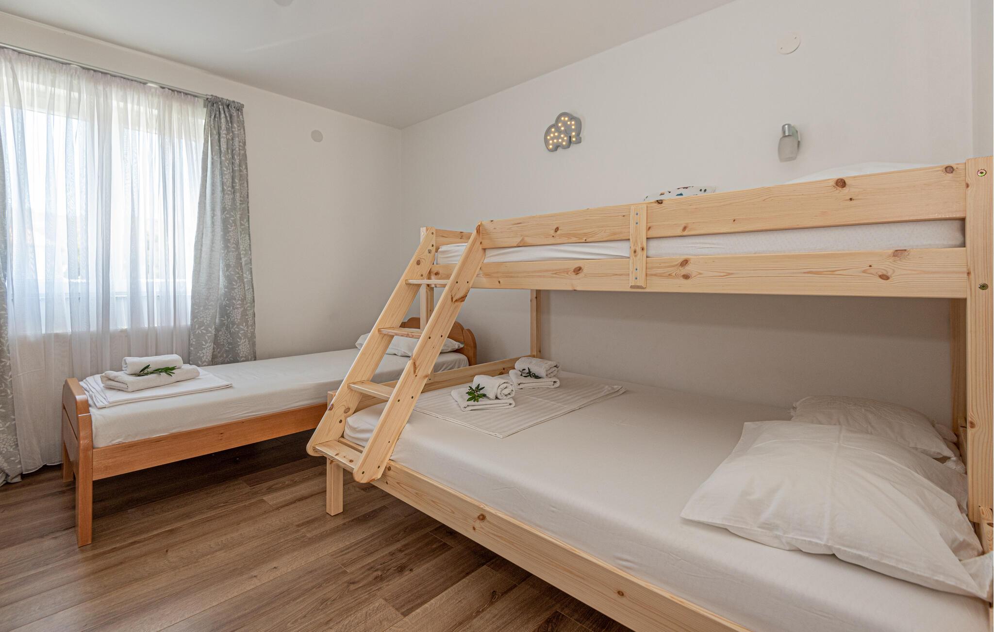 Dieses schöne und mit Geschmack eingerichtete Ferienhaus mit eigenem Pool liegt in dem ruhigen Touristenort Zaton, in der Nähe von Šibenik. Es erstreckt sich auf zwei durch eine interne Treppe verbundenen Etagen. Ein paar Stufen führen zum Wohnbereich hinab. Der lange Sandstrand des Ortes ist barrierefrei und somit auch für Menschen mit körperlichen Einschränkungen bestens geeignet. Direkt an den Strand grenzt ein kleiner Pinienwald an, der an heißen Sommertagen Abkühlung und Schatten in der Mittagshitze spendet. Interessante Ausflugsziele sind die Stadt Zadar, der benachbarte Ort Nin und die Nationalparks Krka, Kornati und Paklenica.
