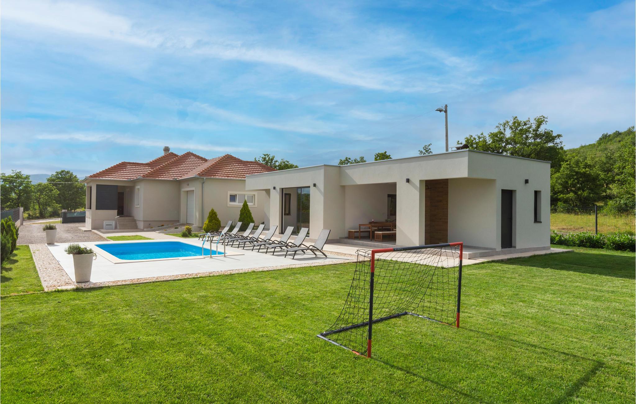 Dieses schöne Ferienhaus liegt in den dalmatinischen Hügeln, umgeben von Natur. Modern eingerichtete Innenräume bestehen aus drei Schlafzimmern, zwei Bädern und einer gut ausgestatteten Küche mit Wohnzimmer. Im Hof finden Sie den Schwimmpoll und Grillplatz. Besuchen Sie Sinj und Trilj, versuchen Sie Rafting auf dem Fluss Cetina, Paragliding, oder erfrischen Sie sich im See. Versäumen Sie nicht, die Stadt Split mit ihren zahlreichen kulturellen und historischen Sehenswürdigkeiten, erstklassigen Restaurants und anderen Vergnügungs- und Freizeitmöglichkeiten zu besuchen.