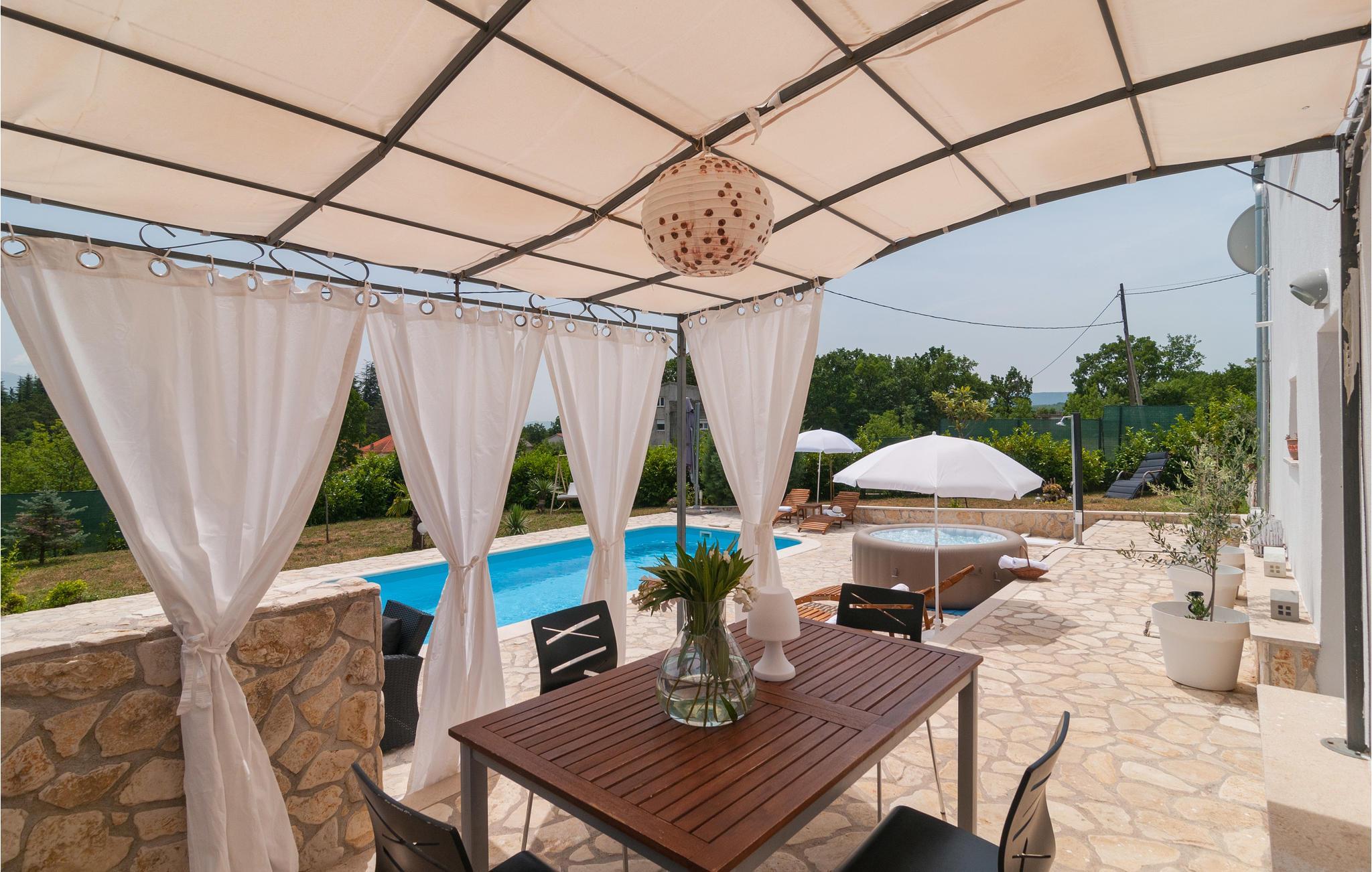 Dieses nette Ferienhaus mit Pool ist umgeben von Blumen und liegt in der kleinen Ortschaft Hrvace, nicht weit von Sinj. Genießen Sie die beschauliche Idylle in der Natur. Im Erdgeschoß liegen drei Schlafzimmer, Bad und zusätzliches WC, sowie Wohnzimmer mit Küche und Essbereich. Im Souterrain ist die Sommerküche untergebracht, mit Zugang zur Terrasse vor dem Pool. Die Höhe der Tür zum Treppenhaus beträgt 170 cm. In der Nähe liegt der Fluss Cetina für Rafting Abenteuer. Nicht weit ist es zum herrlichen See Peruca mit Sandstrand. Es gibt auch die Möglichkeiten zu Paragliding und Reiten, die Region ist bekannt für ihre Reiterhöfe. Bis zum Meer sind es ca. 40 km und die nächste Küstenstadt ist Split, deren Geschichte bis in die Antike zurückreicht.