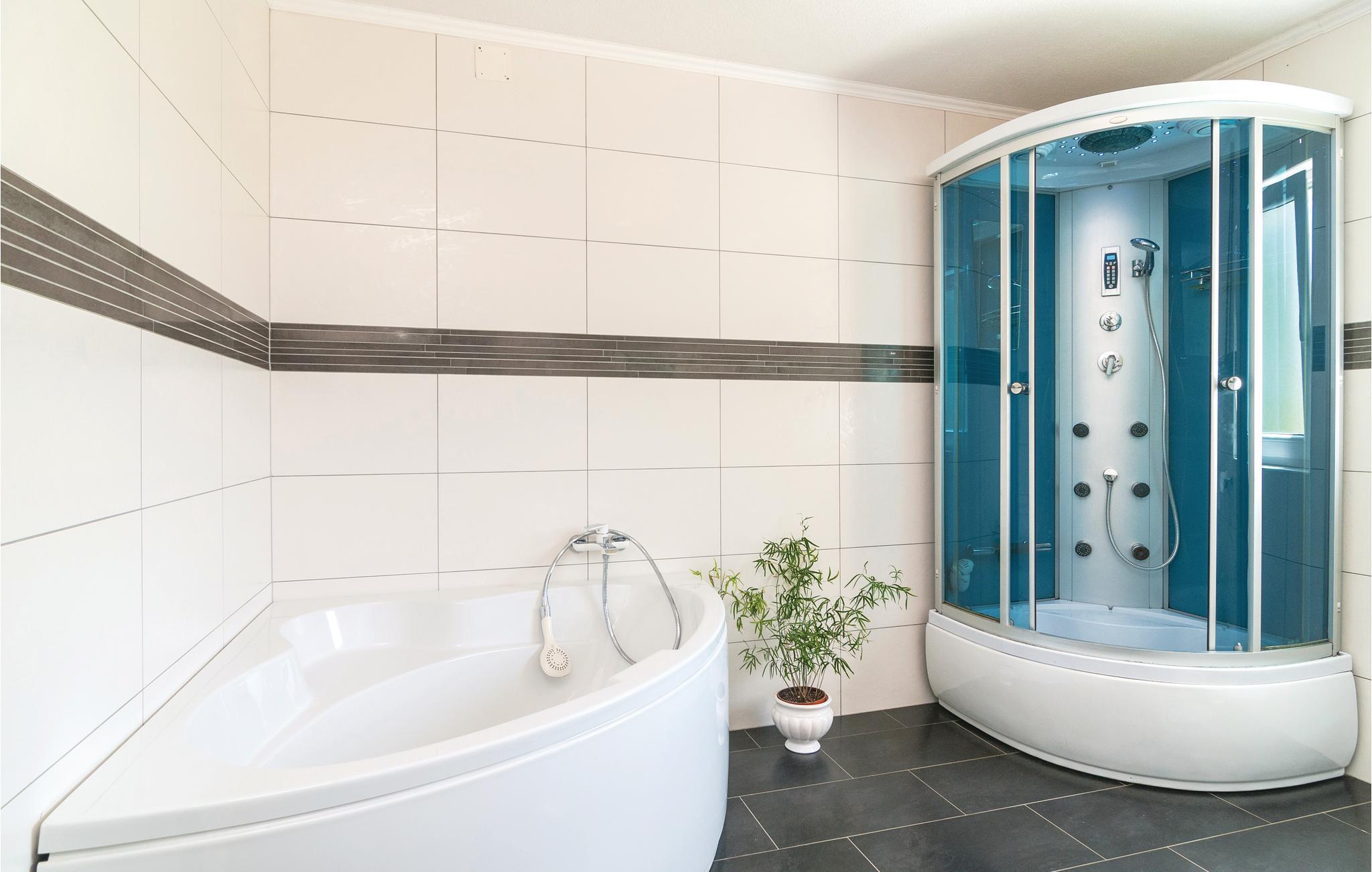 Badezimmer (nr. 3) - WC. Warmes und kaltes Wasser. Dusche und Badewanne