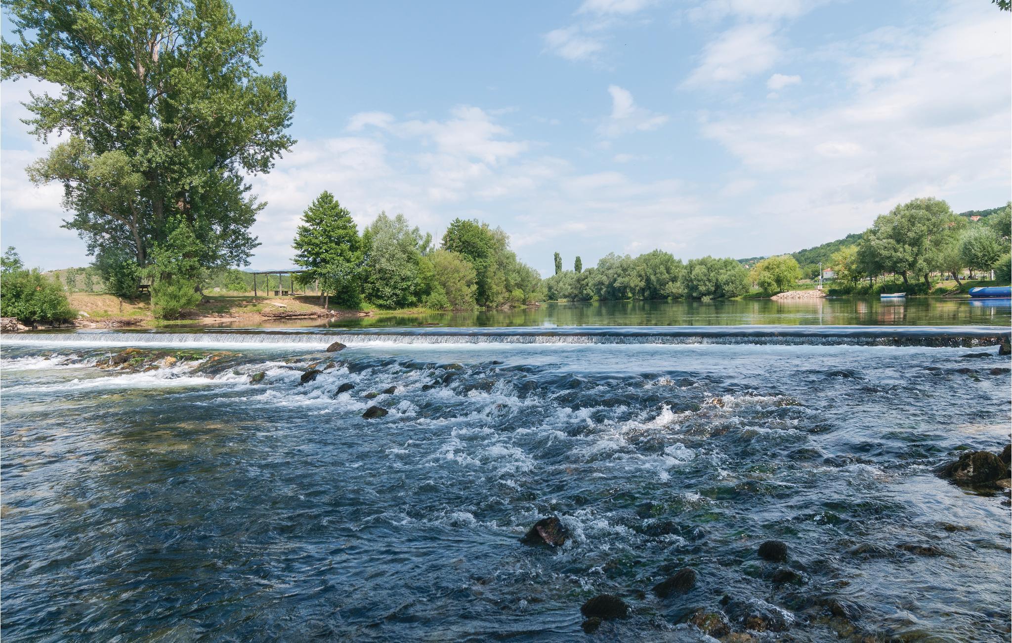 Dieses Ferienhaus mit Pool und Obstbäumen ist perfekt für einen Urlaub zweier größerer Familien oder von Freunden. Es liegt in idyllischer Umgebung, inmitten unberührter Natur in der Ortschaft Gala/Otok, in der Tiefebene des Flusses Cetina. Das Haus verfügt über zwei komfortable Wohneinheiten mit Außentreppen. Im Erdgeschoß gelangen Sie direkt in den Hof mit schöner Aussicht auf die Landschaft, mit Pool und Sommerküche. Hier genießen Sie saubere Luft. Nicht weit vom Feriendomizil entfernt unternehmen Sie schöne Spaziergänge am Fluss Cetina oder versuchen sich in Rafting. Der freundliche Hauseigentümer gibt Ihnen gerne Tipps für interessante Events in dieser Region. Die historische Stadt Split, die Metropole Dalmatiens, sollten Sie auf jeden Fall besuchen.