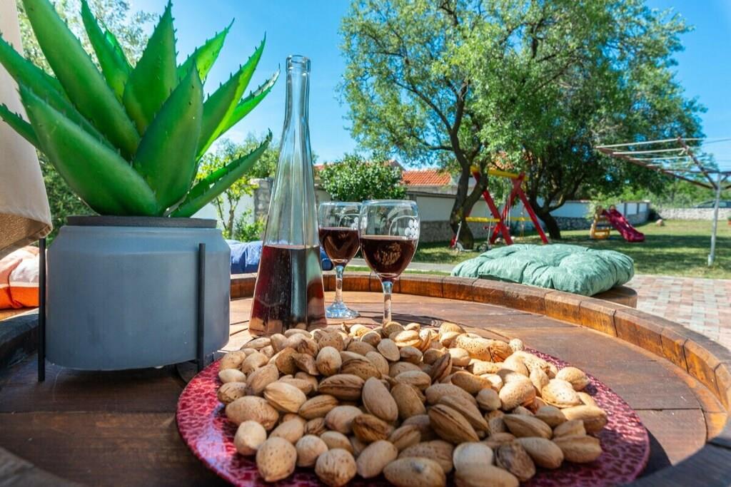 Das Ferienhaus Marina befindet sich im Dorf Glavica - Sukošan, 3,5 km vom Strand im Landkreis Zadar entfernt. Das Anwesen ist komplett eingezäunt, umgeben von Natur und grünen Hügeln. Das Haus ist 130 m² groß und besteht aus einer voll ausgestatteten Küche, einem Essbereich, einem Wohnzimmer, 3 Schlafzimmern, eines mit 2 Einzelbetten und 2 mit Doppelbetten. Es gibt auch 2 Badezimmer, eines mit Badewanne und eines mit Dusche. In der Nähe des Außenbereichs befindet sich ein Aufenthaltsraum mit Fitnessgeräten, Billardtisch und Dart, zusätzlicher Küche und Toilette. Im Hof gibt es einen schönen Pool mit Liegestühlen und Liegestühlen, Gartenmöbeln und einer großen Grillstation mit Esstisch. Für unsere Gäste stehen auch Fahrräder zur Verfügung. Haustiere sind gegen Aufpreis willkommen.