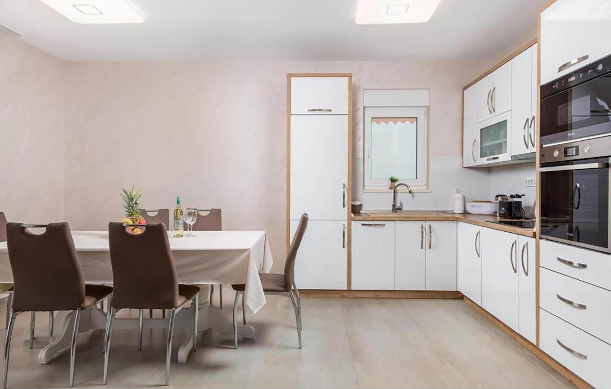 In diesem einladenden Haus vereinen sich Komfort und Behaglichkeit auf ganz harmonische Weise. Der Wohnbereich mit großen Fenstern und einer bequemen Sofalandschaft schafft eine Atmosphäre, in der Sie schnell neue Energie tanken können. Hören Sie die neusten Hits der Charts oder einen interessanten Podcast, bevor Sie sich gemeinsam zu einer Mahlzeit an den Esstisch mit Blick auf den Pool setzen.