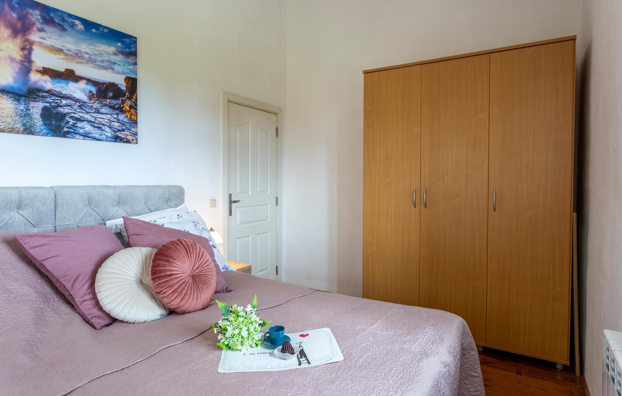 Genießen Sie Ihren angenehmen Aufenthalt in diesem schönen Haus, das Sie in modernen Glanz empfängt, ohne auf seine Originalität zu verzichten. Ihre Familie findet hier nicht nur viel Platz, sondern kann sich auch in den komfortablen Räumen wie zuhause fühlen. Sie finden hier alles vor, was Sie zum Wohlfühlen, Kochen, Essen und Spielen brauchen und können die Sommermonate im Freien verbringen.