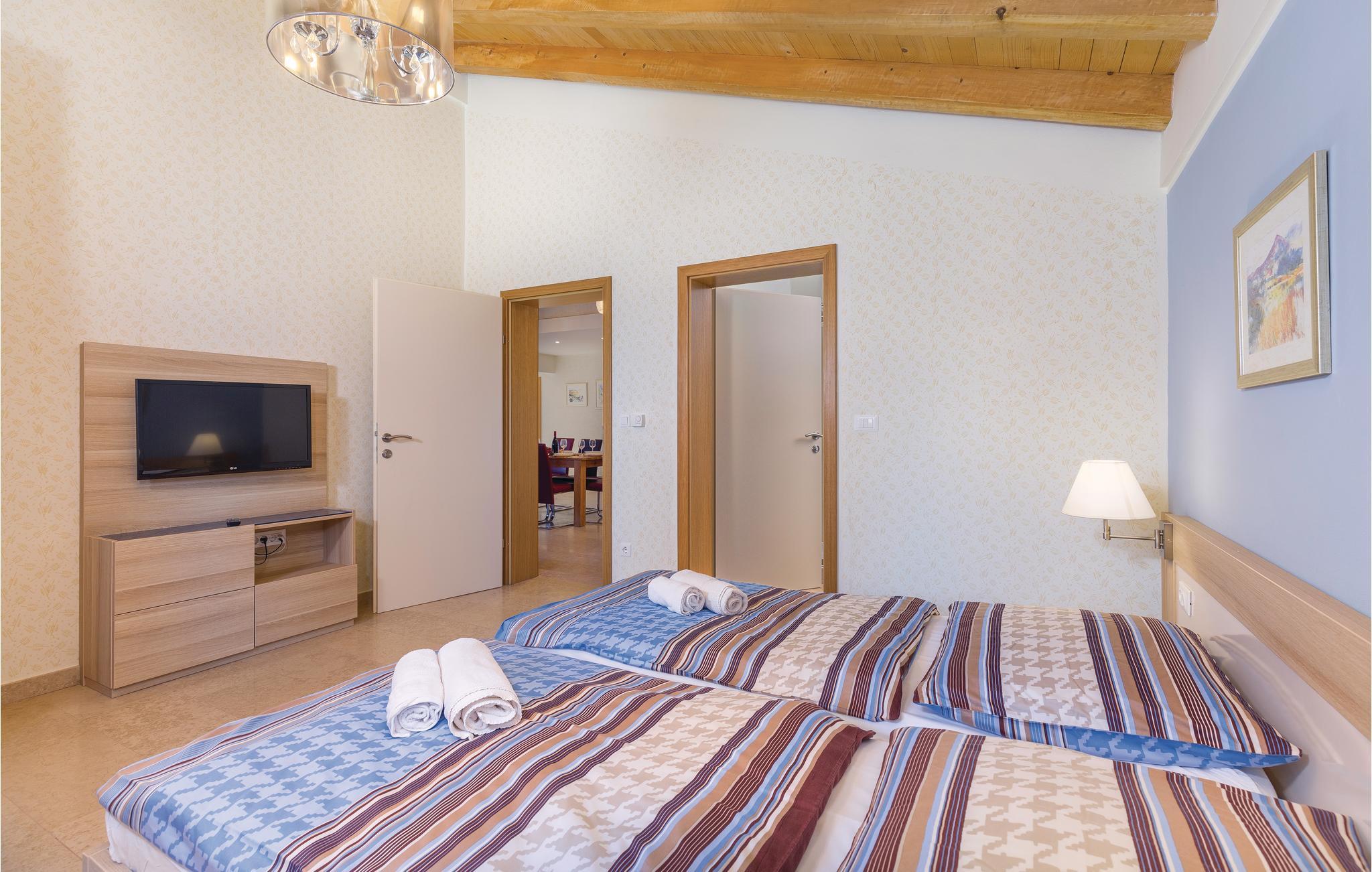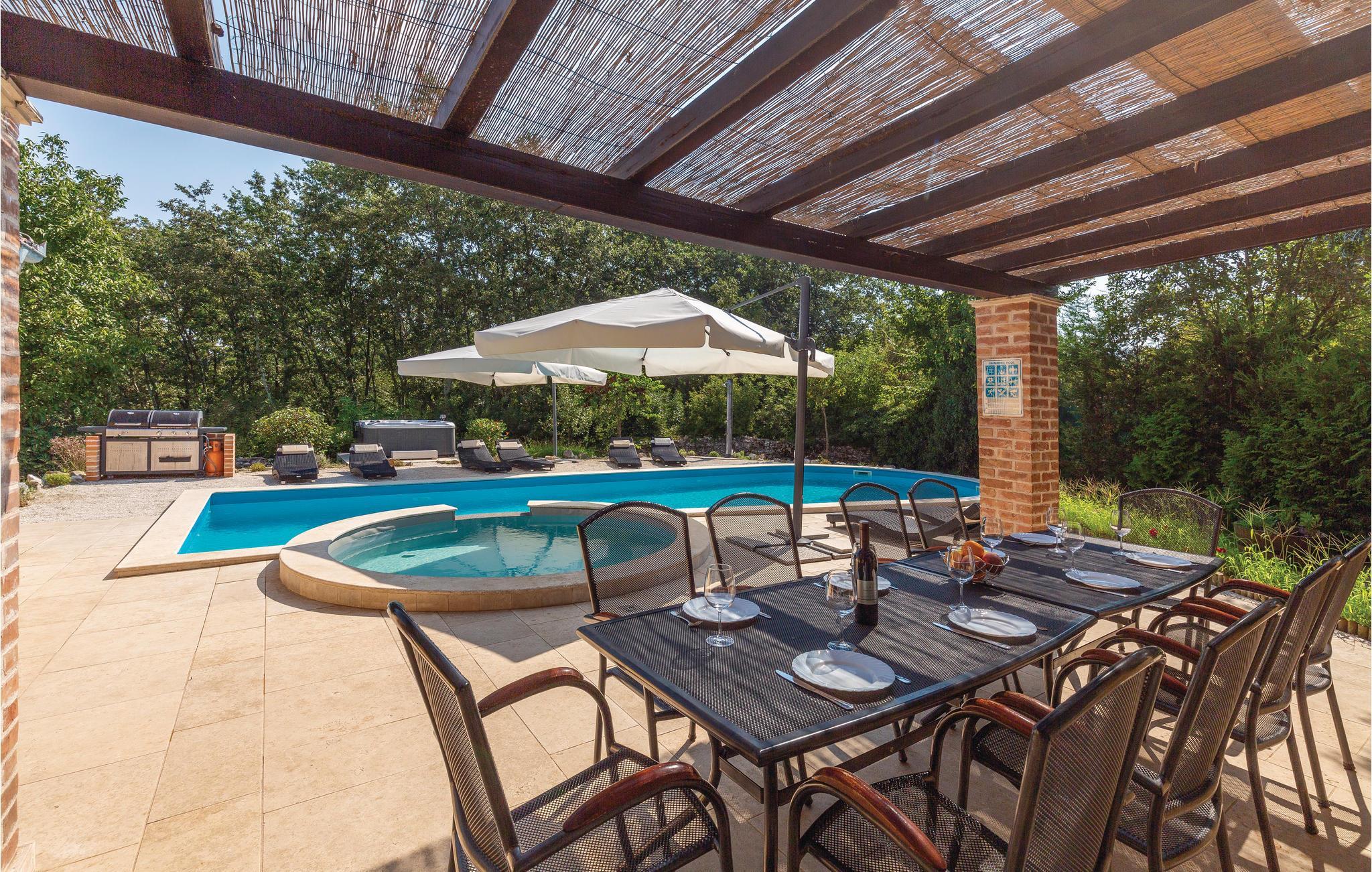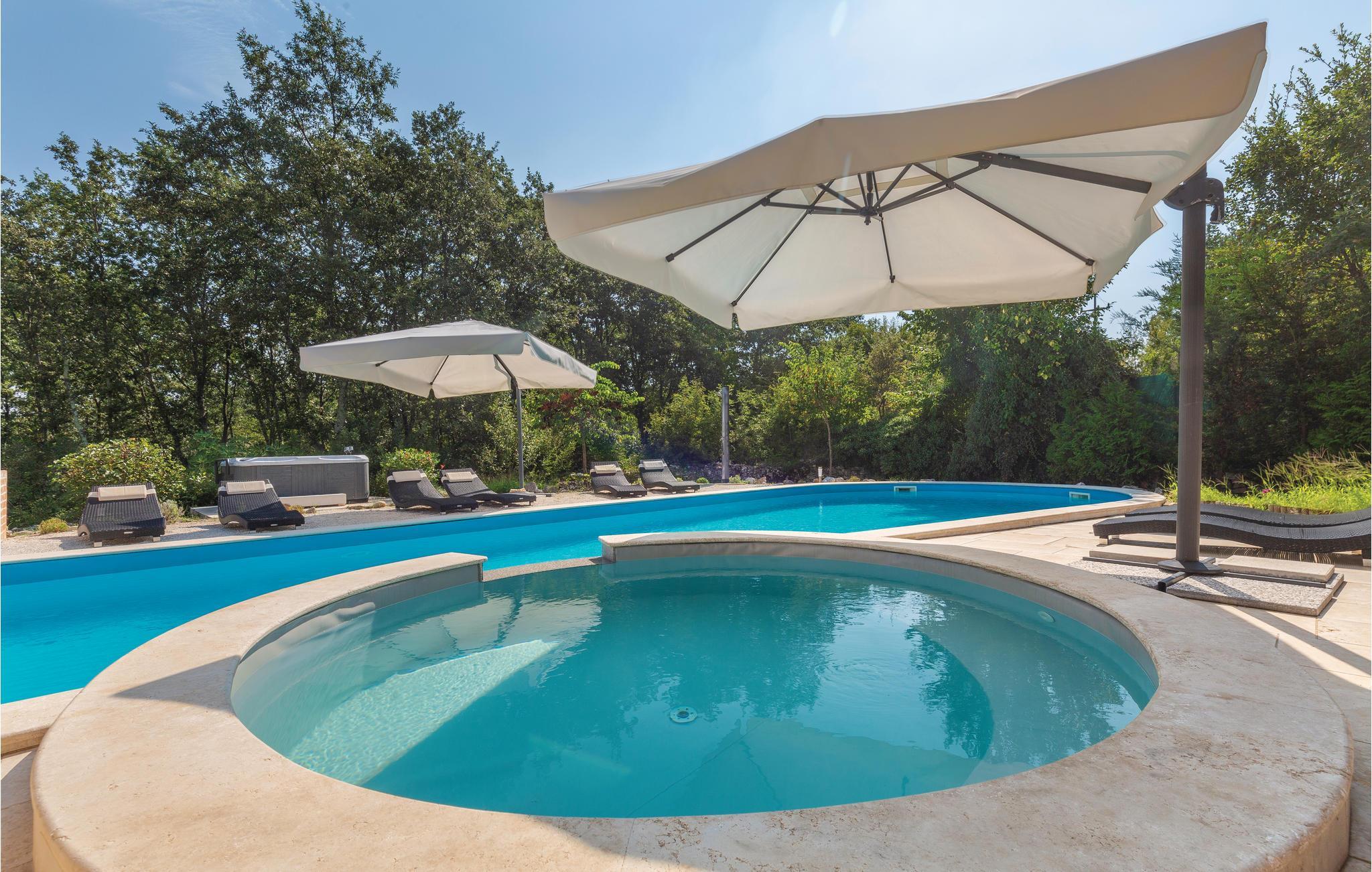 Dieses außergewöhnlich gut gestaltete Ferienhaus liegt am Rande eines netten Dorfes im Herzen Istriens. Es ist stilvoll eingerichtet und bietet Ihnen jeglichen Komfort. Die Inneneinrichtung entspricht den heutigen Standards, während die Besonderheit hier sicherlich die Fußbodenheizung und –kühlung ist. Solch ein Kühlsystem bietet deutlich bessere Abkühlung der Räume und verhindert so Lärm und Zugluft der Klimaanlagen. Der Zugang vom Innen- und Außenbereich erfolgt über die großzügige Terrasse, auf der die Eltern einen weiten Überblick, über alles was um den Pool herum passiert, haben können. Der Poolbereich beinhaltet zusätzlich auch einen Whirlpool im Freien in dem die Gäste noch mehr erholsame Stunden während der Sommermonate verbringen können. Um den Aufenthalt zu vervollständigen stellen die Hauseigentümer den Gästen unterhalb der Ferienanlage noch ein Grundstück zur gemeinsamen Nutzung mit den Gästen des Ferienobjektes CIL070 zur Verfügung. Dort stehen ein Kinderspielplatz sowie eine Sport- und Freizeitanlage. Ein Fußballplatz zum Spielen liegt auch nur 150 m vom Ferienhaus. Dies ist sicherlich ein Vorteil für eine relativ große Familie oder Gruppe von Freunden die gerne ihren Urlaub zusammen verbringen möchten. Das Haus liegt ruhig und am Rande des hauseigenen Waldes, es ist das letzte Haus am Ortsrand. Die Lage ist bestens zum Laufen, Wandern oder für einen Spaziergang mit dem Hund geeignet. Attraktionen, Kunst und Kultur in der Umgebung, die sich als Ziel für Tagesausflüge anbieten sind das römische Kolosseum in Pula, die Trüffelstadt Motovun, die wunderschöne Stadt Rovinj oder, für Kinder sicherlich interessant, der Aqua Park in Porec.