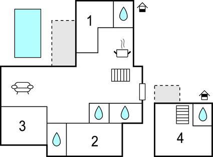 Badezimmer (nr. 4) - WC. Warmes und kaltes Wasser. Dusche
