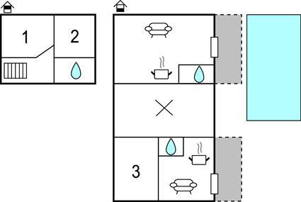 Badezimmer (nr. 2) - WC. Warmes und kaltes Wasser. Dusche
