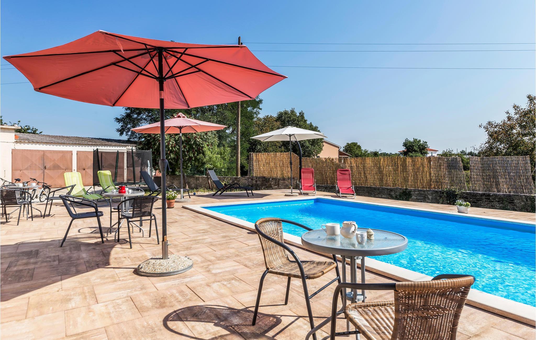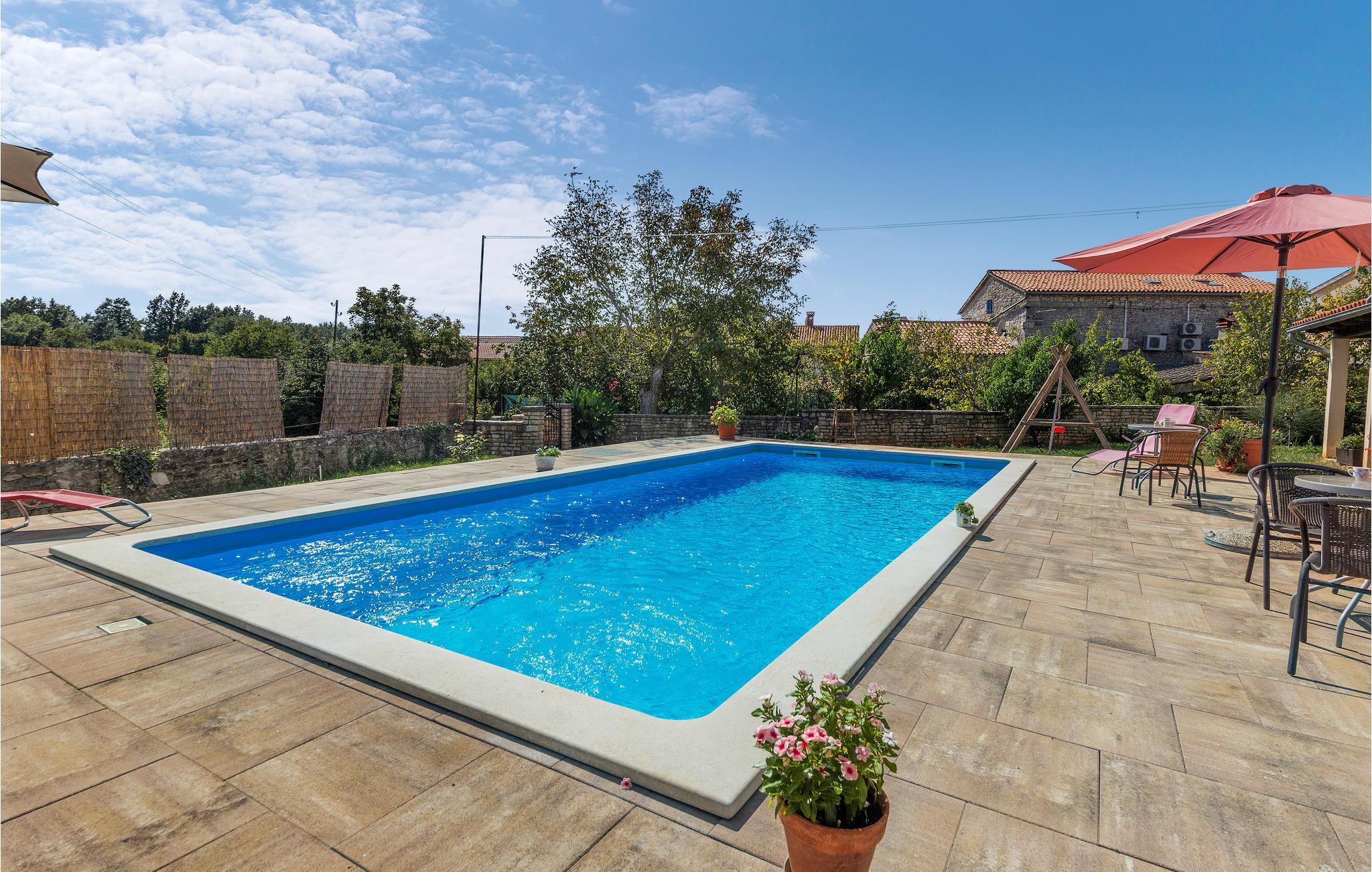 Im kleinen Ort Stokovci, im Herzen Instriens, erwartet Sie dieses Feriendomizil mit Pool auf einem Gemeinschaftsgrundstück, welches mit dem Eigentümer geteilt wird. Es besteht aus zwei getrennten Wohnbereichen, in deren Mitte sich die Räume des Hauseigentümers befinden. Es bestehen auch separate Eingänge. Links vom Eigentümer liegt alles im Erdgeschoss, rechts davon im Erdgeschoss und ersten Stock. Der Außenpool im gemeinsamen Garten ist nur für die Gäste verfügbar. Die Küste Istriens ist in Reichweite. Besuchen Sie auch die Städte Porec, Rovinj und Pula. Beim Vermieter können Sie Fahrräder gegen Gebühr ausleihen.