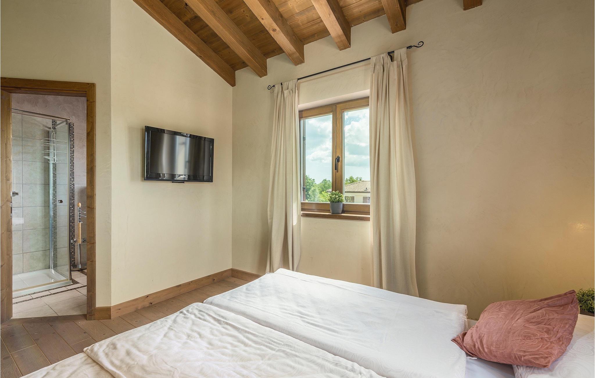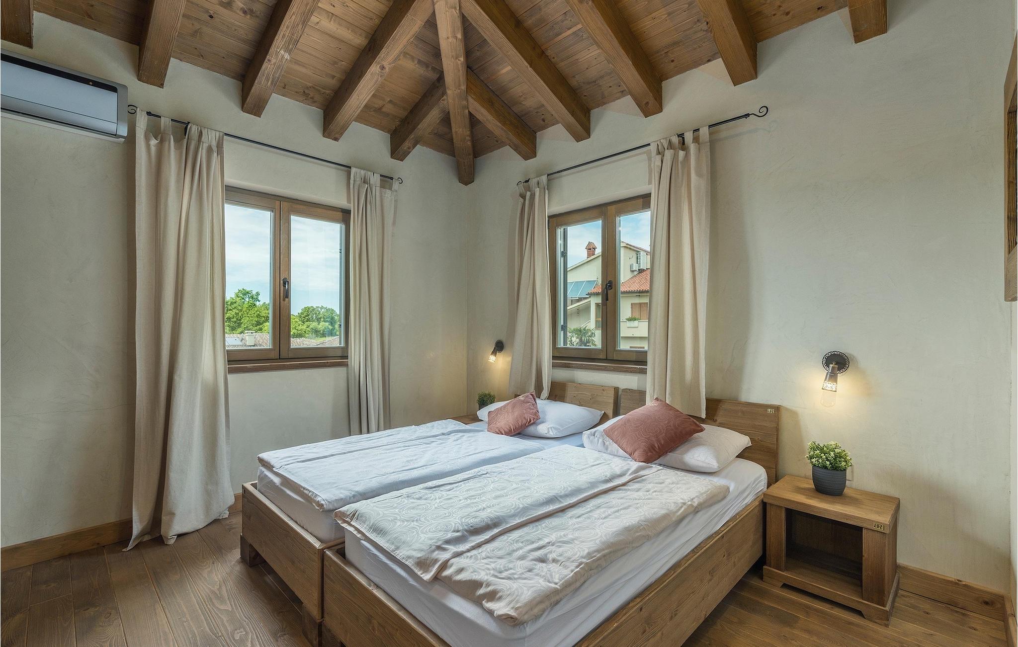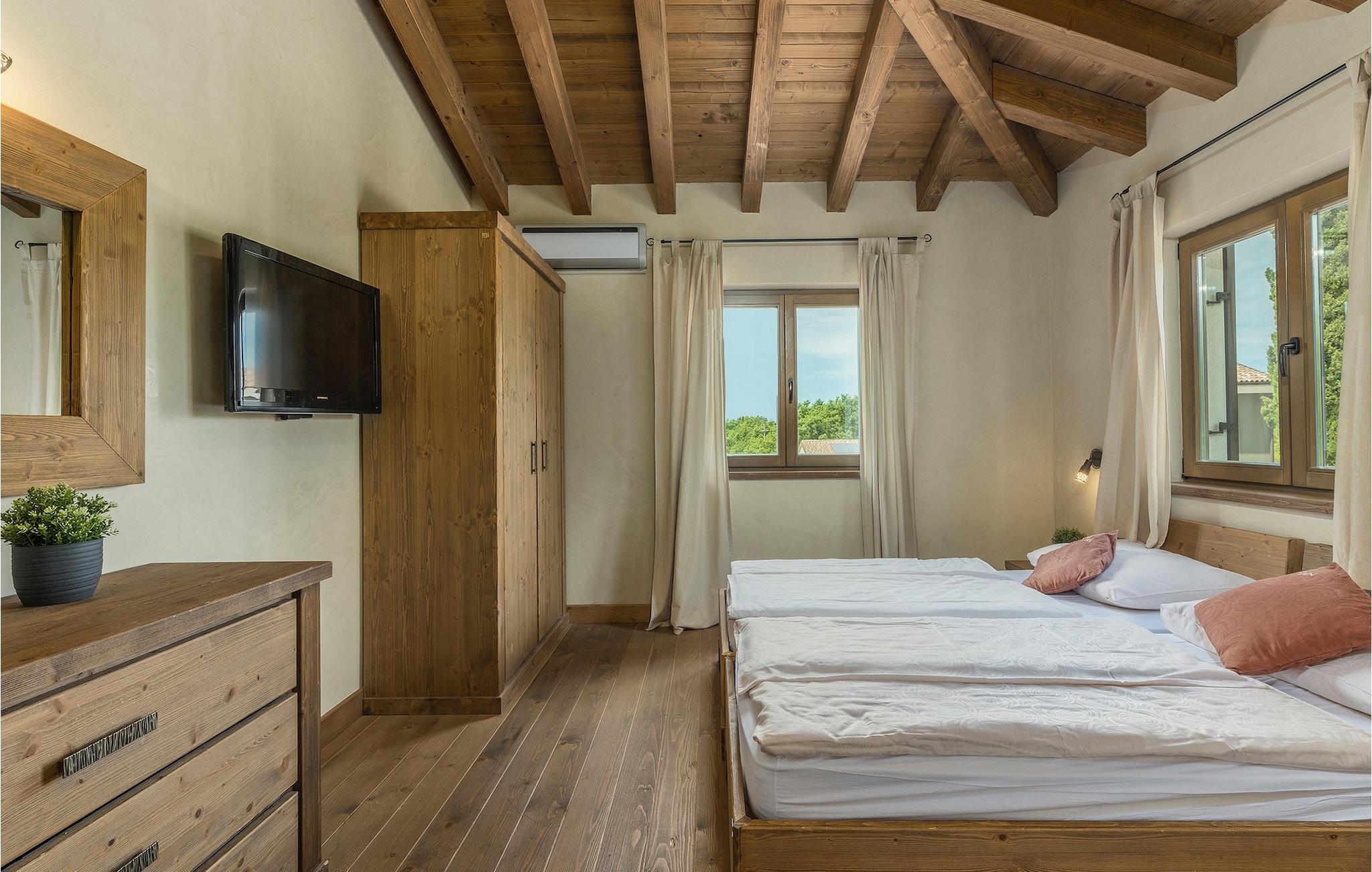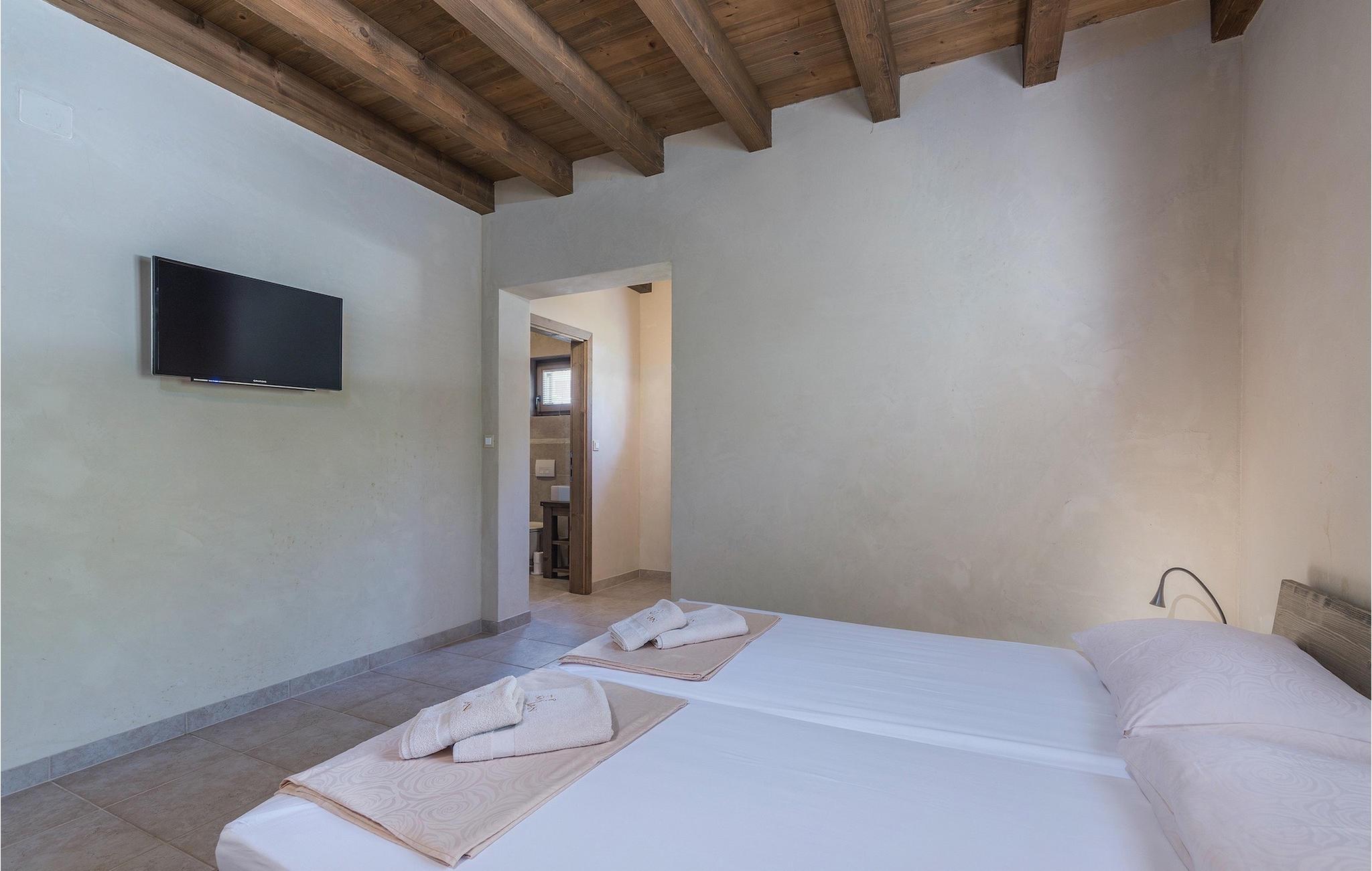 Zusätzlich gibt es in der Nähe eine Gemeinschaftssportanlage mit Volleyballplatz, Tischtennis und Badminton Platz.Flughafen Pula ist nur 20 km entfernt. Pula (15km) ist die regionale Hauptstadt Istriens mit einer exzellenten Auswahl an Restaurants und attraktiven Einkaufsgebieten. Machen Sie einen Spaziergang durch Pula und erleben Sie die Straßen und Plätze der alten Stadt, von denen manche schon seit der römischen Zeit bestehen. Das atemberaubende Amphitheater stammt aus dem 1. Jahrhundert n.Chr. und ist das 6. größte in der Welt. Das Stadtzentrum ist ca. 10 Fahrminuten vom Flughafen entfernt. Fazana ist ein kleiner Küstenort, 11 km von Bonasini entfernt, mit einem Hafen von wo aus Sie Touristenboote (15min) zu einem der schönsten Nationalparks in Kroatien bringen- Brioni. Fazana bietet einen großen Kiesstrand mit Möglichkeiten für zahlreiche Wassersportarten und Aktivitäten. Vodnjan ist eine typische mittelalterliche Stadt mit interessantem architektonischen Muster: Die Häuser der Stadt bilden zugleich die Stadtmauer und dienten früher als Verteidigung. Auf dem Hauptplatz steht eine atemberaubende Barock Kirche, einige Restaurants und einen neuen Sportpark mit Tennisplätzen. St. Vincenat (5km) auch bekannt als Savicenta, ein kleiner charmanter Ort im zentralen Istrien. Dieser Ort ist rund um zahlreiche, wunderschön restaurierte Kirchen aus dem 14ten und 16ten Jahrhundert und einem verstärkten Herrenhaus zentriert. Es gibt einige exzellente Restaurants und Cafés und seit kurzem ist Vodnjan schnell zu einer der Top kulturellen Städte Istriens geworden, mit Veranstaltungen die jedes Wochenende statt finden. Rovinj, (23 km) ist mit einer 1700 Jahre alten Geschichte der schönste und luxuriöseste Touristenort in Istrien,mit einer wunderschönen Altstadt, einer Perle der Architektur. Die prächtigen Gebäude und charmanten Straßen gefüllt mit kleinen Kunstgalerien, kreieren eine großartige Stadt von Malern mit zahlreichen Restaurants und Cafés.