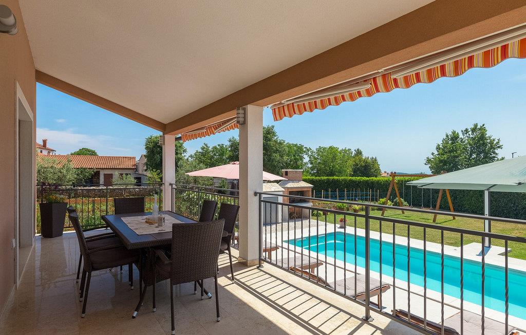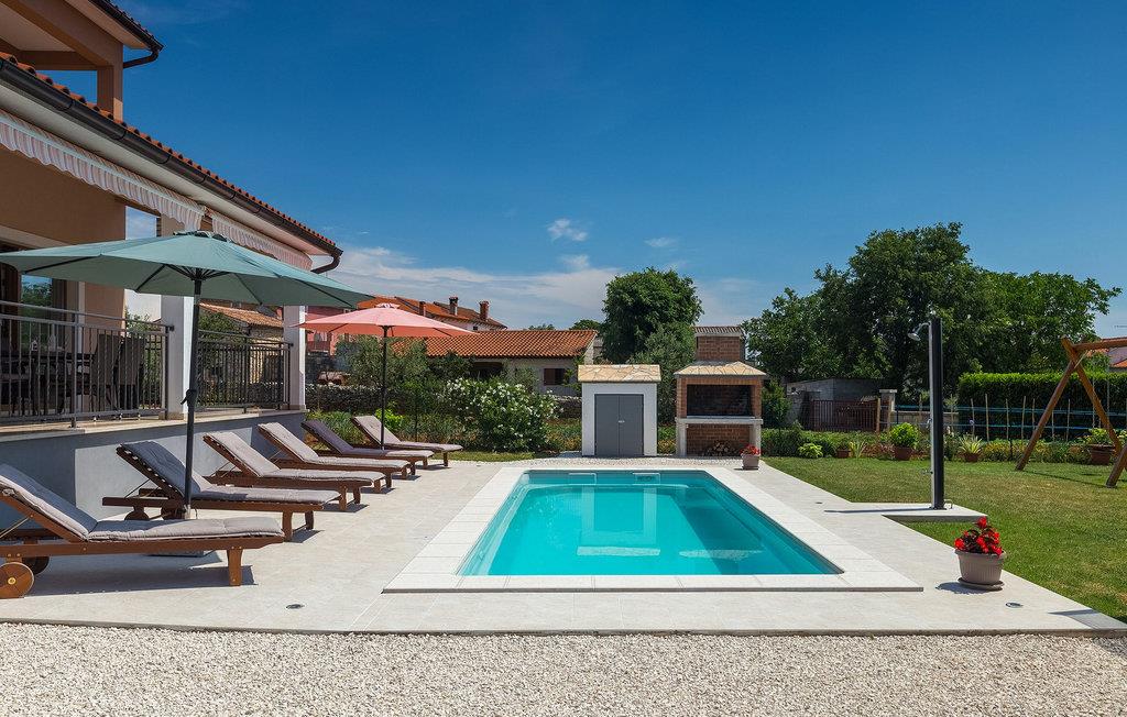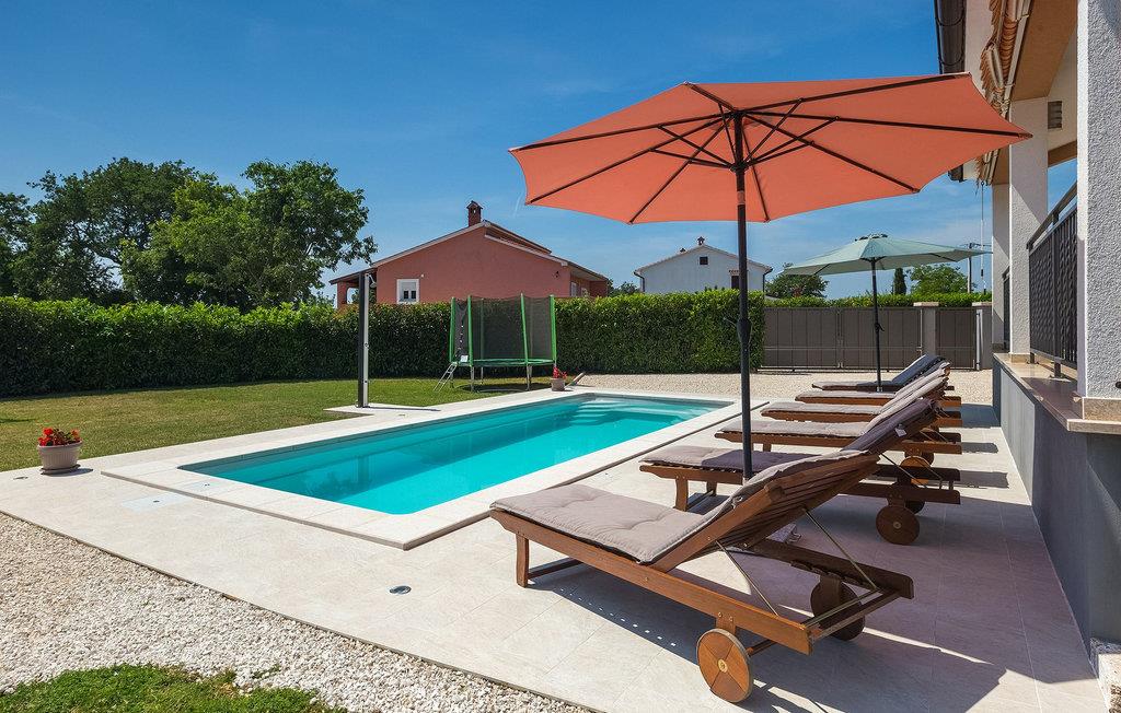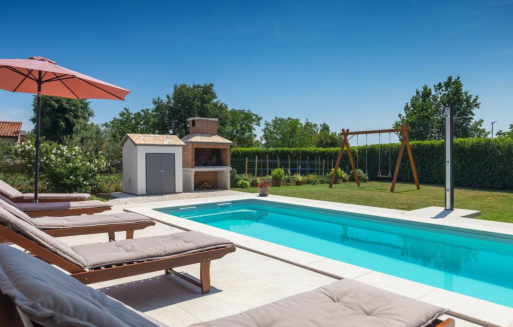 Dieses wunderschöne Anwesen befindet sich im Herzen Istriens. Die Lage der Villa ist ideal für einen erholsamen Urlaub, aber auch ein hervorragender Ausgangspunkt für eine Vielzahl von Tagesausflügen auf der ganzen Halbinsel. Die Villa besteht aus 3 Schlafzimmern und bietet eine komfortable Unterkunft für 6 Personen. Sie steht auf einem Grundstück von 900 m2, wo Sie einen unglaublich einladenden privaten Pool zur Verfügung haben, sowie eine Außenterrasse mit einem Esstisch für 6 Personen und einem Holzkohlegrill für diejenigen, die ihre Mahlzeiten im Freien zubereiten möchten. Der Innenbereich der Villa ist sehr geräumig und so ausgestattet, dass Sie sich gleich bei Ihrer Ankunft wie zu Hause fühlen werden. Das Erdgeschoss besteht aus dem Wohnzimmer mit gemütlichem Sofa und Fernseher, einer völlig ausgestatteten Küche mit Essbereich und Zugang zur Außenterrasse. Ein Badezimmer befindet sich im Erdgeschoss und eines im Obergeschoss, zusammen mit den 3 Schlafzimmern. Ein Schlafzimmer hat zwei separate Einzelbetten und zwei Schlafzimmer haben jeweils ein Doppelbett. Eine von ihnen hat Zugang zu der herrlichen Loggia. Die Villa ist von einer grünen Wiese umgeben, die sie zusammen mit dem Pool, der Schaukel und Trampolin zu einer hervorragenden Wahl für einen tollen Familienurlaub macht.Die Villa ist im Herzen des ländlichen Istriens gelegen, auf halbem Weg zwischen Pazin und Pula, und von der traumhaft schönen Landschaft umgeben, geschmückt mit Olivenhainen und idyllischen Weinbergen. Zentralistrien ist für ihre hübschen, malerischen, mittelalterlichen Städte bekannt. Gute Restaurants, Cafés, Weingüter und Geschäfte gibt es in Svetvincenat, einer charmanten, ruhigen Ortschaft in der Nähe der Villa, bekannt nicht nur für ihr reiches historisches und kulturelles Erbe sondern auch für hervorragende authentische, istrische Küche. Zahlreiche Wander- und Radrouten stehen Ihnen in dieser Region zur Verfügung für ein wahres Erlebnis Istriens. Die berühmten, lebhaften Städte entlang der wunderschönen Küste sind nur eine kurze Fahrt durch die malerische Umgebung entfernt.