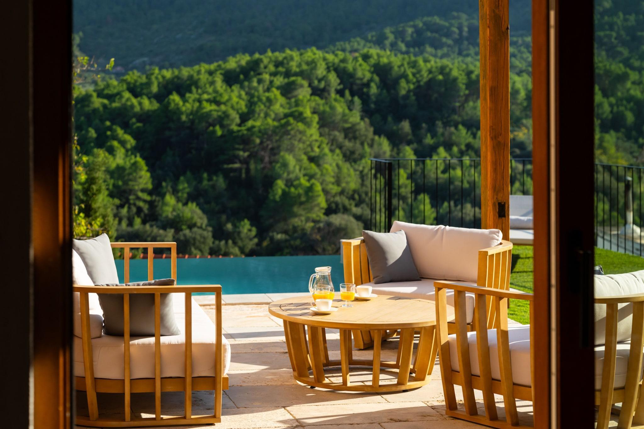 Parterre: (offene Küche(Kochplatte(Gas), Wasserkocher, Toaster, Kaffeemaschine, Backofen, Spülmaschine, Kühl-/Gefrierkombination, Zitruspresse, (), ()), Wohn-/Schlafzimmer(Einzelbett, Einzelbett, TV(Kabel, Satellit, smart TV), Esstisch, Sitzecke), Badezimmer(Dusche, Waschbecken, Toilette)) In der 1. Etage: (Schlafzimmer mit Badezimmer(Doppelbett king size, Dusche, Waschbecken, Toilette), Schlafzimmer mit Badezimmer(Doppelbett king size, Dusche, Waschbecken, Toilette), Schlafzimmer mit Badezimmer(Doppelbett king size, Dusche, Waschbecken, Toilette)) Internet, Erste-Hilfe-Station, Gartenmöbel, Babybett, Waschmaschine, Balkon, Patio, Klimaanlage, Terrasse(35 m2), Garten, Gartenmöbel, Liegen, Grill(Gas), Parkplatz, Pool(alleinige Nutzung, im Garten), Hochstuhl, Bügelbrett, Bügeleisen, Föhn, Trockenschrank, Cleaning products