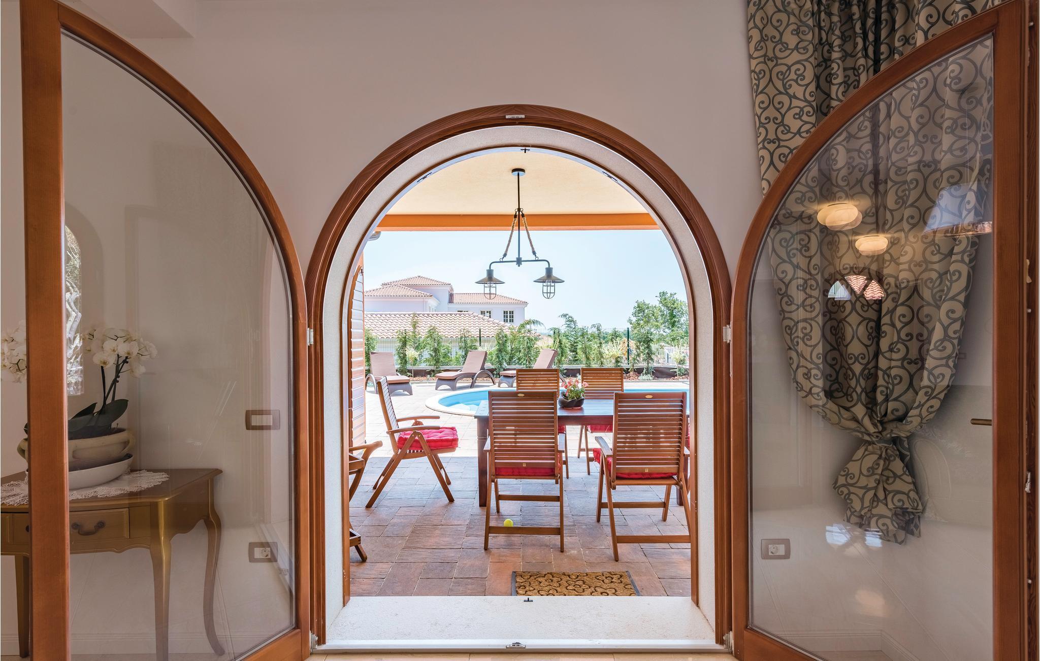 Dieses wunderschöne Ferienhaus mit Pool liegt nahe der Küste, im kleinen Ort Vabriga, der sich zwischen den bekannten Touristenzentren Porec und Novigrad befindet, zu denen Sie von hier aus Tagesausflüge unternehmen können. Ausgestattet mit hervorragenden Möbeln und märchenhaft dekoriert, ist das Haus eine ausgezeichnete Wahl für einen erholsamen Urlaub. Im Erdgeschoss befinden sich das Wohnzimmer, die Küche und der Essbereich sowie eine Gästetoilette. Im ersten Stock sind drei Schlafzimmer mit jeweils eigenem Badezimmer. Neben der herrlichen Wohnatmosphäre ist die Nähe zum nächsten Strand, den Sie in etwa 10 Gehminuten erreichen, ein weiterer Vorteil.