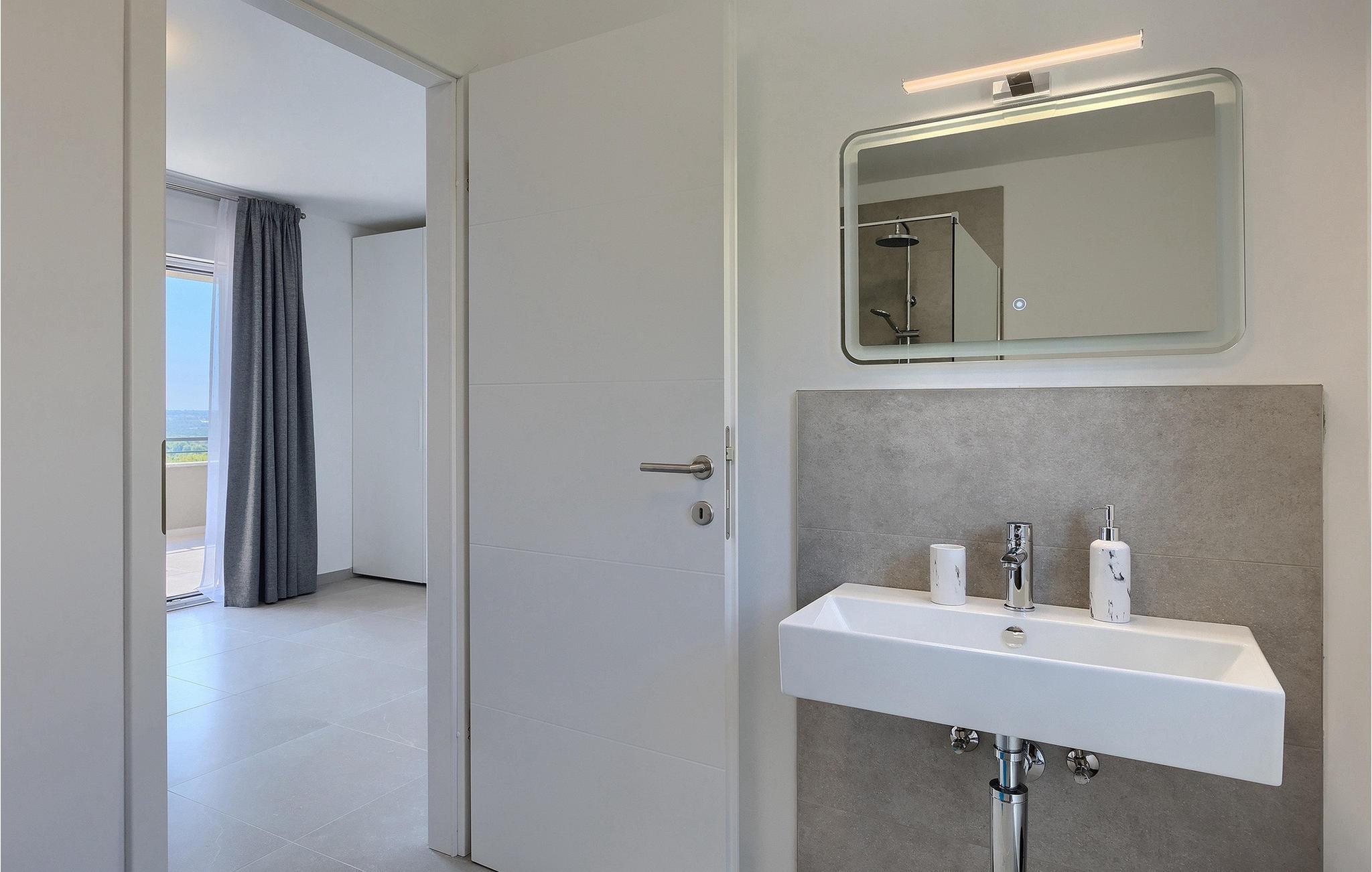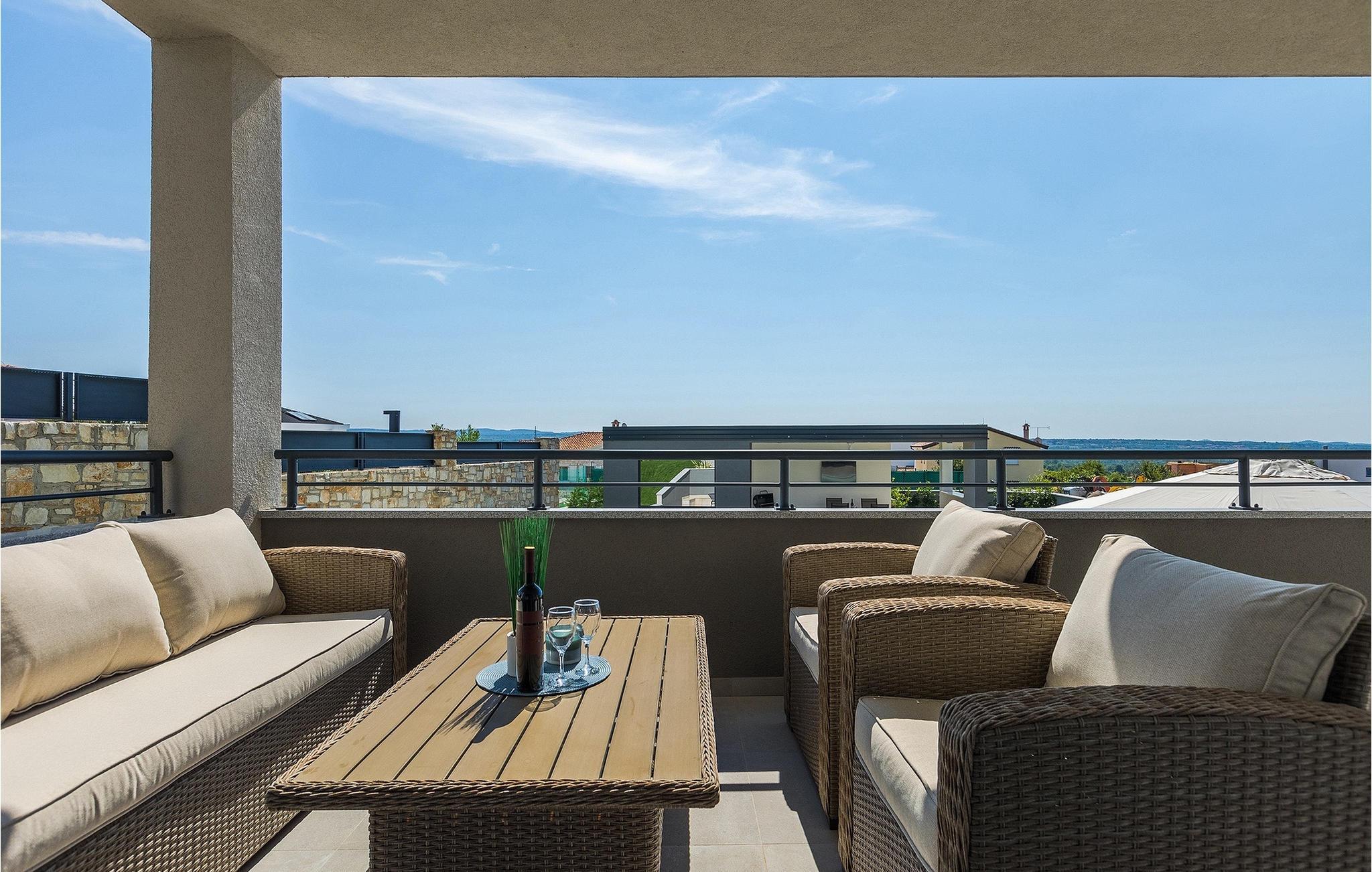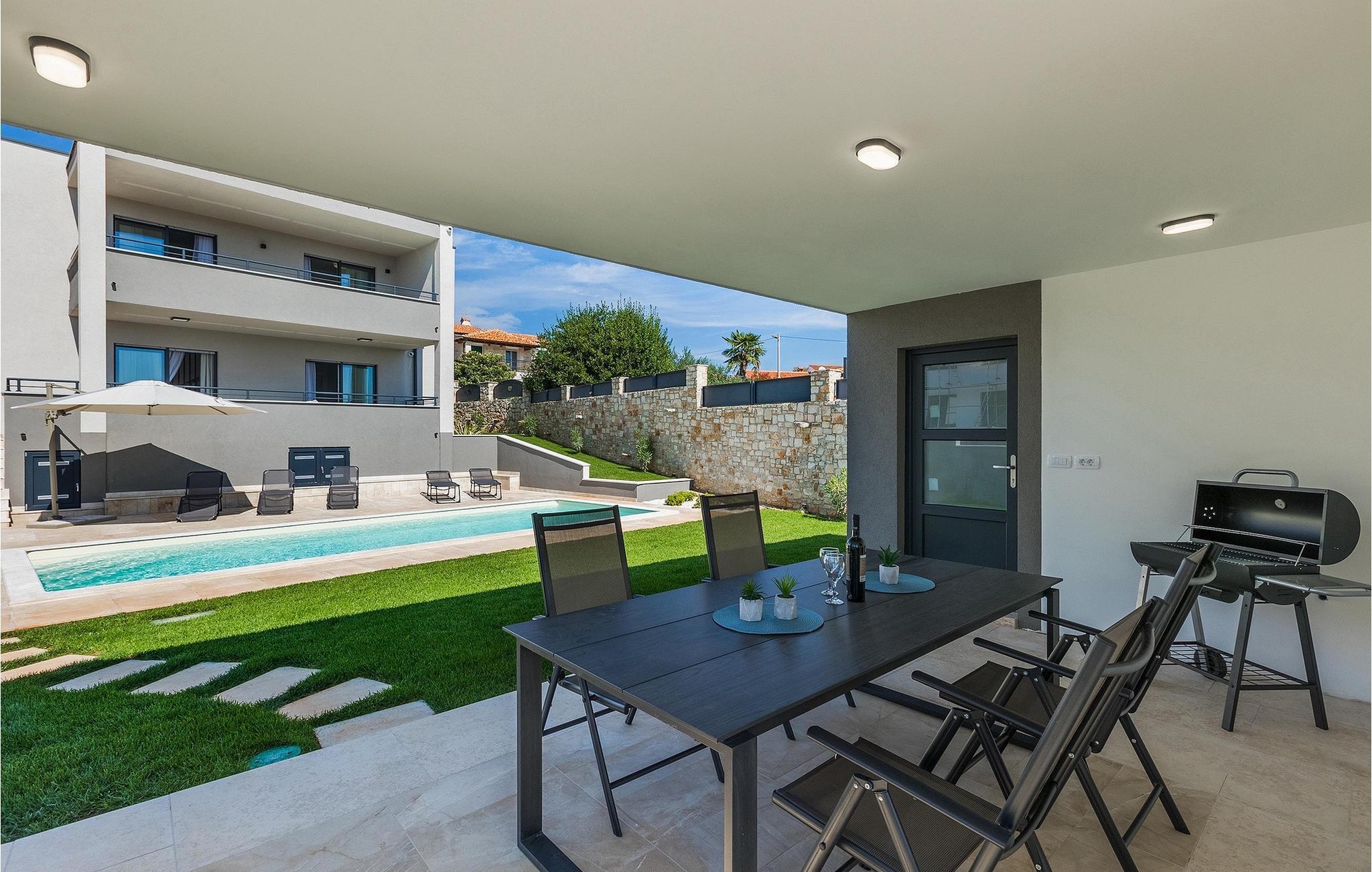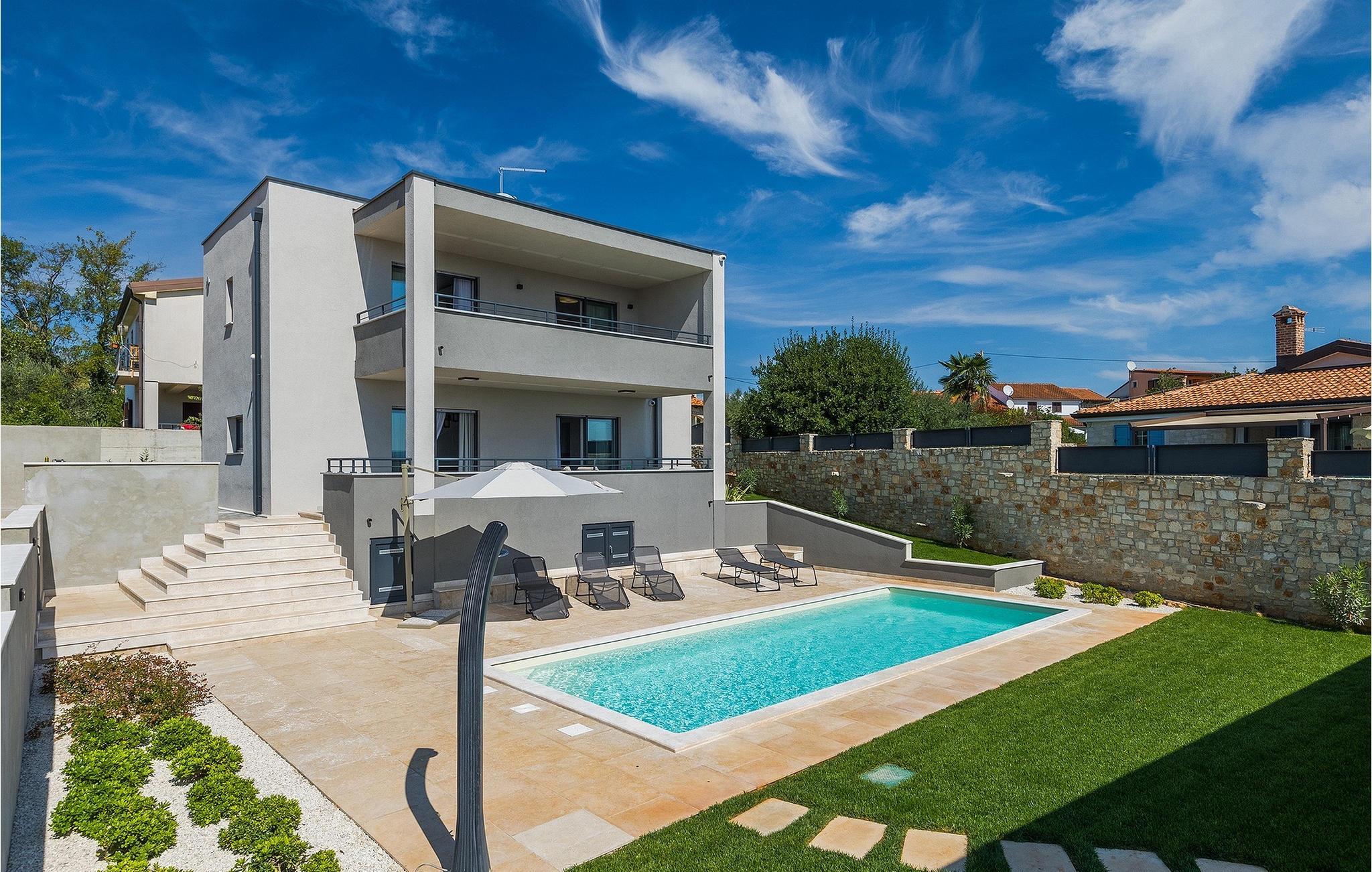 Die wunderschöne Villa Nebra in Istrien liegt nur 2 km von der Küste und ist die perfekte Wahl für einen ruhigen Familienurlaub. Vor dieser herrlichen modern eingerichteten Villa befindet sich eine Terrasse mit privatem Pool sowie eine überdachte Terrasse mit Esstisch und Grill, wo Sie die Möglichkeit haben, Ihre Lieblingsspezialitäten zuzubereiten und die entspannende sommerliche Atmosphäre mit Ihrer Familie zu genießen.