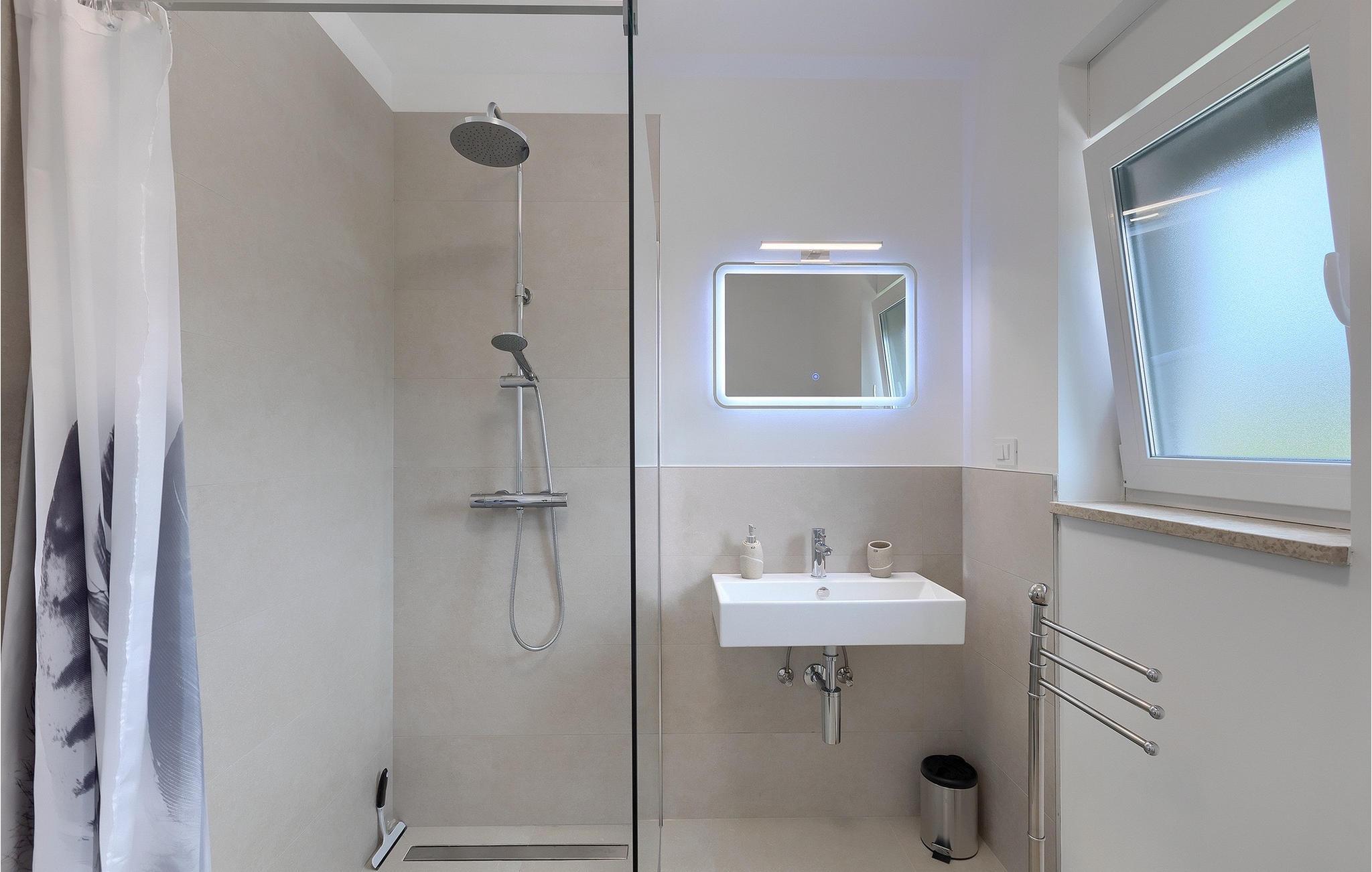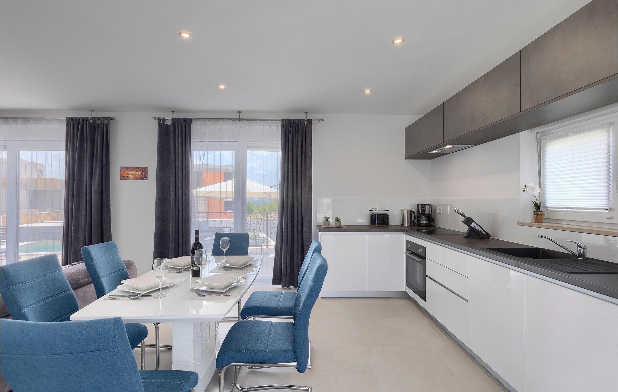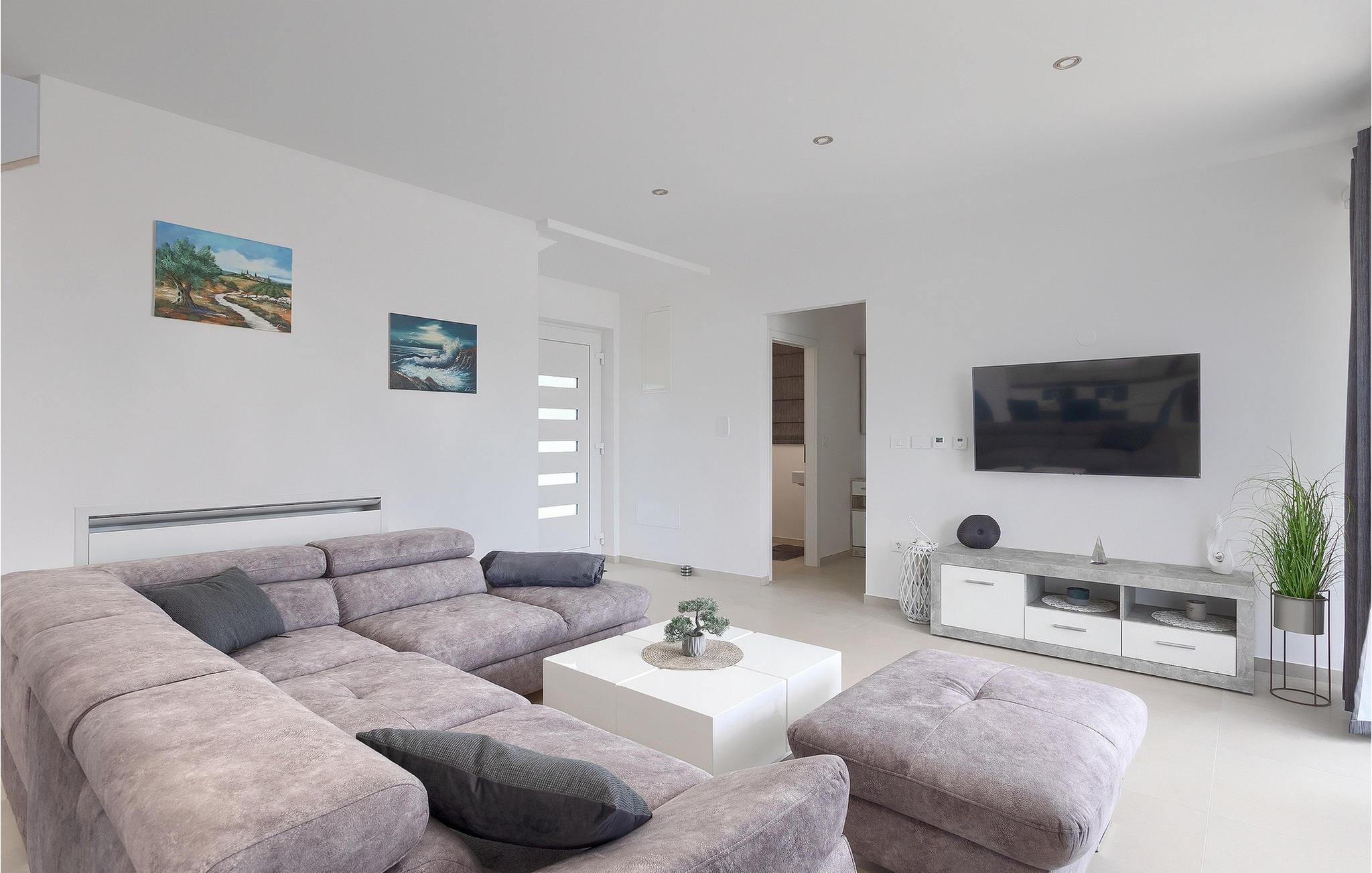 Das voll klimatisierte Interieur der Villa Anamarija ist hell und offen gestaltet. Der stilvolle Wohnbereich setzt sich zusammen aus Wohn- und Essbereich sowei einer gut ausgestatteten modernen Küche und einer Gästetoilette. Im Obergeschoss versprechen 2 schicke Schlafzimmer ruhige Nächte und Komfort - jeweils mit Doppelbett und eigenem Badezimmer. Ein Balkon ist der perfekte Ort, um sich zurückzuziehen oder um den Sternenhimmel am Abend zu betrachten.