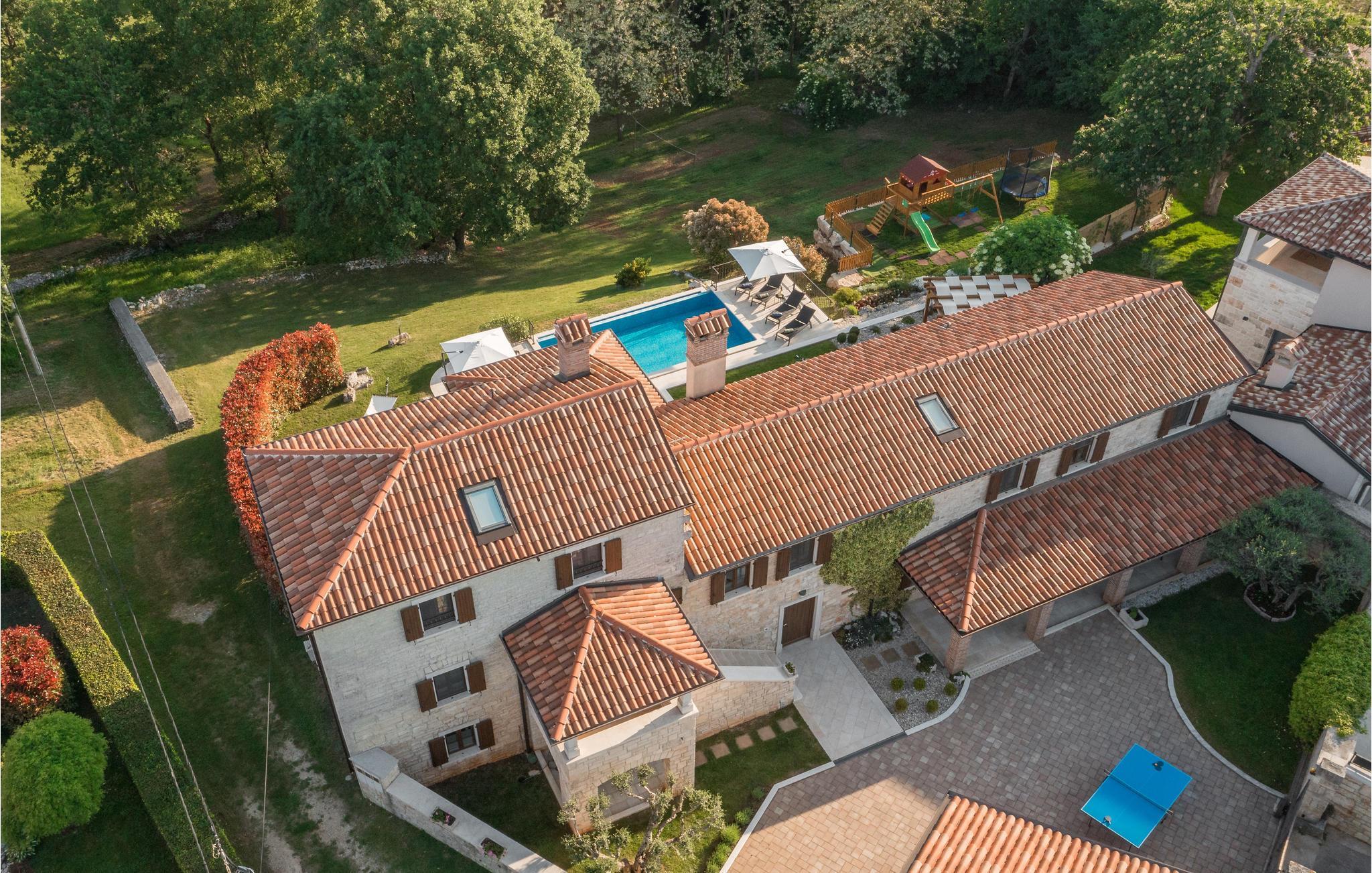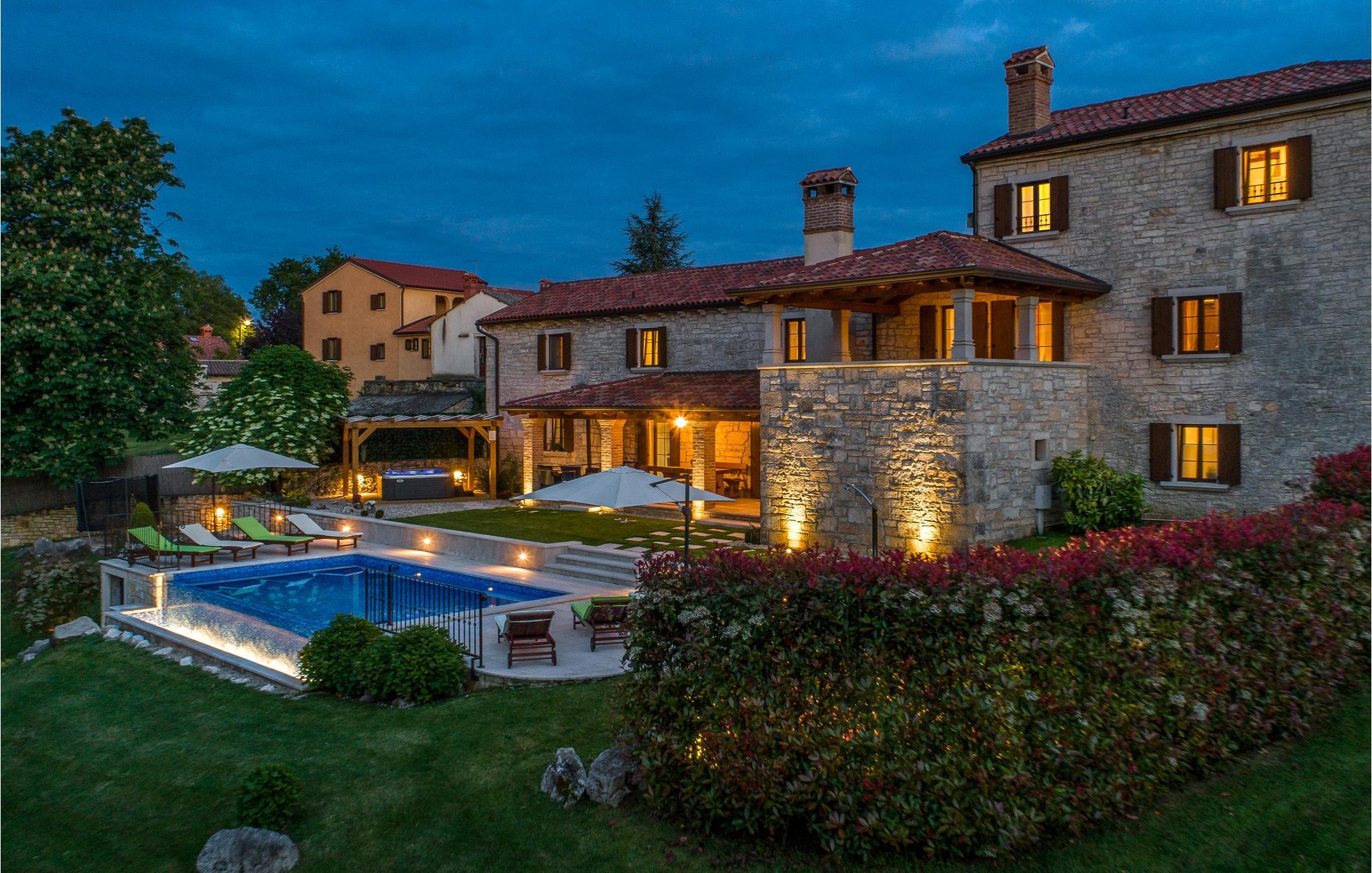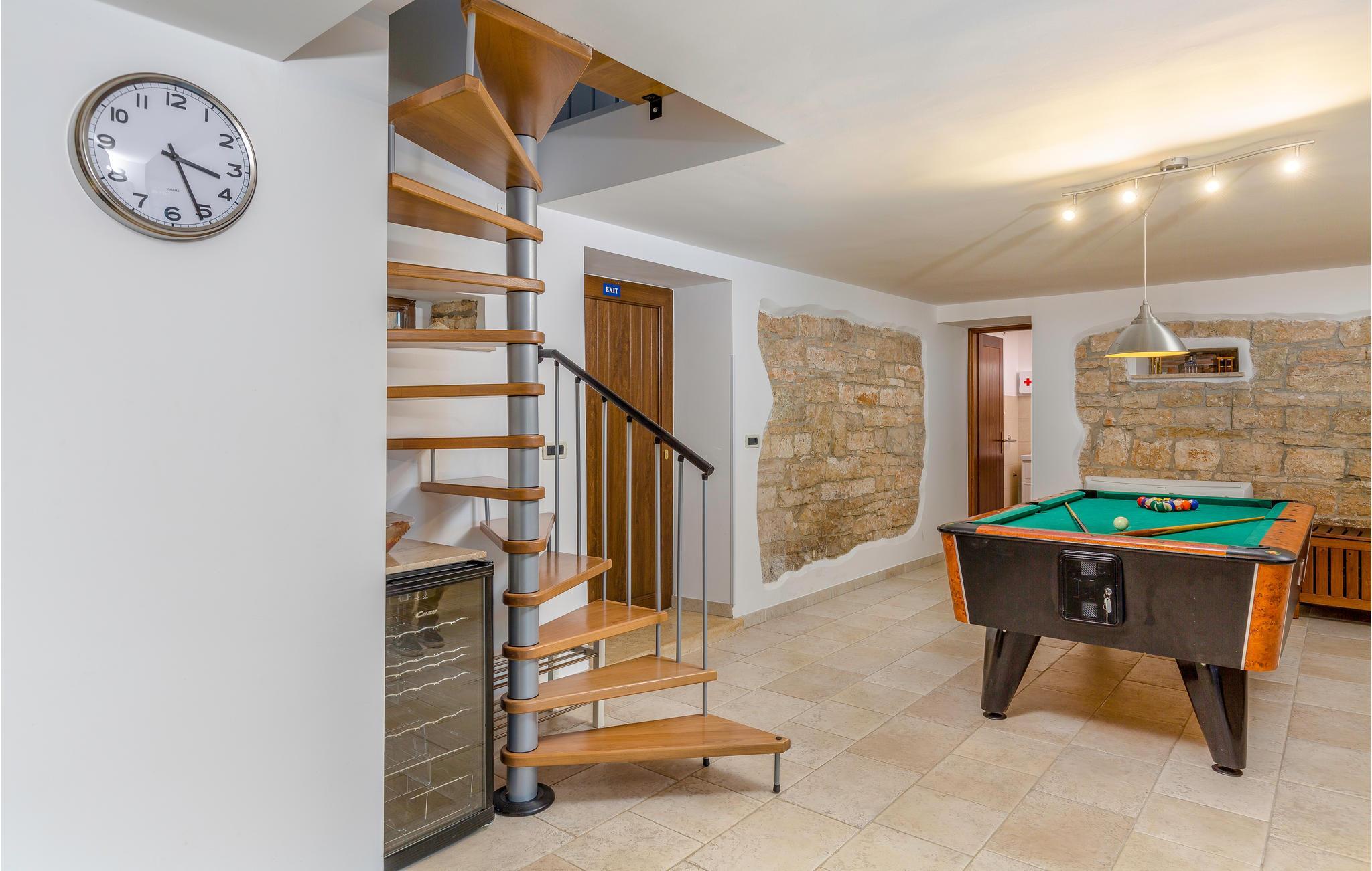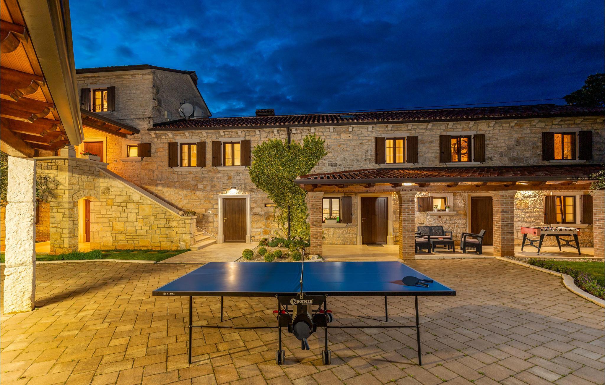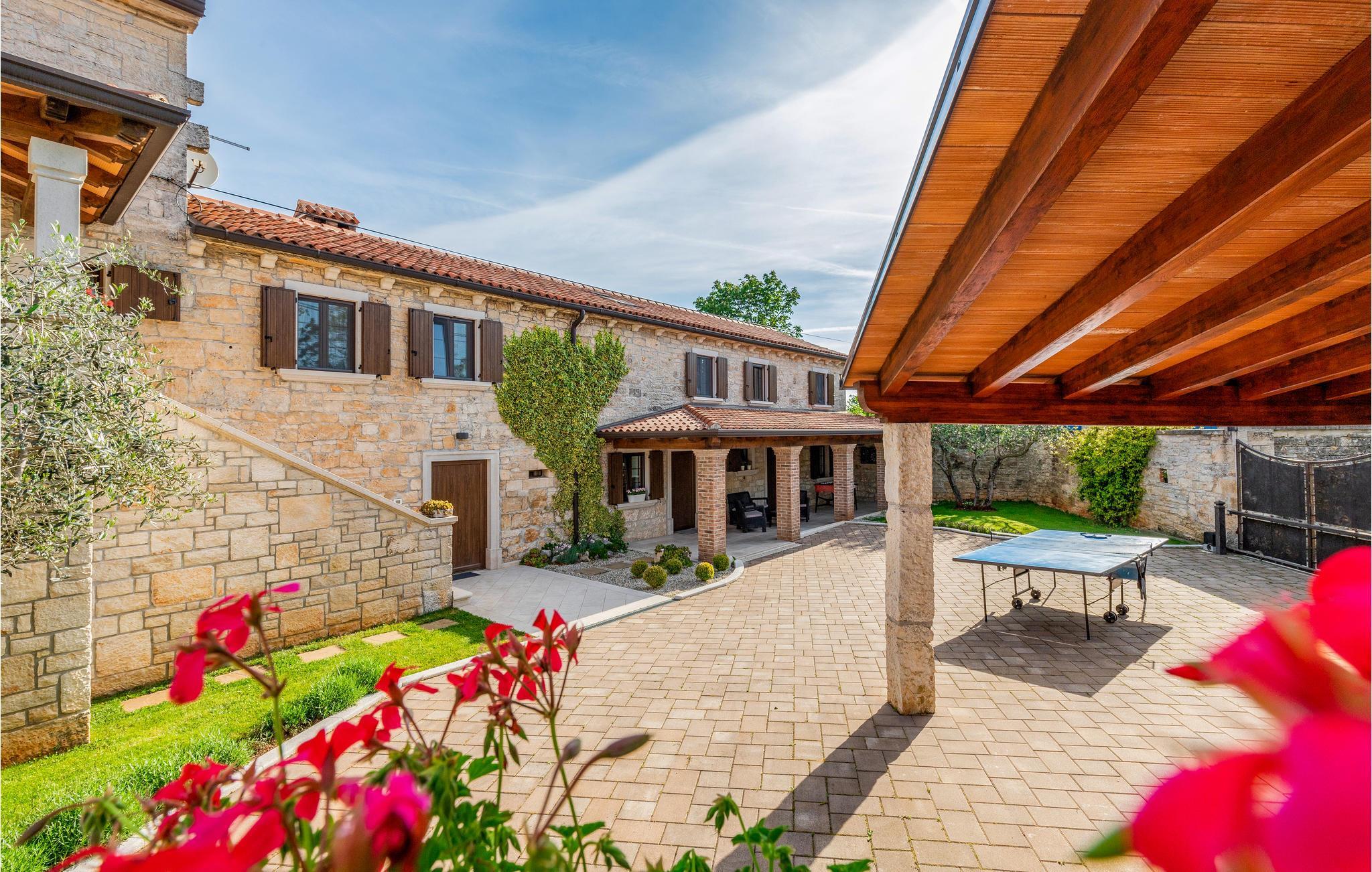 Das wunderschöne Ferienhaus wurde 2014 im traditionellen Stil renoviert. Es bietet viel Komfort und eine schöne Atmosphäre. Im Erdgeschoss findet man die Küche mit Essecke sowie ein Spielzimmer mit Billardtisch und ein großer Wohnraum mit Kamin sorgt für Gemütlichkeit. Innentreppen führen in den 1.Stock mit den Schlafzimmern und einem Spielzimmer mit PlayStation. Das Grundstück ist zweigeteilt. Der kleinere Teil dient als überdachter Parkplatz, während auf dem großen, in Kaskaden terrassiertem Abschnitt, der Pool und eine überdachte Terrasse liegen. Zugang zu diesem Teil wird vom Wohnzimmer verschafft. In 15 Fahrminuten kommen Sie nach Porec.