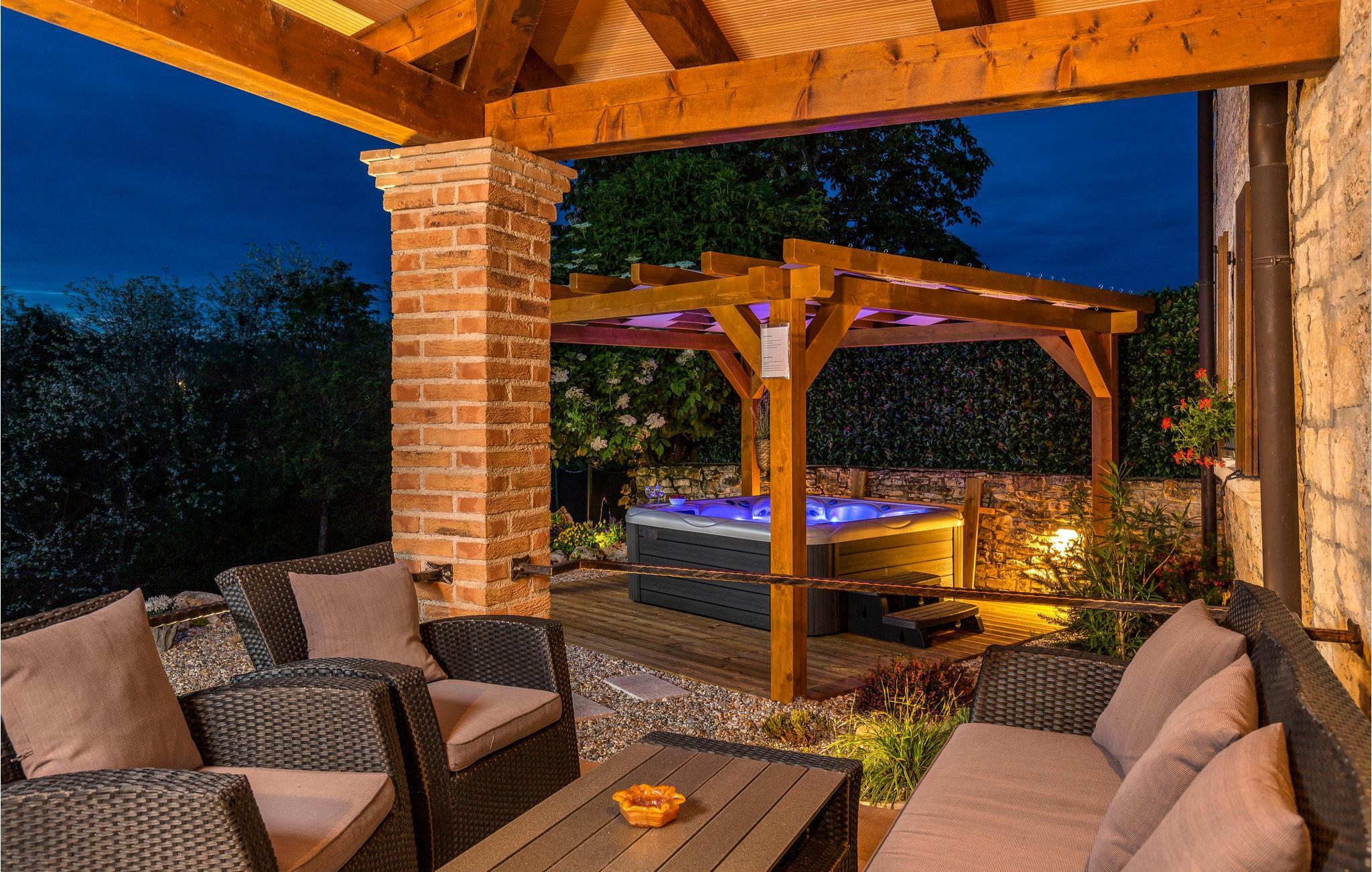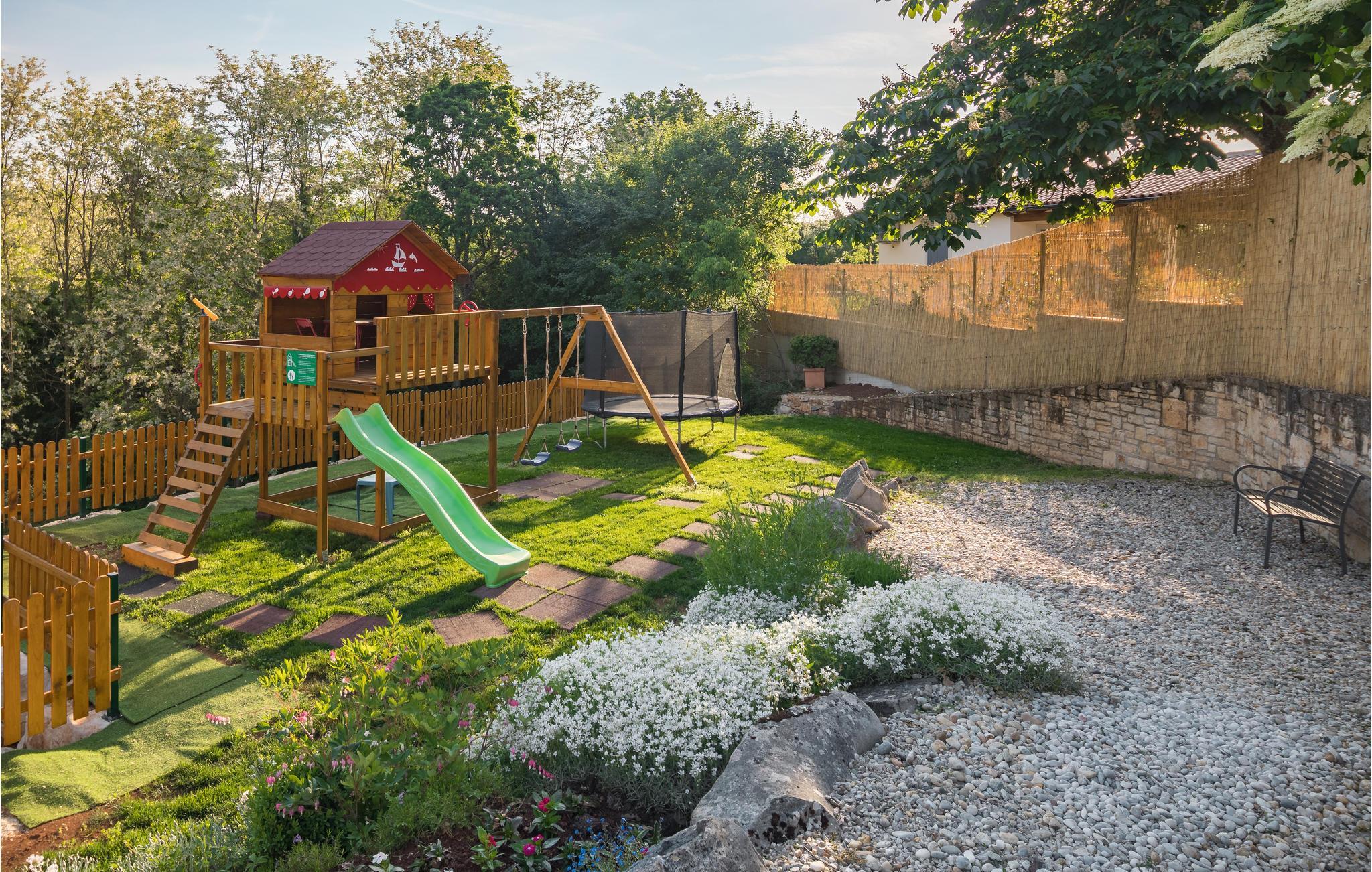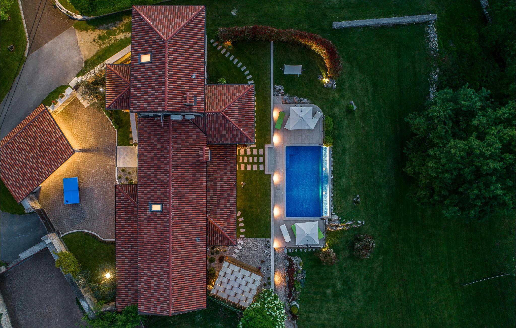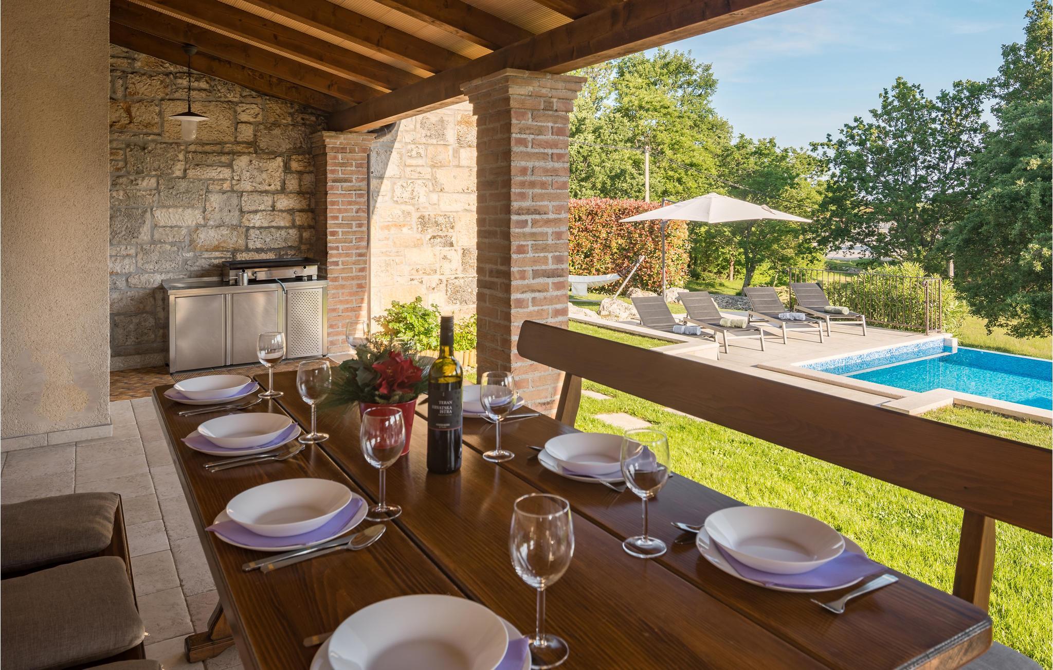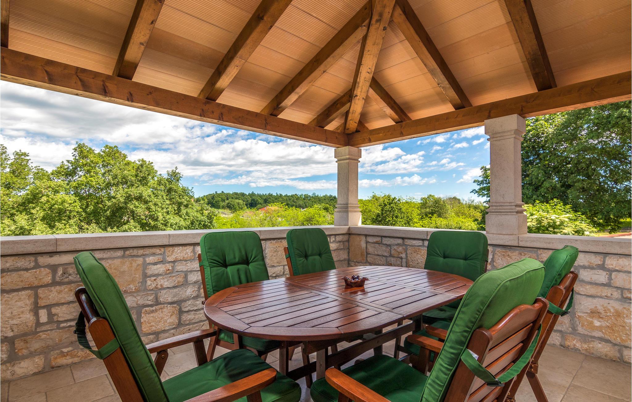Das wunderschöne Ferienhaus wurde 2014 im traditionellen Stil renoviert. Es bietet viel Komfort und eine schöne Atmosphäre. Im Erdgeschoss findet man die Küche mit Essecke sowie ein Spielzimmer mit Billardtisch und ein großer Wohnraum mit Kamin sorgt für Gemütlichkeit. Innentreppen führen in den 1.Stock mit den Schlafzimmern und einem Spielzimmer mit PlayStation. Das Grundstück ist zweigeteilt. Der kleinere Teil dient als überdachter Parkplatz, während auf dem großen, in Kaskaden terrassiertem Abschnitt, der Pool und eine überdachte Terrasse liegen. Zugang zu diesem Teil wird vom Wohnzimmer verschafft. In 15 Fahrminuten kommen Sie nach Porec.