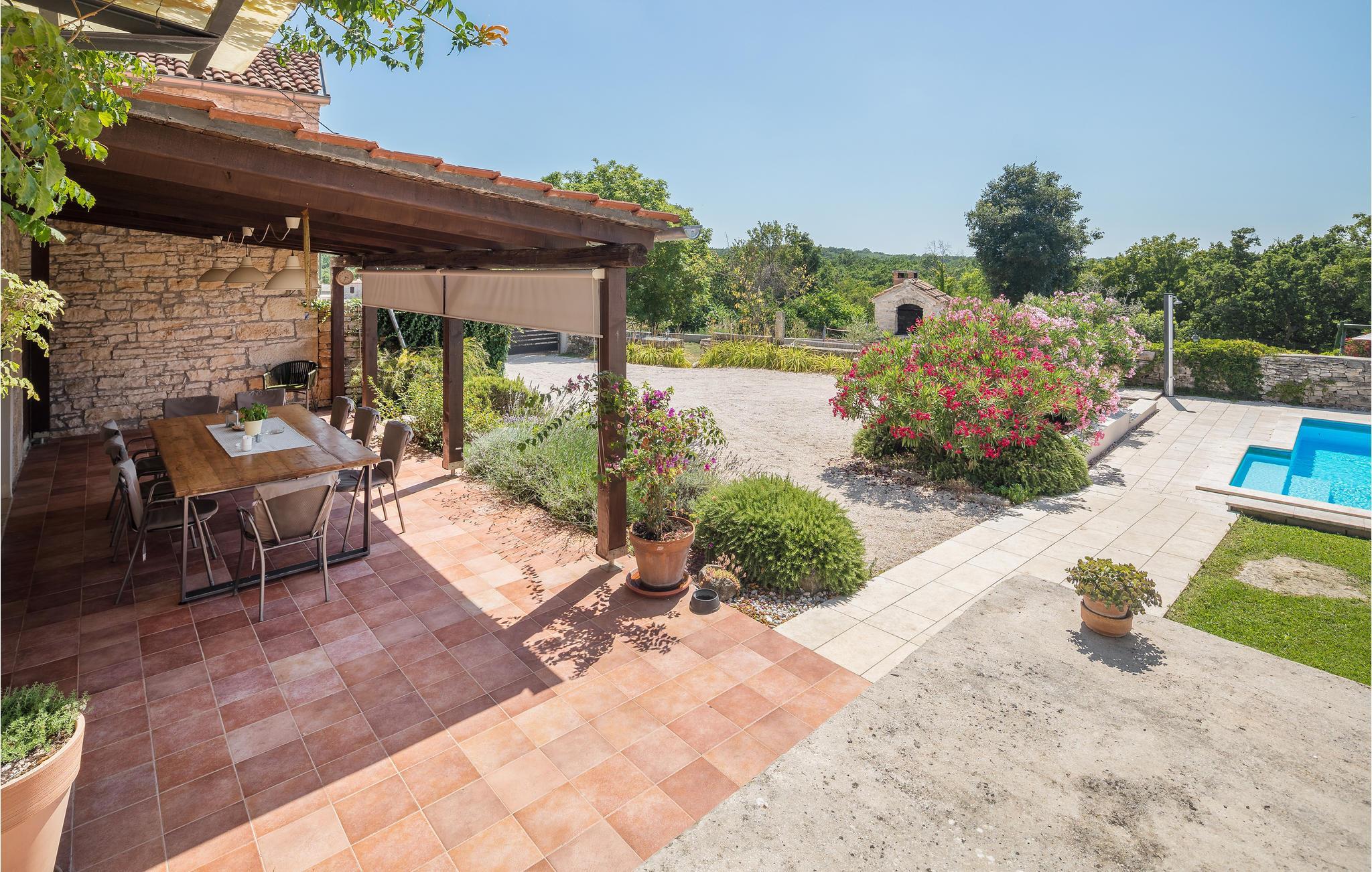 Dieses authentische Steinhaus liegt im Ort Jakovici, im Inland von Istrien. Es wurde vor vielen Jahren gebaut und unter Beibehaltung des traditionellen Looks renoviert. Das Innere ist der heutigen Lebensweise angepasst und bietet alles, was man für einen Urlaub benötigt. Im Erdgeschoss sind das Wohnzimmer, Küche, Esszimmer, Schlafzimmer und Bad, während sich im Obergeschoss drei Schlafzimmer und zwei Bäder befinden. Der große Hof besteht aus zwei Teilen. Der erste, vollständig geschlossene Abschnitt besitzt Pool, Sonnenterrasse und Grill. Danach kommt eine Rasenfläche zum Spielen von Badminton oder Volleyball.