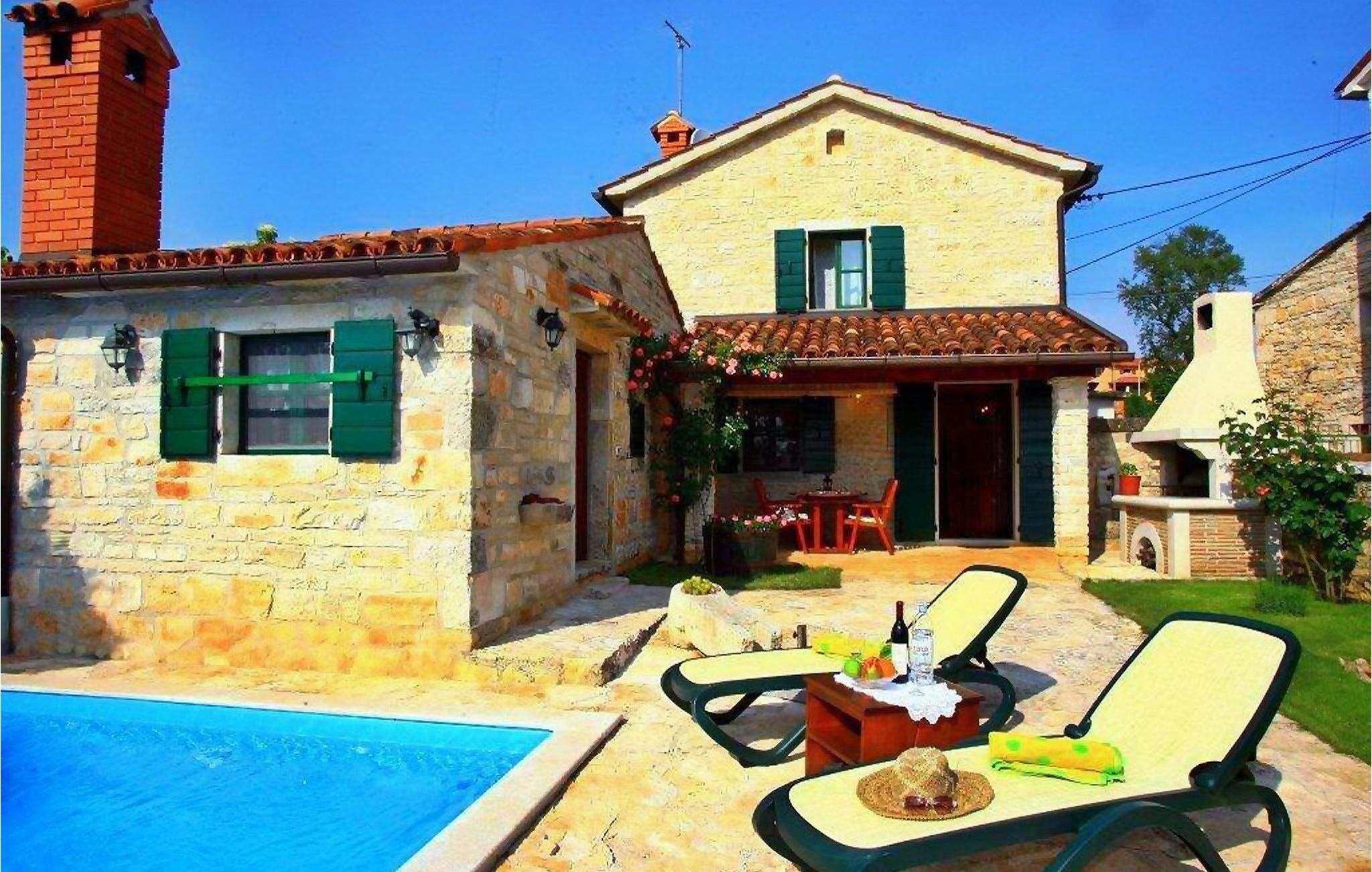Die Villa Bassi liegt in einem ruhigen Dorf in Zentralistrien, aber nur eine kurze Fahrt von den touristischen Küstenstädten entfernt. Die Villa kann bis zu 3 Erwachsene und 1 Kind beherbergen und ist somit ideal für Familien. Das Grundstück ist vollständig umzäunt und bietet einen privaten Pool mit Liegestühlen, die zum Entspannen einladen. Ein Essbereich im Freien und ein Grill stehen ebenfalls zur Verfügung, wo Sie köstliche Mahlzeiten zubereiten und Ihre Kochkünste unter Beweis stellen können. Das Erdgeschoss der Villa besteht aus einem offenen Wohnzimmer mit einer voll ausgestatteten Küche und einem Essbereich, sowie einer Toilette und einer Taverne mit Kamin. In der ersten Etage befinden sich zwei gemütliche Schlafzimmer und ein Badezimmer. Ein Schlafzimmer hat ein Doppelbett und ein Schlafzimmer hat ein größeres Einzelbett. Im Wohnzimmer befindet sich auch ein Schlafsofa, das für ein kleines Kind geeignet ist. Die Villa verfügt über 2 Klimaanlagen, Internetzugang und einen Parkplatz für 2 Autos. Lassen Sie sich von dem istrischen Charme der Villa Bassi verzaubern und genießen Sie einen ruhigen und erholsamen Urlaub.Die Villa Bassi befindet sich im ruhigen Dorf Jakovici in Zentral Istrien welches der perfekte Rückzugsort vom stressigen Alltag sowie von den überfüllten touristischen Städten ist. Die Küstenstädte wie zum Beispiel Porec und Rovinj sind nur eine kurze Autofahrt entfernt. Dort befindet sich eine Vielzahl an Cafes, Bars und Restaurants. Kosten Sie leckere mediterrane Küche die in den Restaurants geboten werden. Entspannen Sie sich an den traumhaften Stränden und tauchen Sie in das kristallklare Wasser ein. Die “Stadt der Künstler” Groznjan liegt auf einem Hügel und bietet einen traumhaften Blick über die idyllische Landschaft. Zahlreiche FIlm- und Musikfestivals werden dort organisiert. Entdecken Sie die herrliche Landschaft Istriens durch Wander- oder Radtouren. Empfehlenswert sind auch die mittelalterlichen Hügelstädtchen Motovun und Groznjan. Besuchen Sie das Amphitheater in Pula oder den Nationalpark Brijuni. Istrien bietet wirklich alles was man sich für einen aufregenden aber zugleich erholsamen Urlaub wünscht.