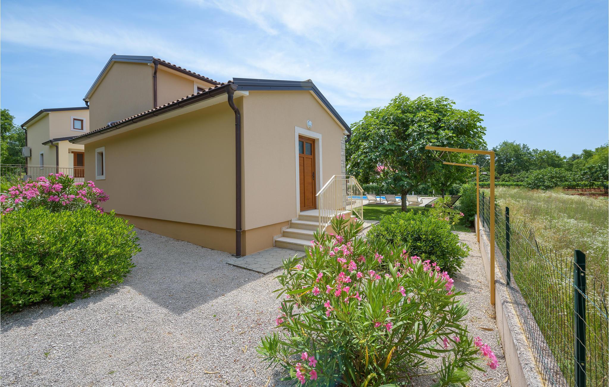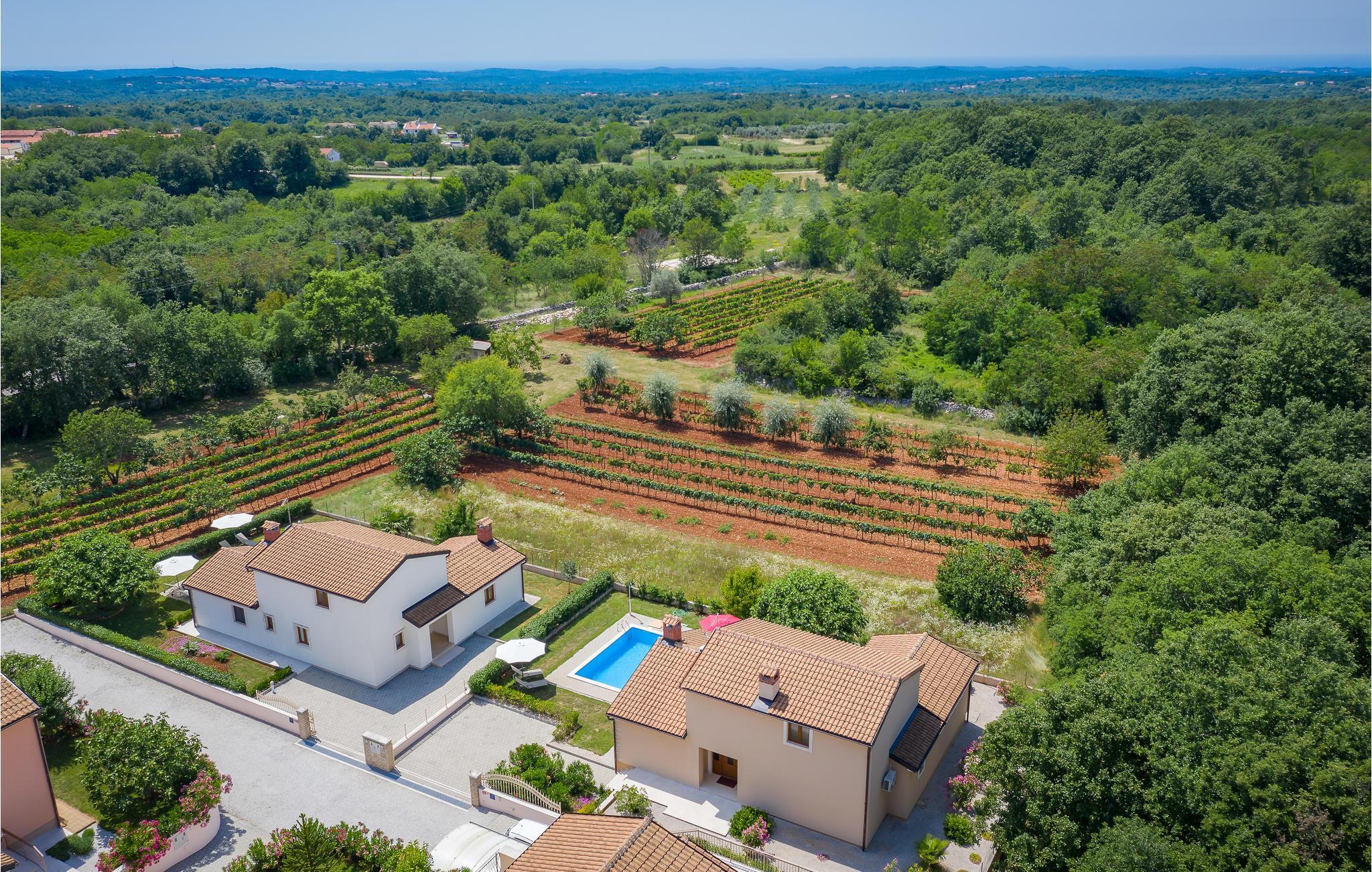 Dieses Ferienhaus mit Swimmingpool liegt im kleinen Dorf Kmacici, in der Nähe von Tinjan, einer Ortschaft im Landesinneren. Das Haus ist geschmackvoll und zeitgemäß eingerichtet. Im Erdgeschoss befinden sich ein großes Wohnzimmer, Küche und Esszimmer. Über den Flur erreichen Sie das Bad und ein Schlafzimmer. Zum 1.Stock führt eine Innentreppe, wo sich noch 2 Schlafzimmer und ein Bad befinden. Verbringen Sie Ihre Zeit auf dem geschlossenen Rasengrundstück mit Pool oder auf der überdachten Terrasse mit Grill. In ca. 15 Fahrminuten erreichen Sie die Strände im Ferienort Porec.