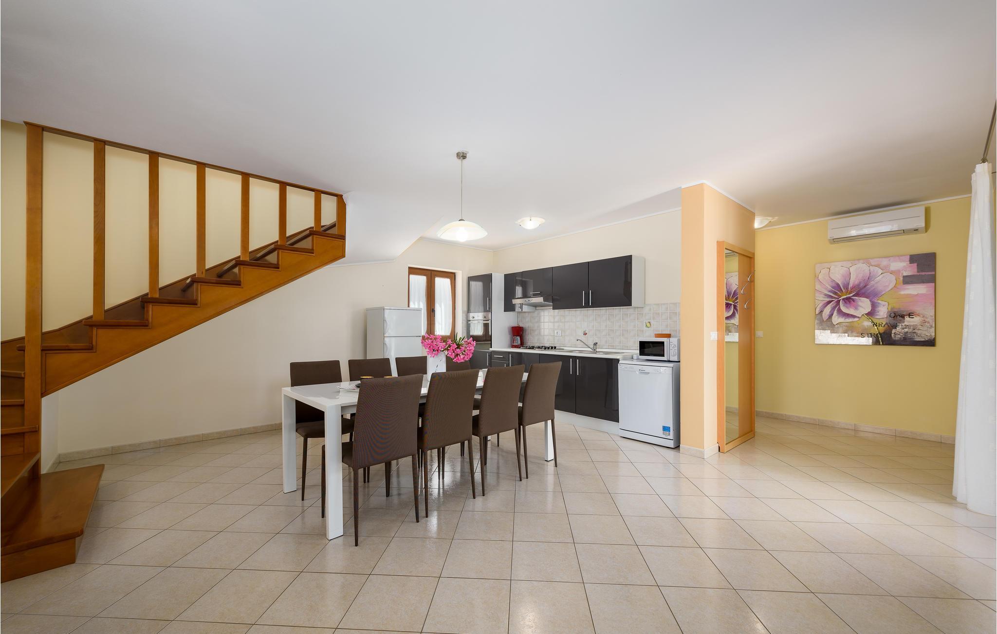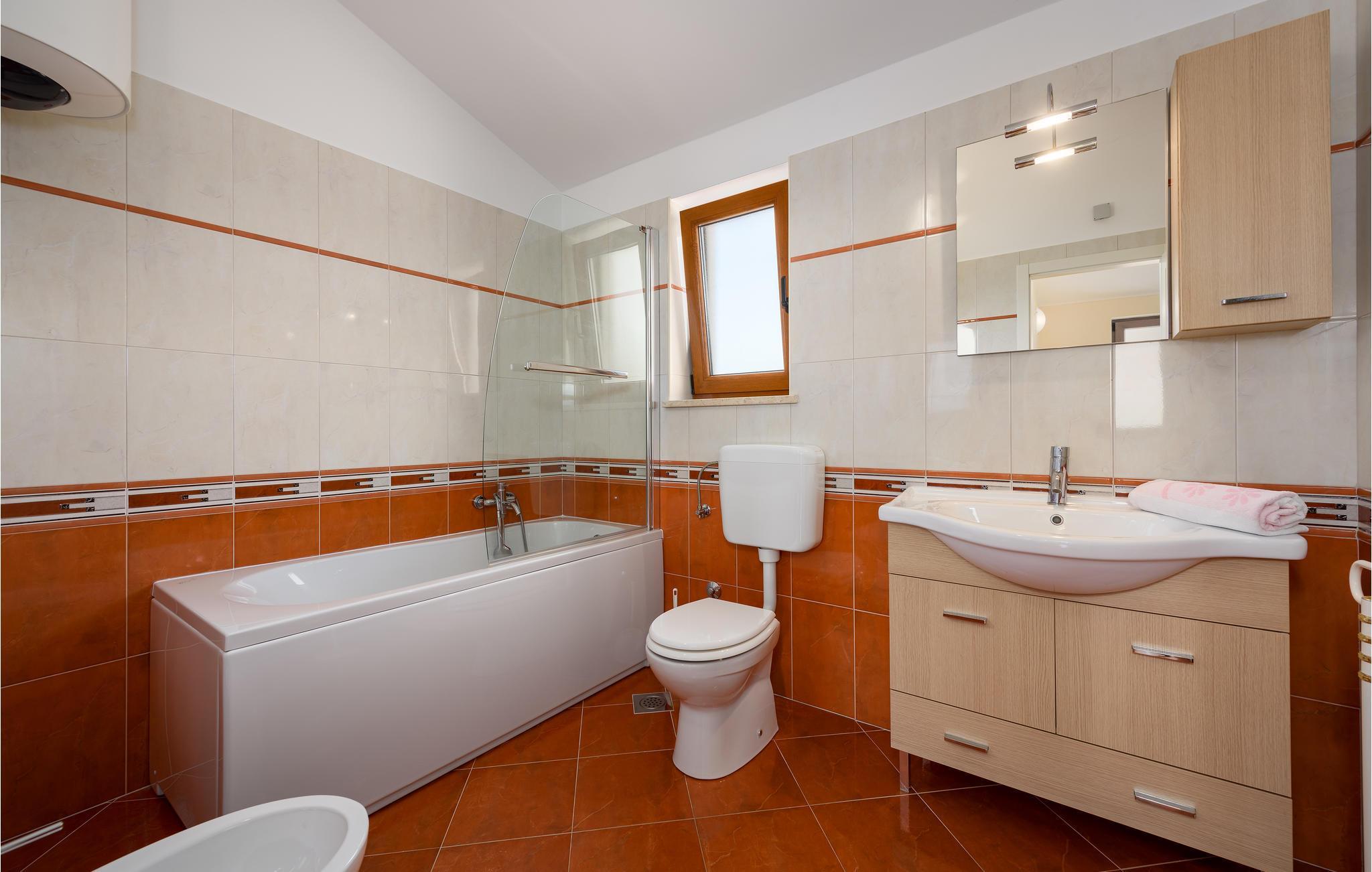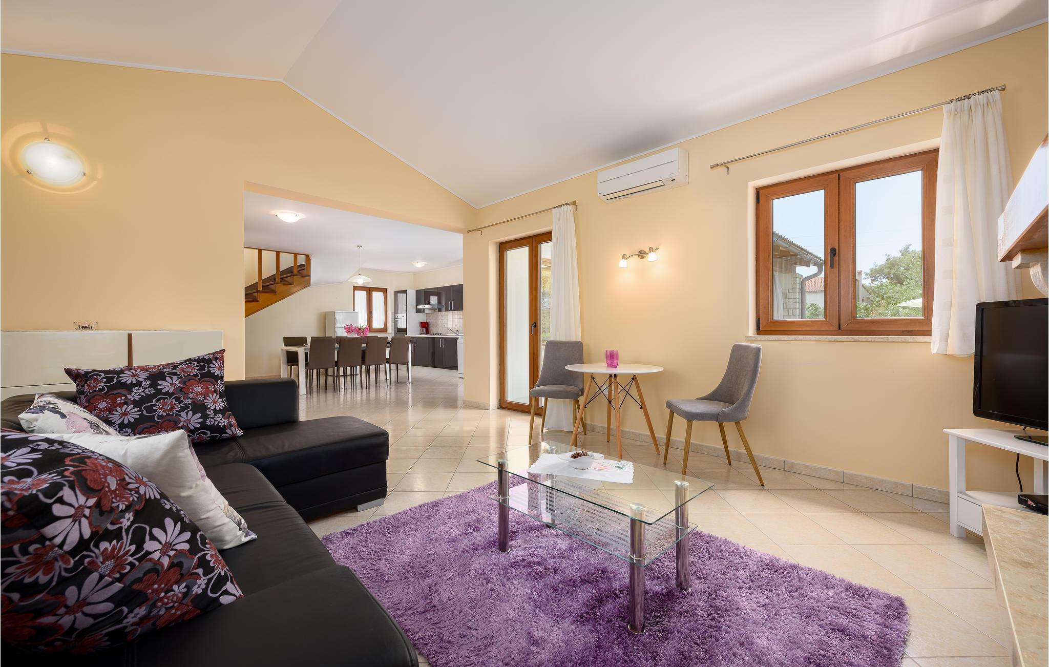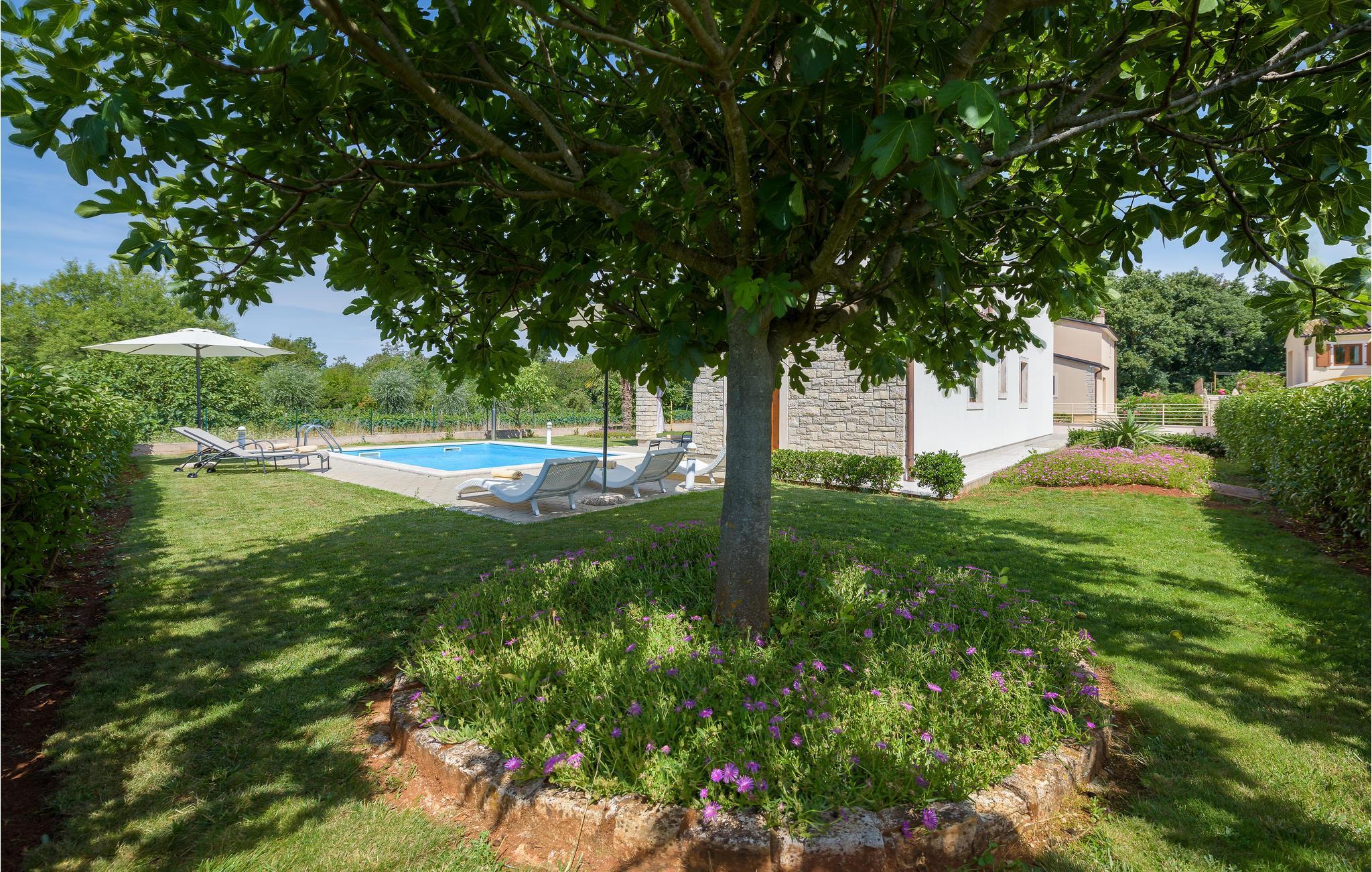 Dieses sympathisch eingerichtete Ferienhaus mit Pool befindet sich im kleinen und ruhigen Ort Kmacici, in der Nähe des Städtchens Tinjan. Tinjan ist besonders für seinen hervorragenden Räucherschinken berühmt. Entspannen Sie in einem mit viel Geschmack und modernem Standard versehen Ferienobjekt. Es wird Ihnen viel Raum und Komfort bieten. Im Erdgeschoß befinden sich ein geräumiger Wohnraum, eine Küche mit Essbereich sowie die Bade- und Schlafzimmer. Im Obergeschoß sind noch zwei Schlafzimmer und ein Badezimmer vorhanden. Erfrischen Sie sich im Pool, der schön im eingezäunten und gepflegten Garten liegt oder sonnen Sie sich auf den Liegen. Bereiten Sie Ihre Mahlzeiten auf den Außengrill zu und verbringen Sie viel Zeit mit Ihren Liebsten im Freien auf der überdachten Terrasse. In ca. fünfzehn Fahrminuten erreichen Sie das beliebte Porec, wo die nächsten Badestrände sind und welches sich sehr als sehenswertes Ausflugsziel eignet.