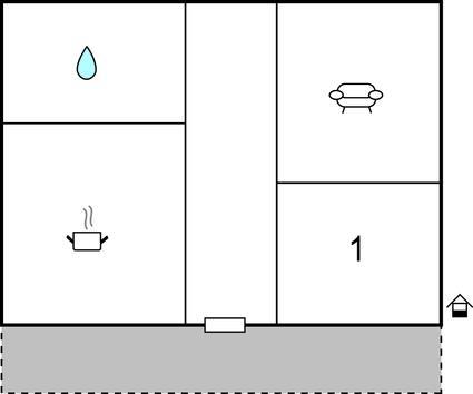 Im Inneren des schönen Ferienhauses erwarten Sie ein Schlafzimmer, ein Badezimmer, eine Küche und ein schöner Wohnbereich.