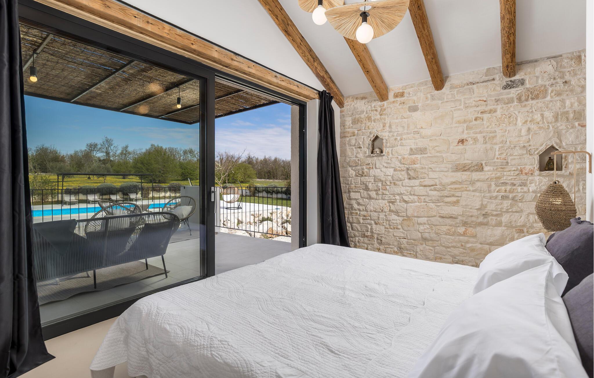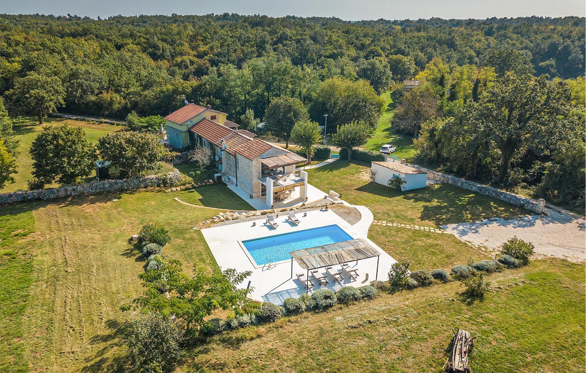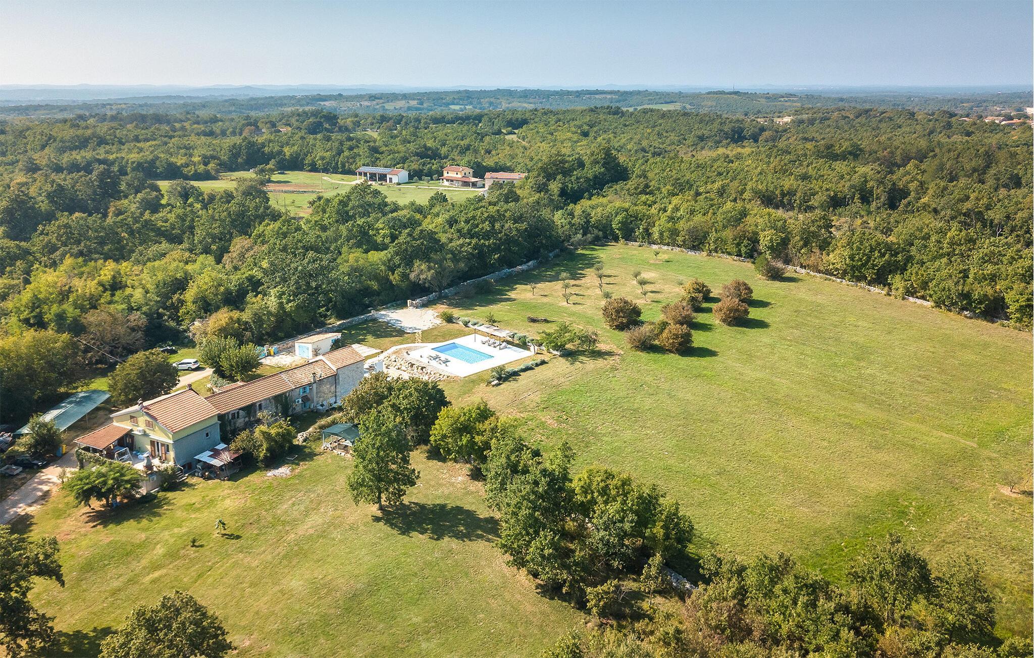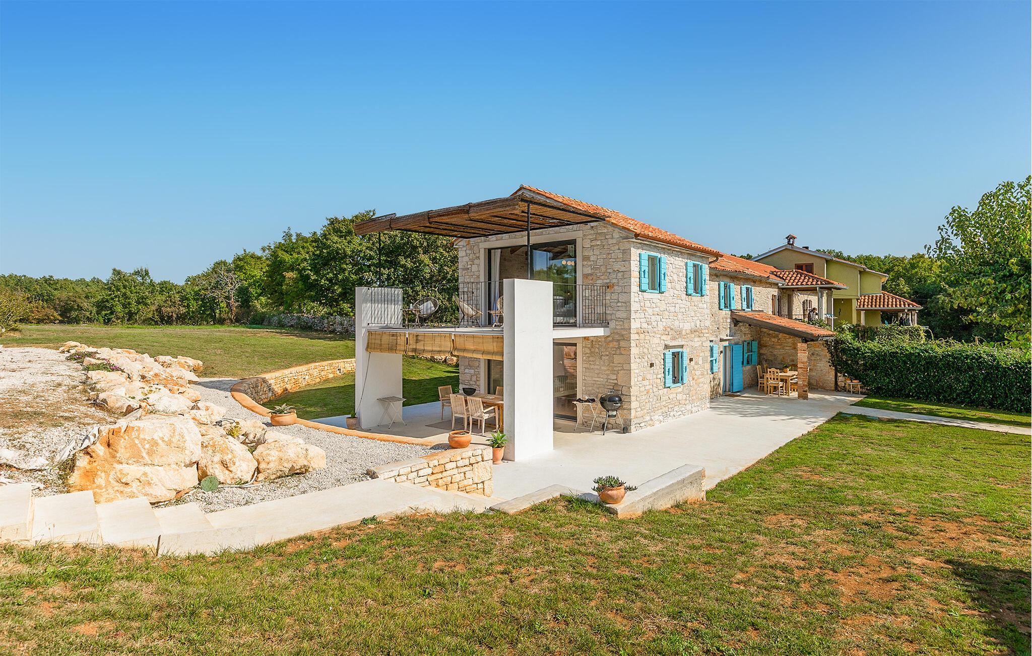 Die moderne überdachte Terrasse im ersten Stock bietet einen herrlichen Blick auf das Feld und seine prächtigen Olivenbäume. Außerdem haben das Schlafzimmer im Erdgeschoss und das obere Schlafzimmer mit der Terrasse sehr große Glaswände, die das Wohngefühl im Freien und natürliches Licht verstärken. In den Abendstunden ist es schön, die wunderschön beleuchtete Umgebung unter dem magischen Sternenhimmel zu genießen. Mit der Villa Natura sind Sie mitten in der Natur, aber nicht zu weit von der nächsten größeren Stadt entfernt - die nächste Küstenstadt ist Porec - nur 20 Autominuten entfernt.