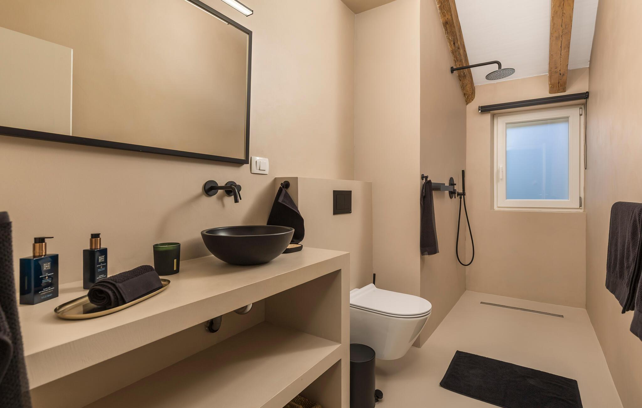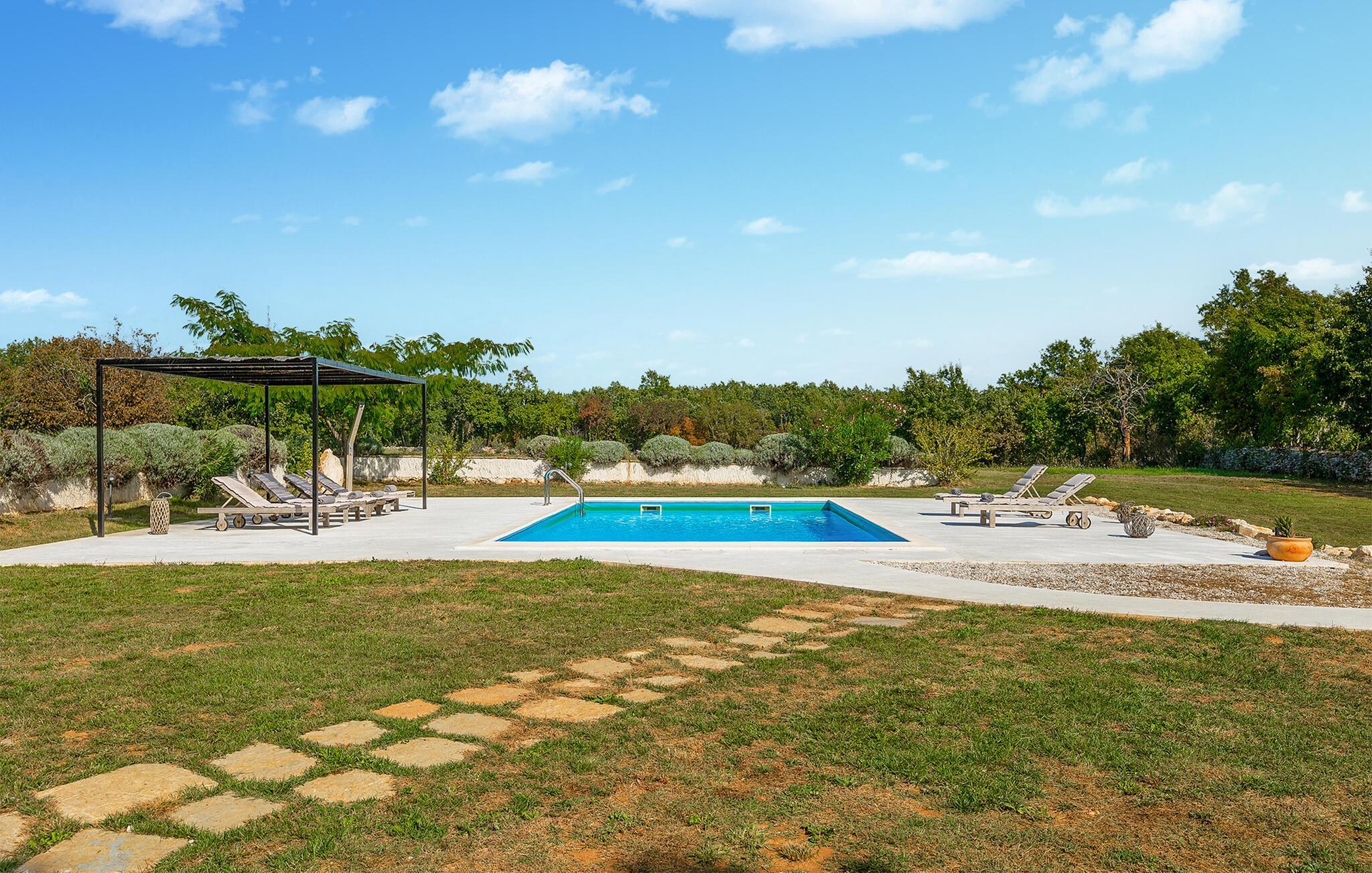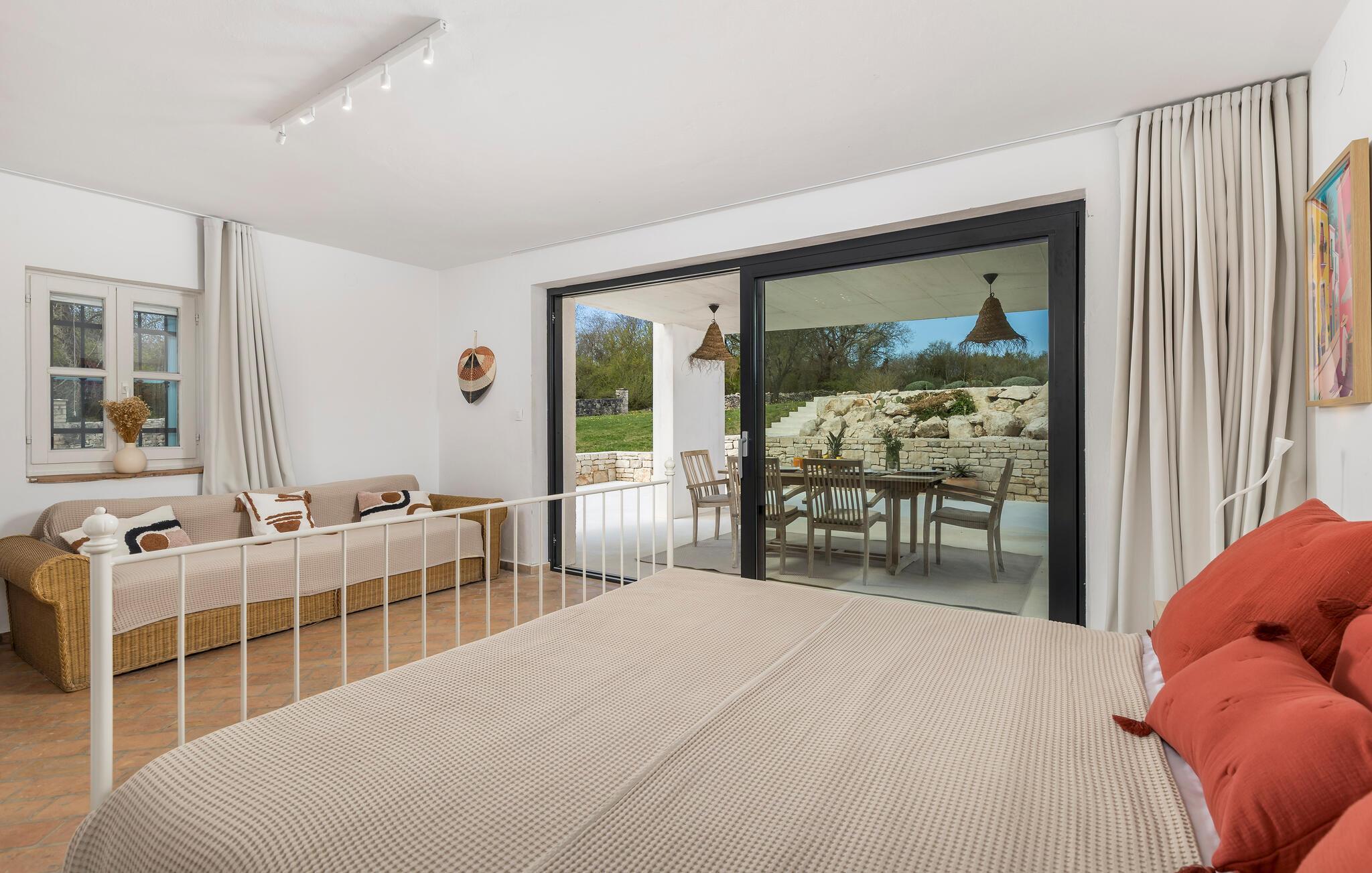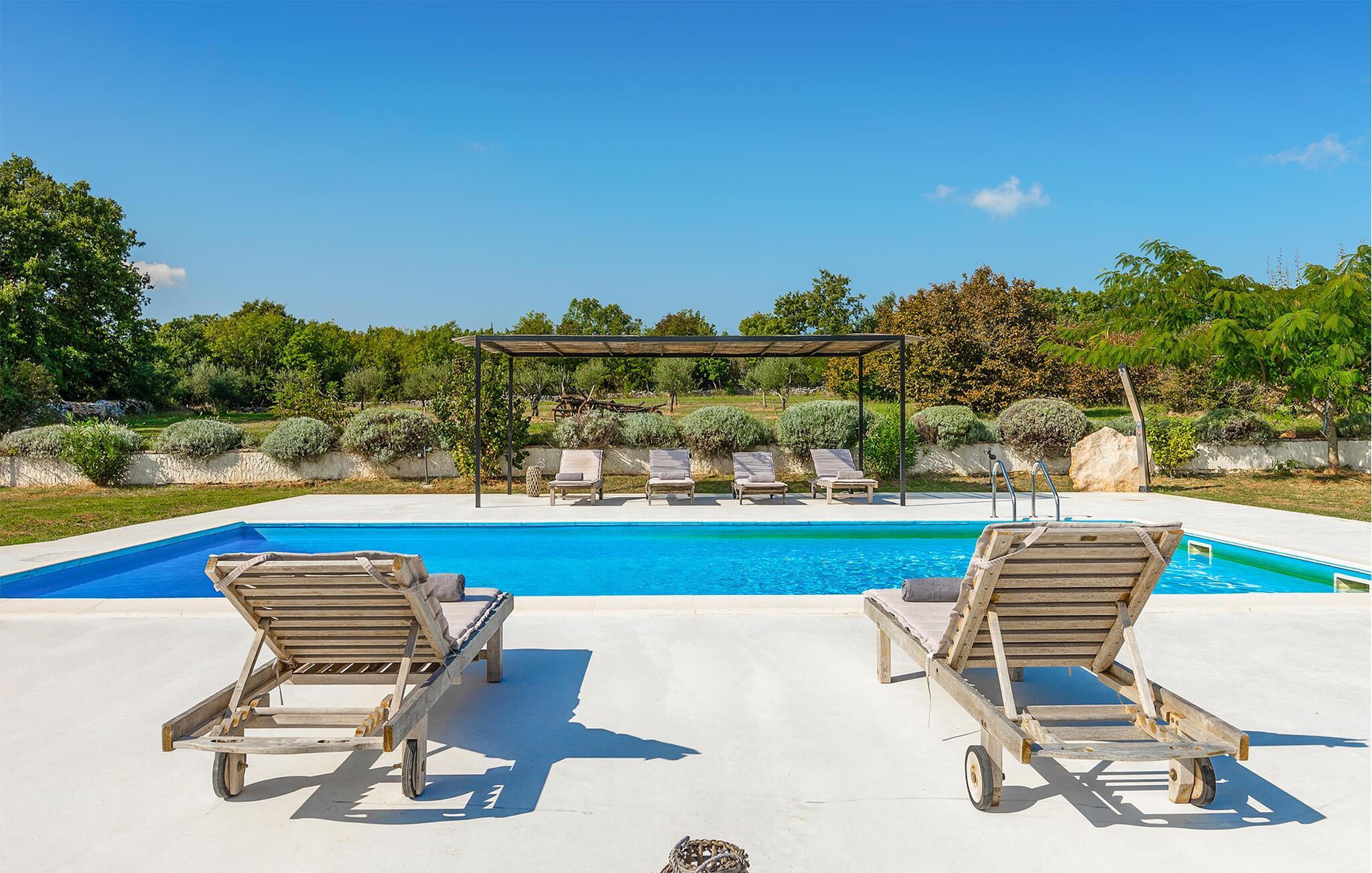 Die moderne überdachte Terrasse im ersten Stock bietet einen herrlichen Blick auf das Feld und seine prächtigen Olivenbäume. Außerdem haben das Schlafzimmer im Erdgeschoss und das obere Schlafzimmer mit der Terrasse sehr große Glaswände, die das Wohngefühl im Freien und natürliches Licht verstärken. In den Abendstunden ist es schön, die wunderschön beleuchtete Umgebung unter dem magischen Sternenhimmel zu genießen. Mit der Villa Natura sind Sie mitten in der Natur, aber nicht zu weit von der nächsten größeren Stadt entfernt - die nächste Küstenstadt ist Porec - nur 20 Autominuten entfernt.
