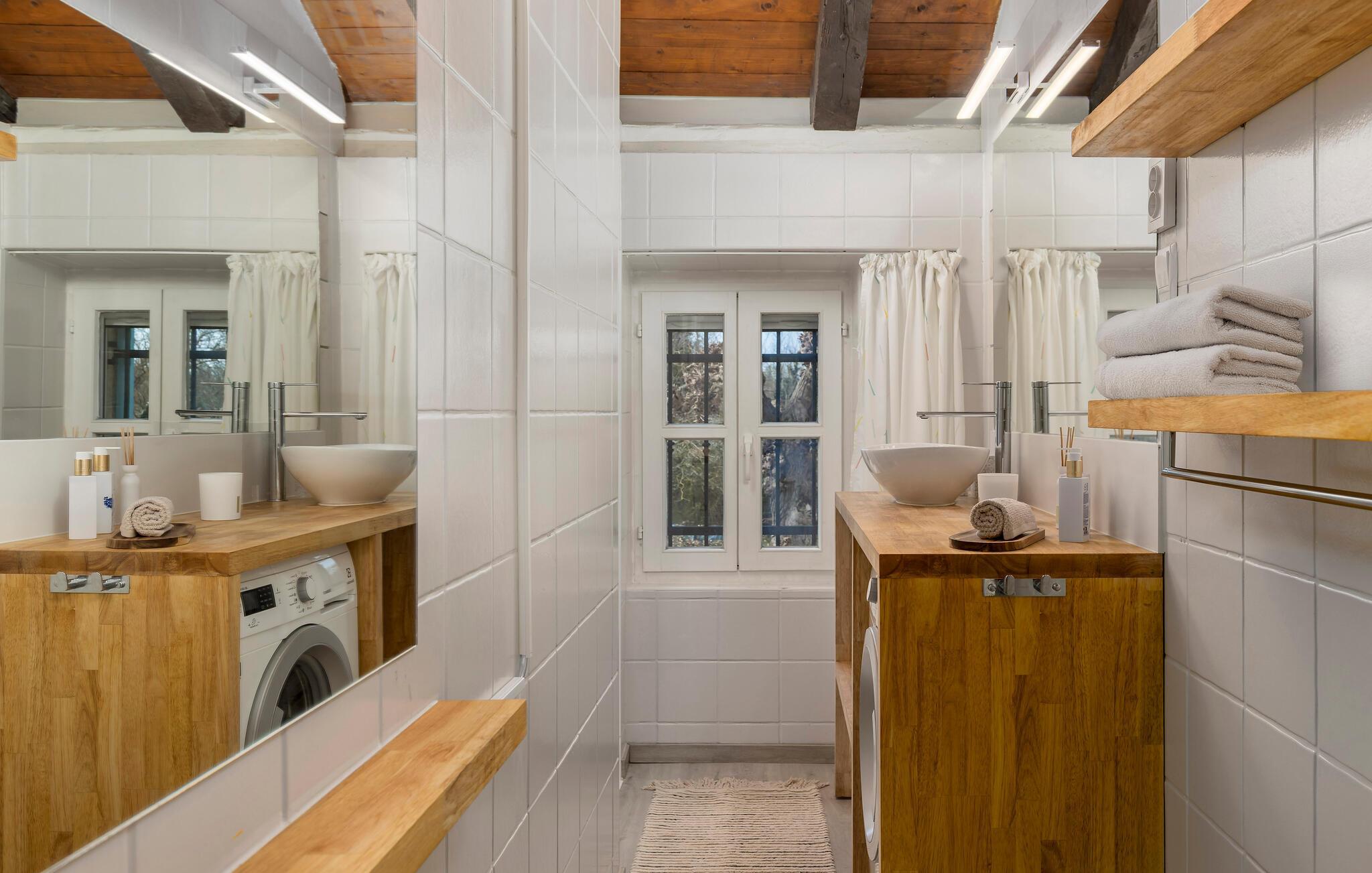 Holztreppen führen in die obere Etage, die weitere 2 Doppelzimmer hat. Eines der Schlafzimmer hat ein eigenes Badezimmer für Ihren Komfort. Auf dieser Etage befindet sich ein weiteres schönes Badezimmer mit Dusche sowie eine separate Toilette.