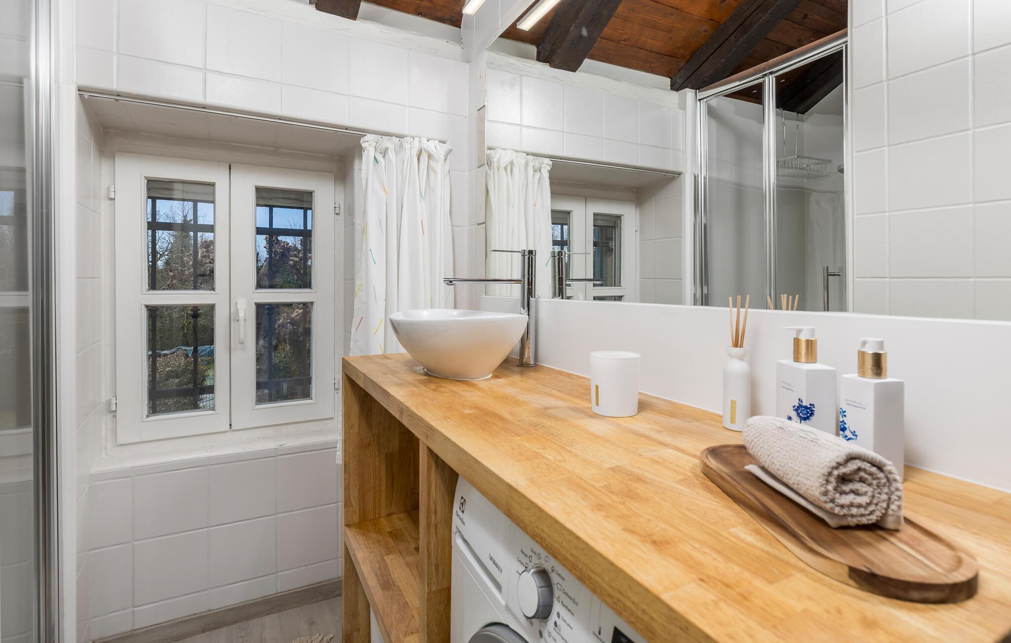 Dieses wunderschön restaurierte traditionelle alte Steinhaus, kombiniert mit modernen Stilverbesserungen, befindet sich auf einem großen Grundstück mit Wiesen und Wäldern ringsum. Die Lage ist absolut friedlich und entspannend, sodass Sie nur Vögel singen hören. Das einzige, was die entspannende grüne Atmosphäre durchbricht, ist der wunderschöne und große blaue Swimmingpool mit seinen 50 m². Liegen und Sonnenschirme stehen für Ihre kleine Auszeit am Pool bereit, während Ihre Kinder spielen und Spaß haben. Der weitläufige Bereich rund um den Pool ermöglicht es Ihnen, sich wohl zu fühlen und das Leben im Freien zu genießen. Die überdachte Terrasse verfügt über einen Esstisch, sodass Sie köstliche Mahlzeiten im Freien genießen können.
