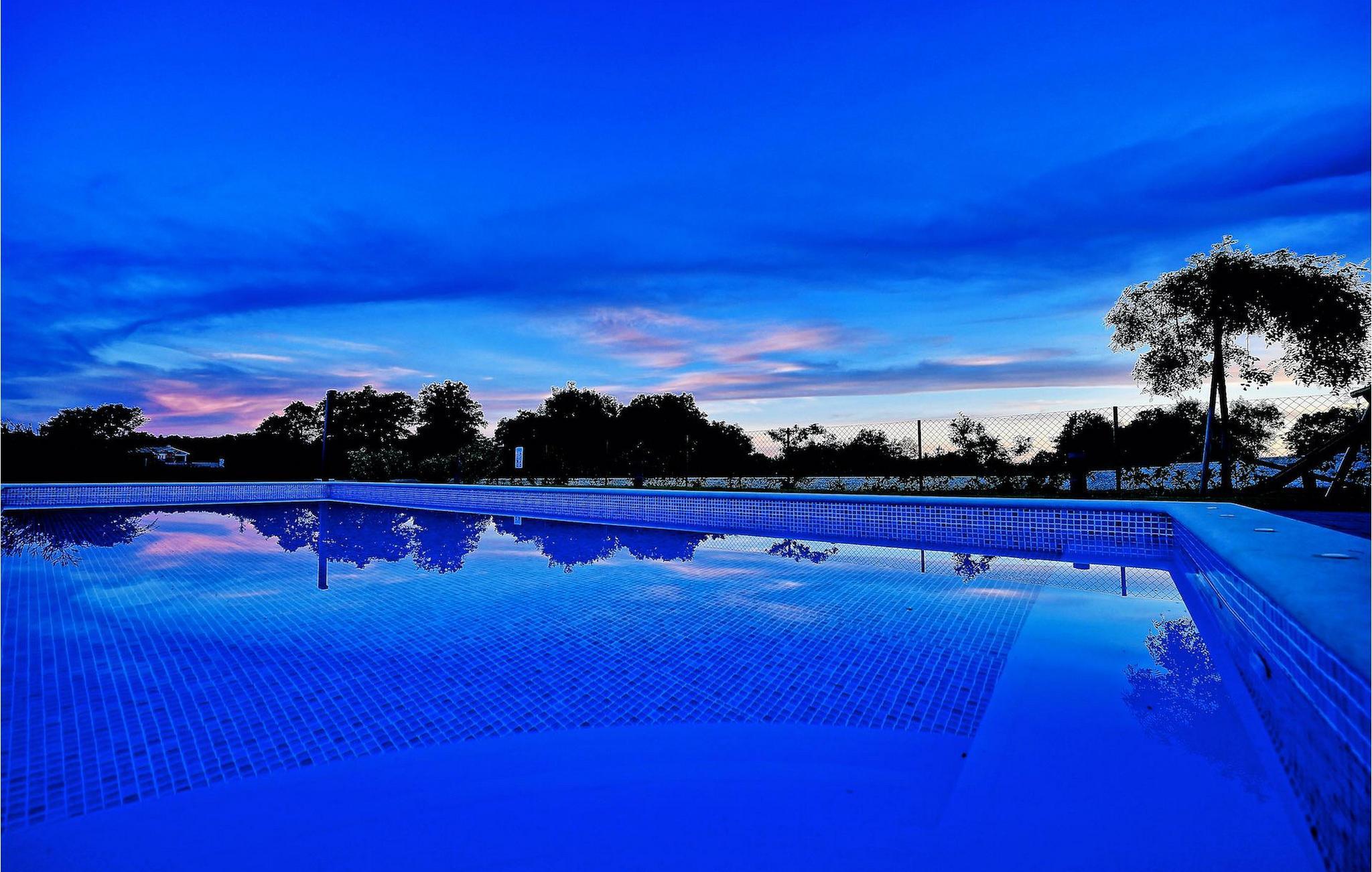Die Temperatur des beheizten Pools hängt von äußeren Faktoren, einschließlich der Wetterbedingungen ab und daher kann die Wassertemperatur nicht garantiert werden.