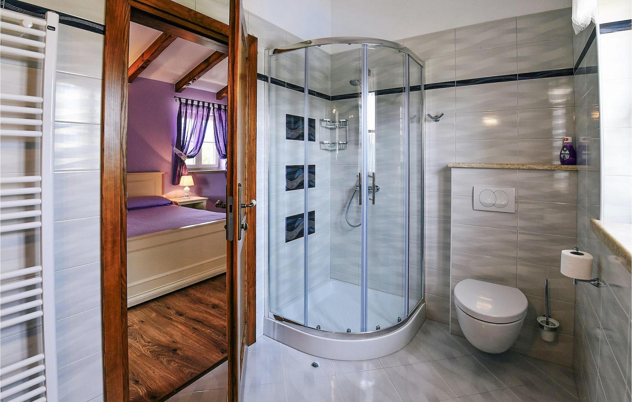 Die Villa liegt in einer ruhigen und privaten Lage etwas außerhalb und dennoch einen kurzer Fußweg vom Dorf Kringa. Kringa liegt im Zentrum von Istrien, fünf Kilometer südlich von Tinjan. Die Region ist bekannt für seine Küche und Weine und es gibt viele gute Restaurants in der Nähe. Das Innere Istriens mit Bergdörfern und schönen Landschaften ist ideal für Autofahrten, Radfahren und Wandern. Die Adriaküste und die bekannte touristische Stadt Porec, alle Strände Istriens, sind nur eine kurze Autofahrt entfernt. Lebensmittelladen, eine Bar und eine ausgezeichnete Taverne sind in Fussnähe. Sie können auch Lebensmittel direkt von lokalen Händlern kaufen.