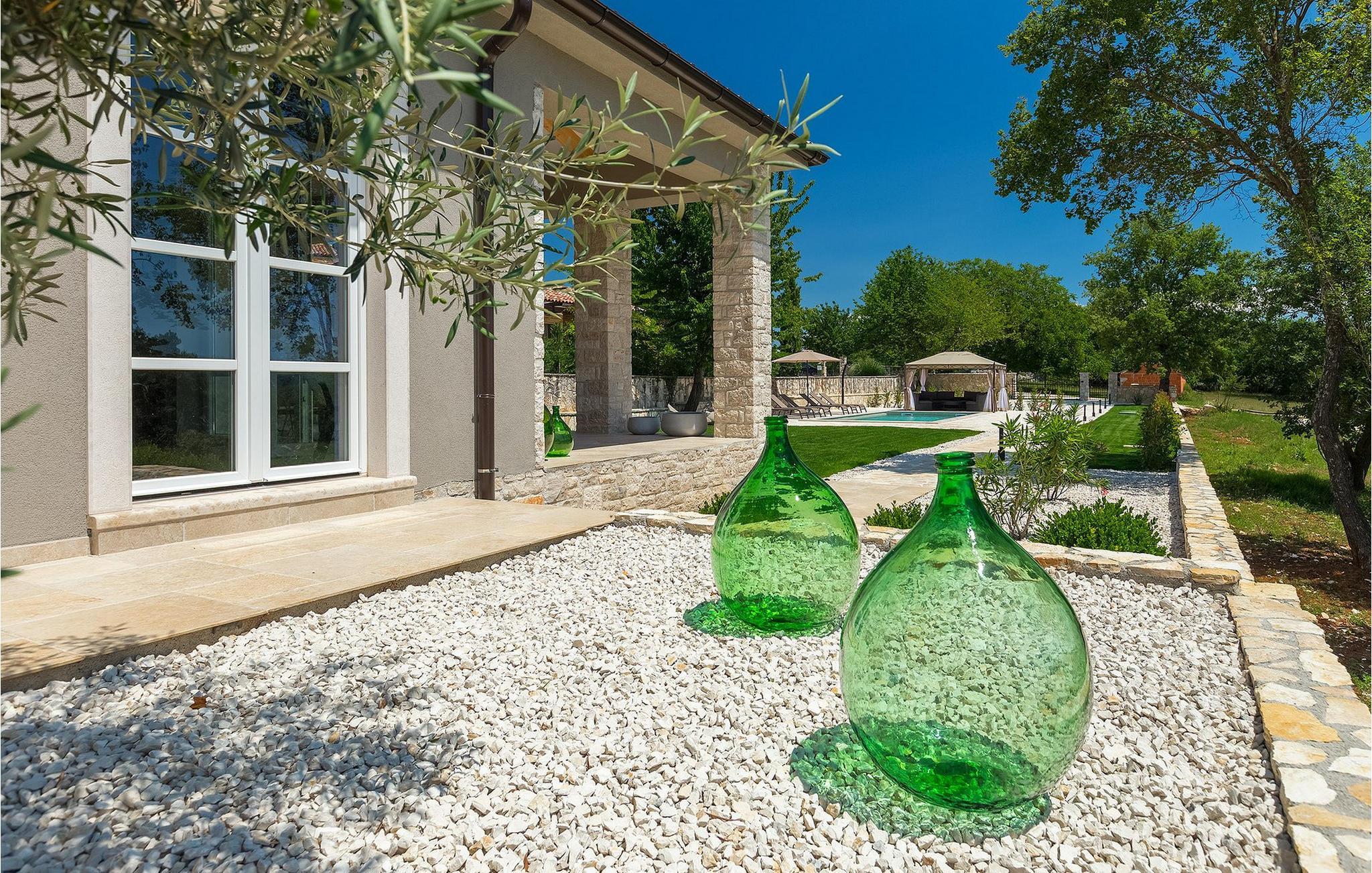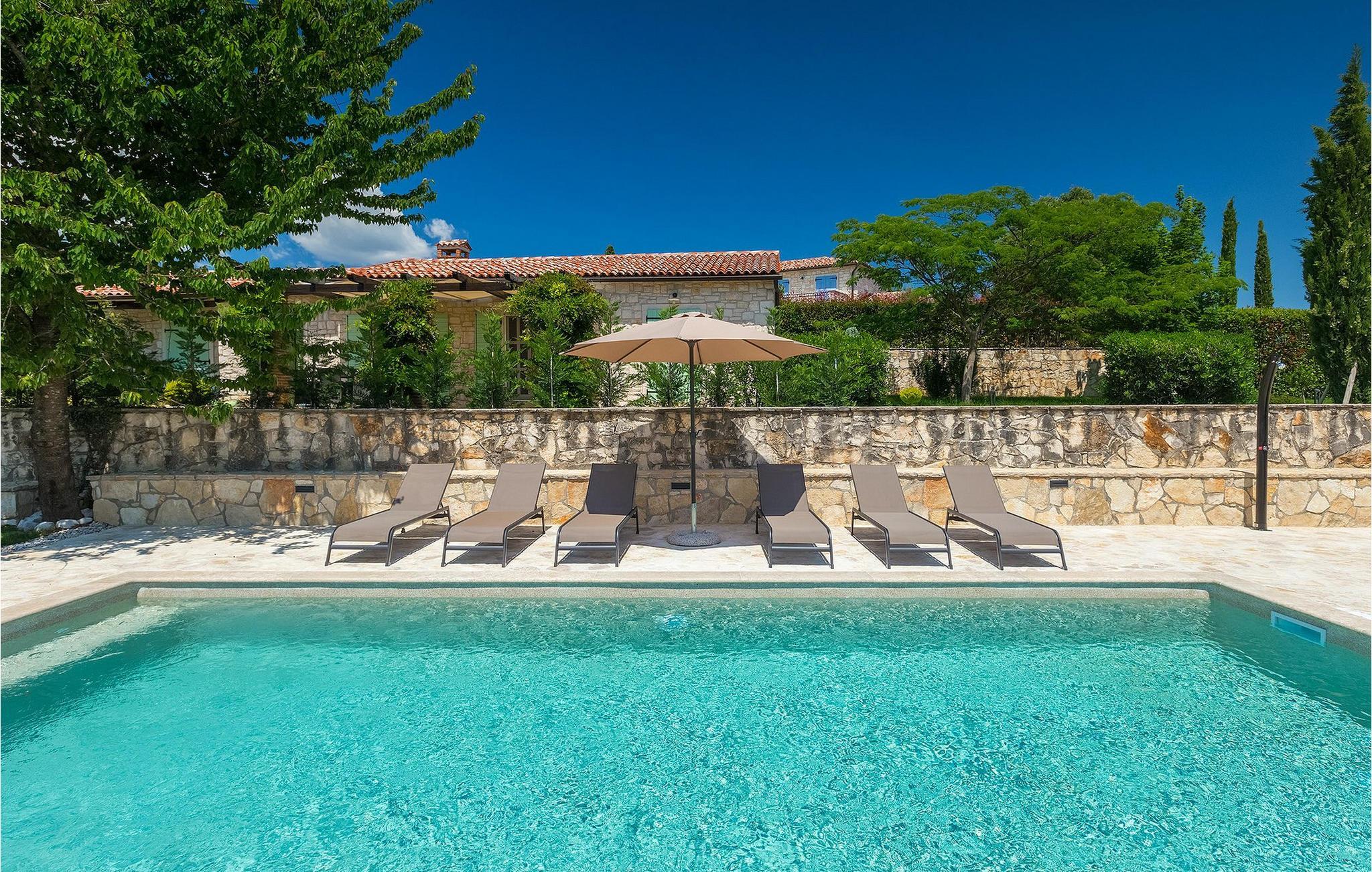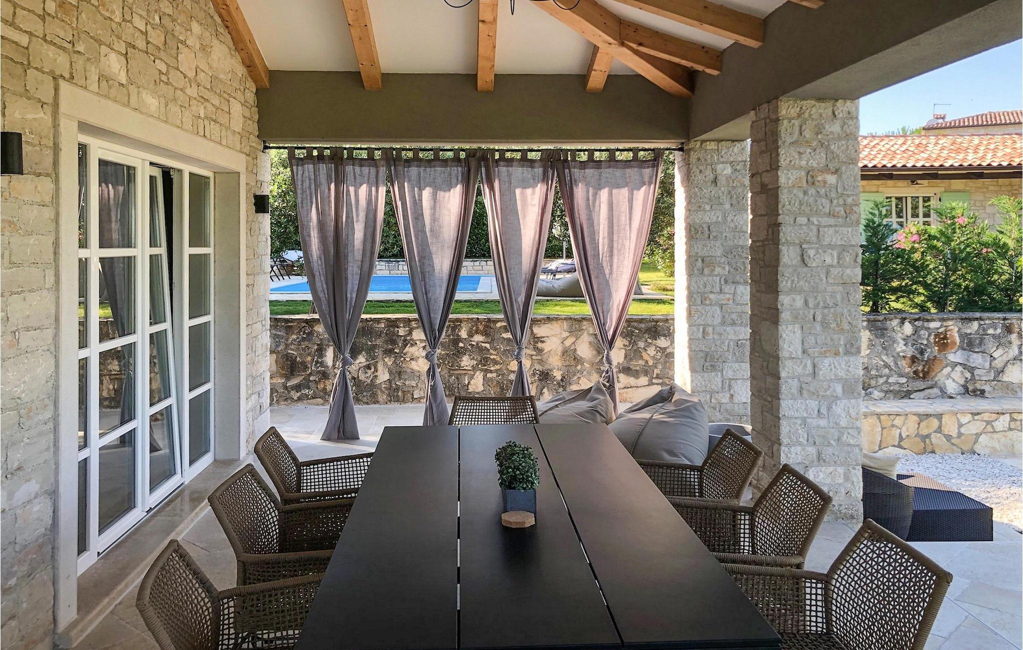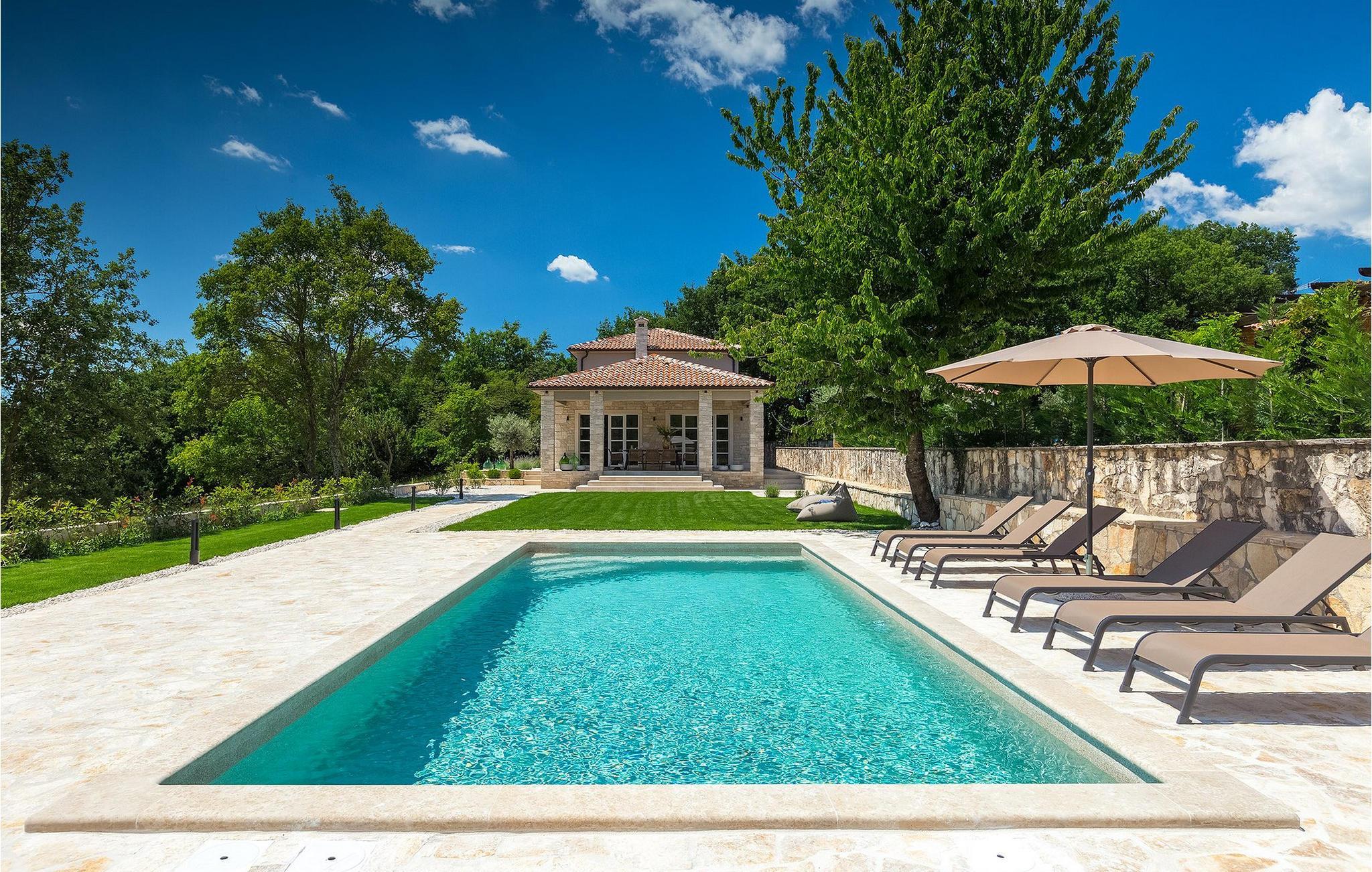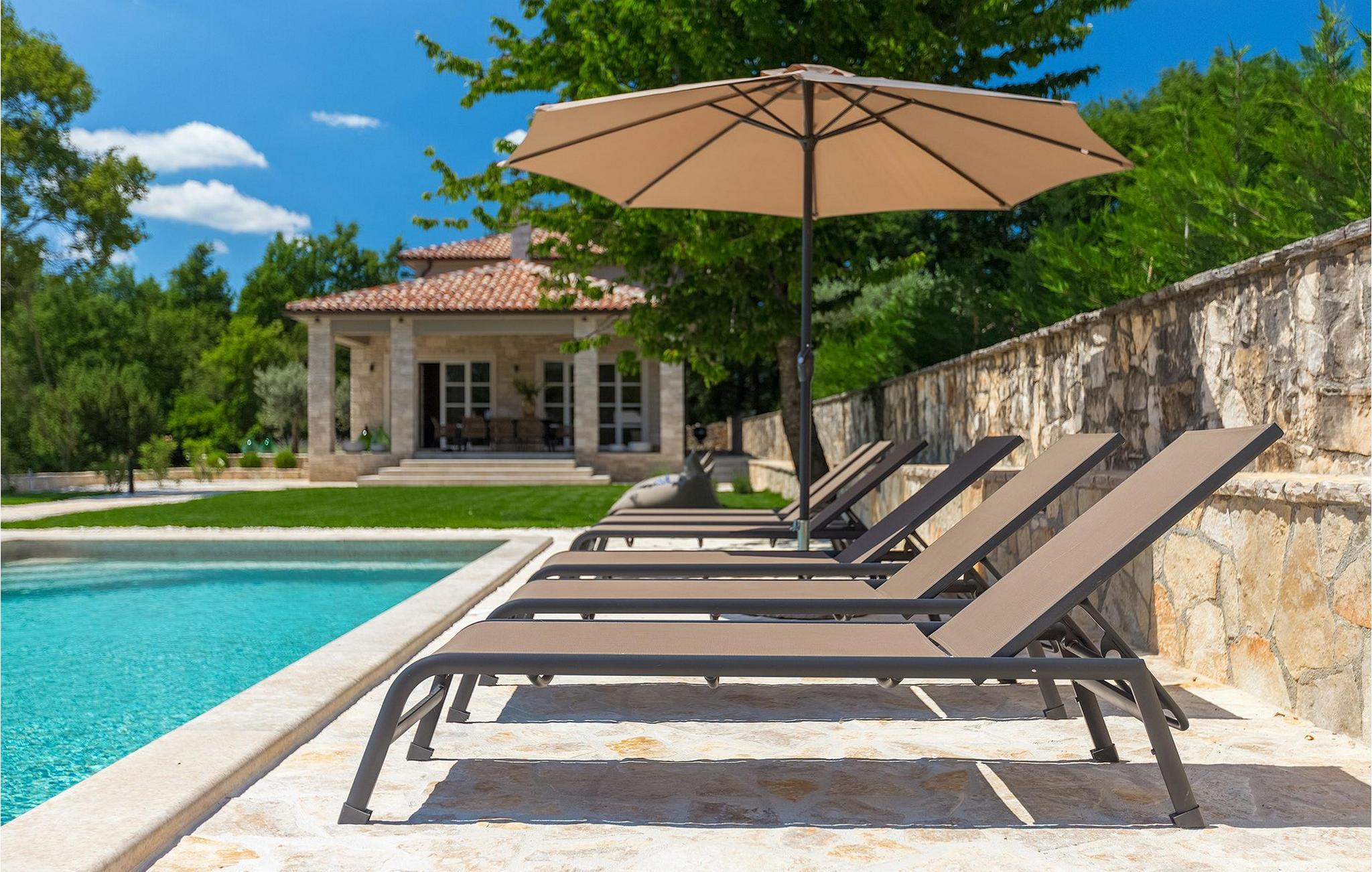 Villa Faturi ist eine moderne Steinvilla mit privatem Pool, wunderschönem Panoramablick und schön gepflegtem Garten. Das Interieur der Villa ist modern und mit Liebe zum Detail gestaltet. Im Erdgeschoss befinden sich ein geräumiges Wohnzimmer, ein Esszimmer und eine Küche. Außerdem gibt es zwei Schlafzimmer mit Doppelbetten und zwei Badezimmer. Im ersten Stock sind zwei Schlafzimmer und ein Badezimmer sowie ein Balkon mit Blick auf die Umgebung. Im Garten der Villa befindet sich eine Terrasse mit Blick auf Pool und Garten. Hier können Sie im Freien eine köstliche Mahlzeit genießen. Der große private Pool dient zur Erfrischung an heißen Sommertagen. Die Liegestühle run dum den Pool herum laden zur Entspannung ein. Gartenpflege findet jeden Donnerstag statt.Die Villa befindet sich in einer ruhigen Umgebung in der Nähe des Dorfes Kringa. Kringa liegt in Zentralistrien und ist nur fünf Kilometer von Tinjan entfernt, dem zweitgrößten Ort in der Gemeinde Tinjan. Auf dem Gebiet des Dorfes Tinjan befand sich einst in der Eisenzeit eine Siedlung, die sich später zu einer römischen Festung entwickelte. In der hügeligen Umgebung gibt es weitere Ortschaften. Die wunderschöne Landschaft dieser Region eignet sich hervorragend zum Reiten, Radfahren und Spazierengehen. In der Nähe befinden sich das schöne Porec und viele bezaubernde istrische Strände. Außerdem gibt es zahlreiche historische Stätten und andere Sehenswürdigkeiten zu erkunden. Aus Porec aus können Sie dem Boot einen Ausflug nach Venedig machen. Nur 45 Minuten von der Villa entfernt liegen Pula, die größte Stadt Istriens, und der Nacional Park Brijuni. Die Lage der Villa Faturi ist ideal für einen erholsamen Urlaub in Zentralistrien.