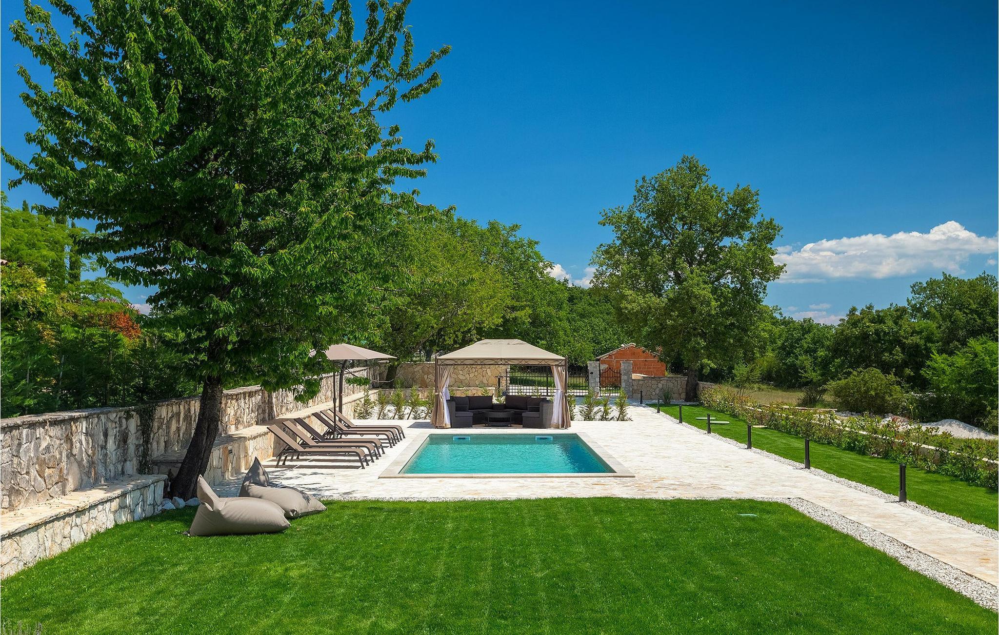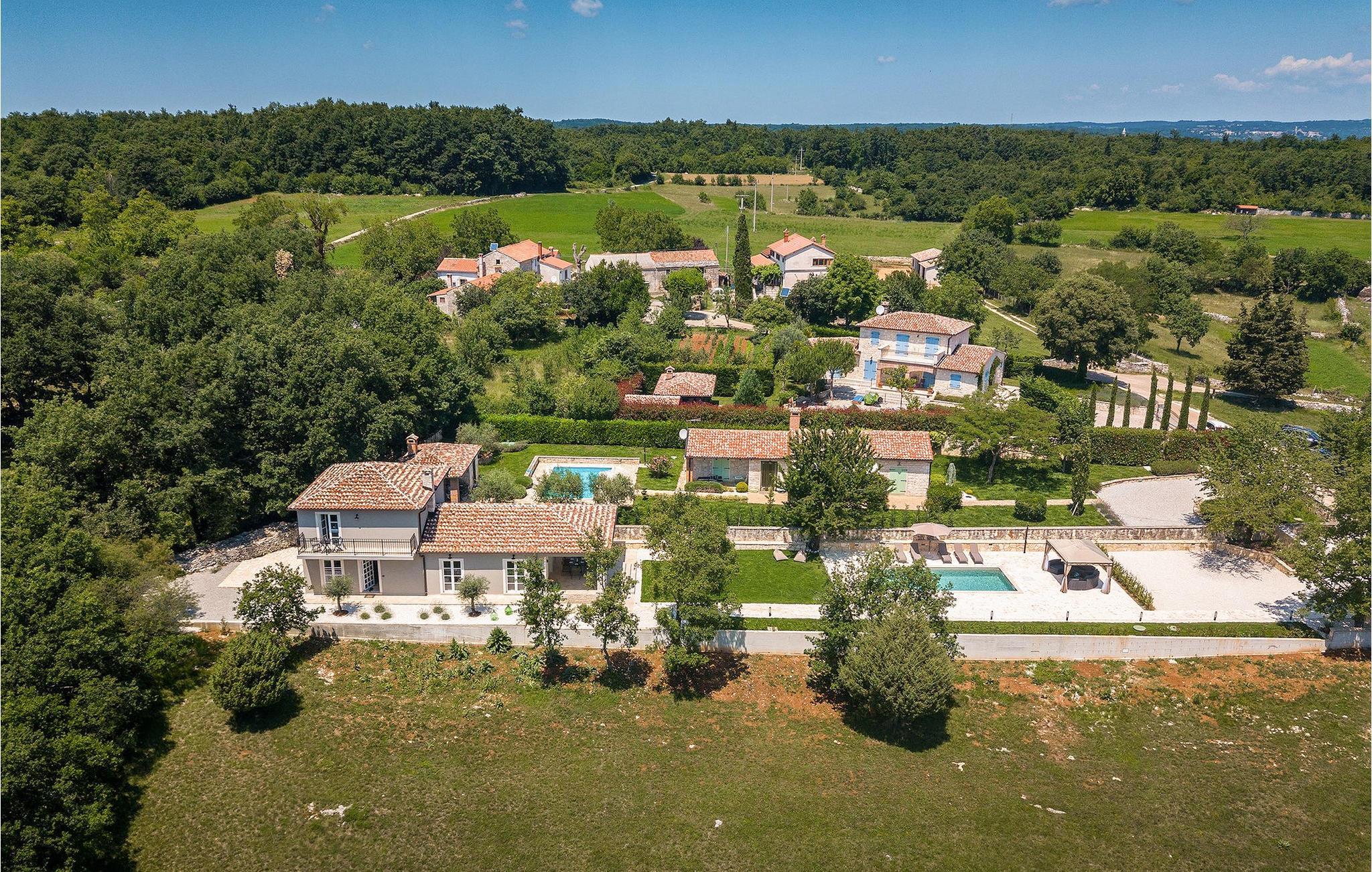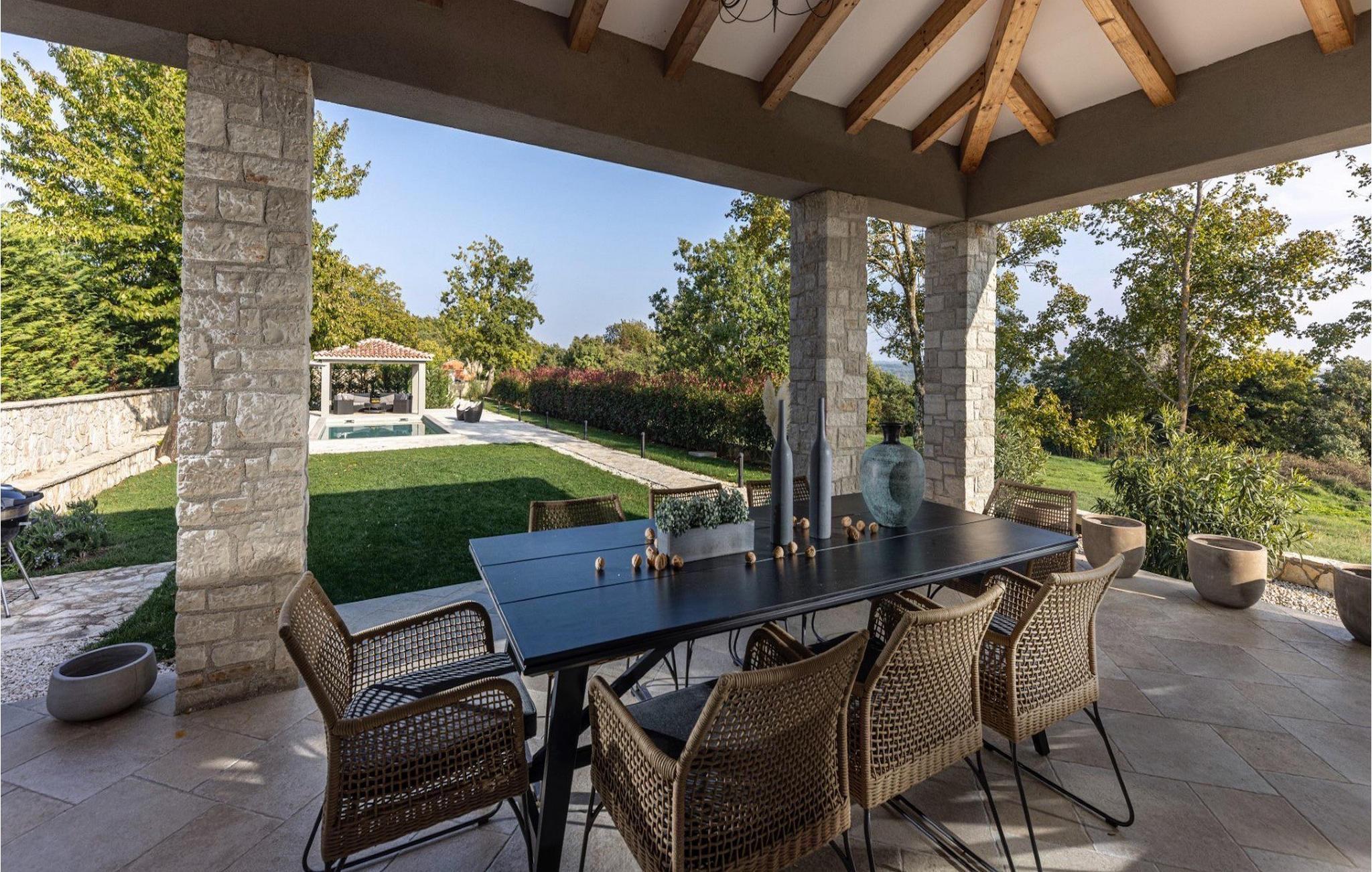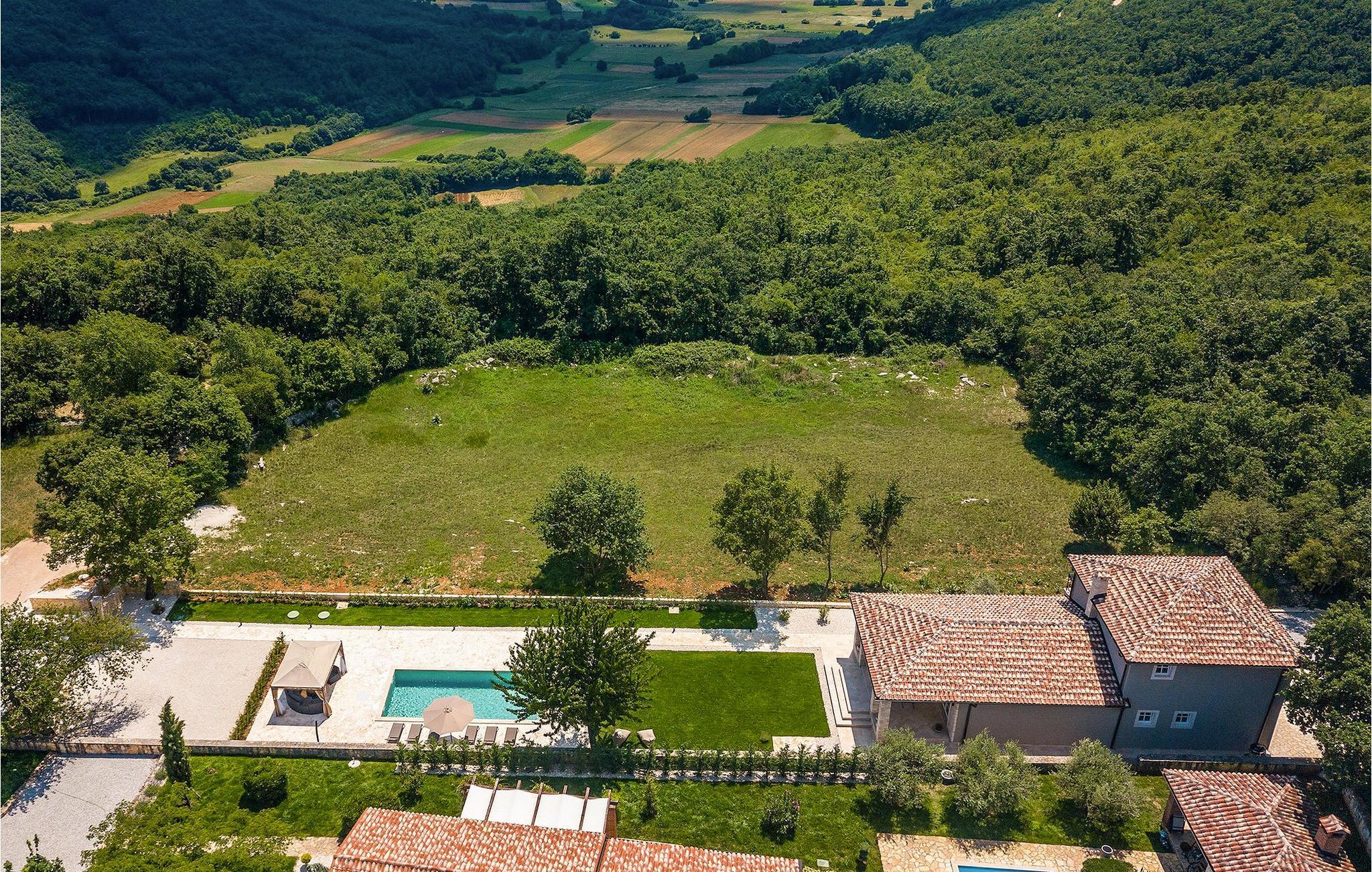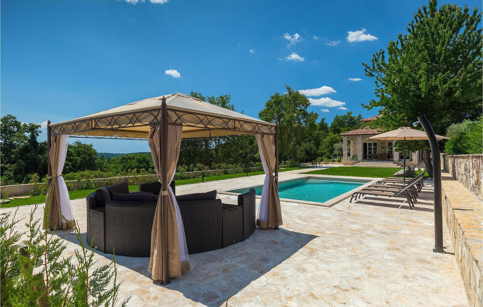 Villa Faturi ist eine moderne Steinvilla mit privatem Pool, wunderschönem Panoramablick und schön gepflegtem Garten. Das Interieur der Villa ist modern und mit Liebe zum Detail gestaltet. Im Erdgeschoss befinden sich ein geräumiges Wohnzimmer, ein Esszimmer und eine Küche. Außerdem gibt es zwei Schlafzimmer mit Doppelbetten und zwei Badezimmer. Im ersten Stock sind zwei Schlafzimmer und ein Badezimmer sowie ein Balkon mit Blick auf die Umgebung. Im Garten der Villa befindet sich eine Terrasse mit Blick auf Pool und Garten. Hier können Sie im Freien eine köstliche Mahlzeit genießen. Der große private Pool dient zur Erfrischung an heißen Sommertagen. Die Liegestühle run dum den Pool herum laden zur Entspannung ein. Gartenpflege findet jeden Donnerstag statt.Die Villa befindet sich in einer ruhigen Umgebung in der Nähe des Dorfes Kringa. Kringa liegt in Zentralistrien und ist nur fünf Kilometer von Tinjan entfernt, dem zweitgrößten Ort in der Gemeinde Tinjan. Auf dem Gebiet des Dorfes Tinjan befand sich einst in der Eisenzeit eine Siedlung, die sich später zu einer römischen Festung entwickelte. In der hügeligen Umgebung gibt es weitere Ortschaften. Die wunderschöne Landschaft dieser Region eignet sich hervorragend zum Reiten, Radfahren und Spazierengehen. In der Nähe befinden sich das schöne Porec und viele bezaubernde istrische Strände. Außerdem gibt es zahlreiche historische Stätten und andere Sehenswürdigkeiten zu erkunden. Aus Porec aus können Sie dem Boot einen Ausflug nach Venedig machen. Nur 45 Minuten von der Villa entfernt liegen Pula, die größte Stadt Istriens, und der Nacional Park Brijuni. Die Lage der Villa Faturi ist ideal für einen erholsamen Urlaub in Zentralistrien.
