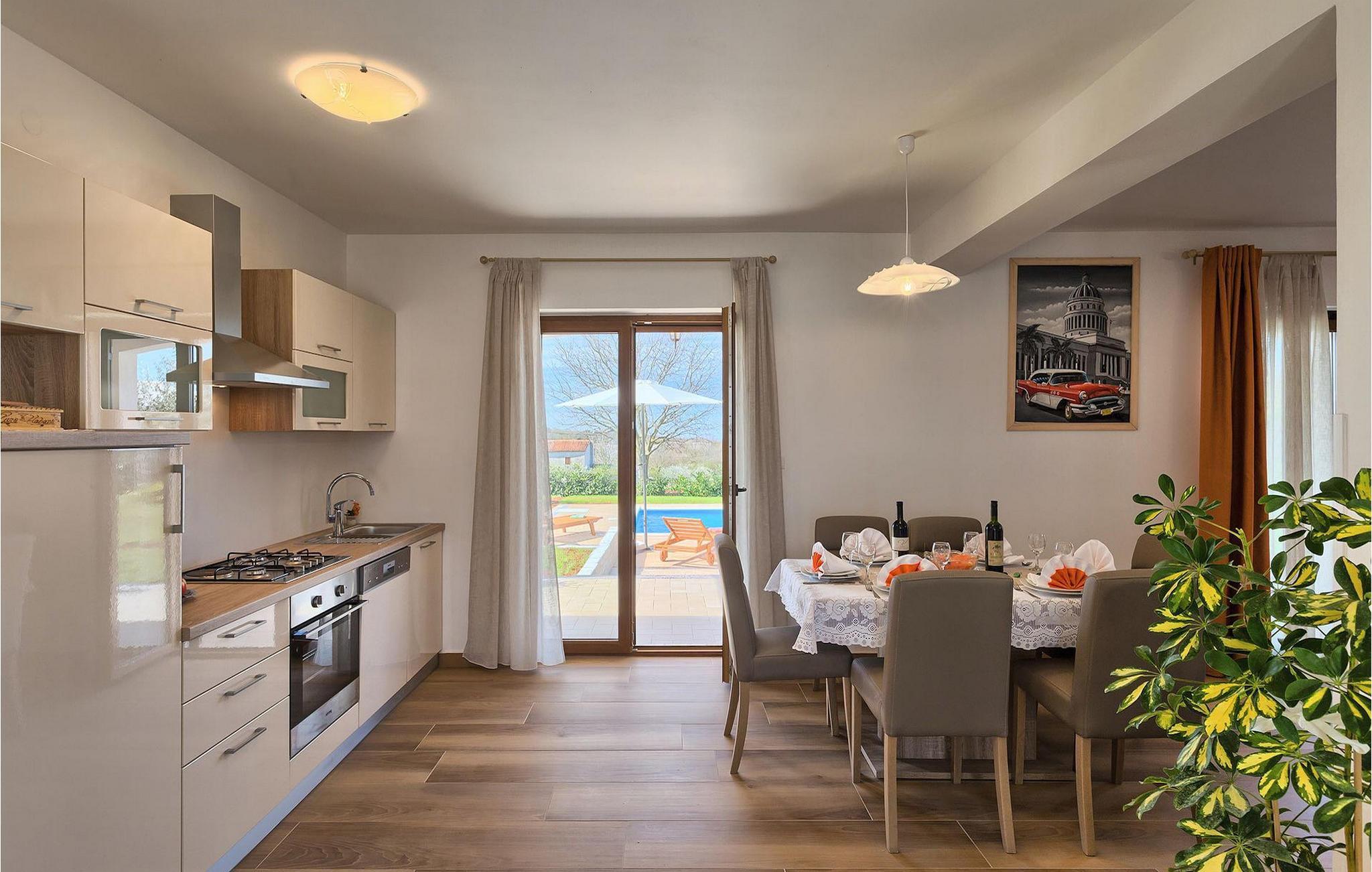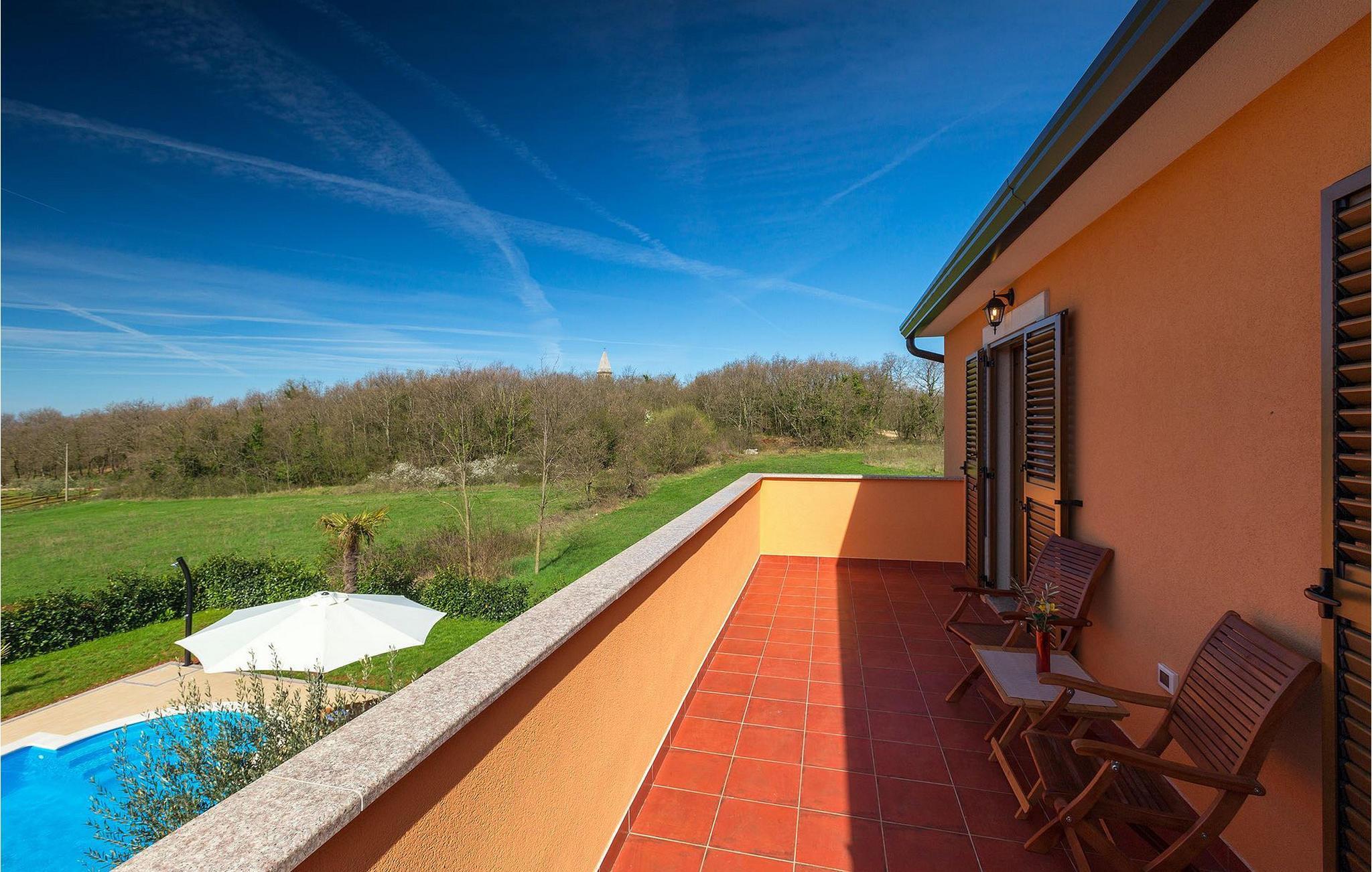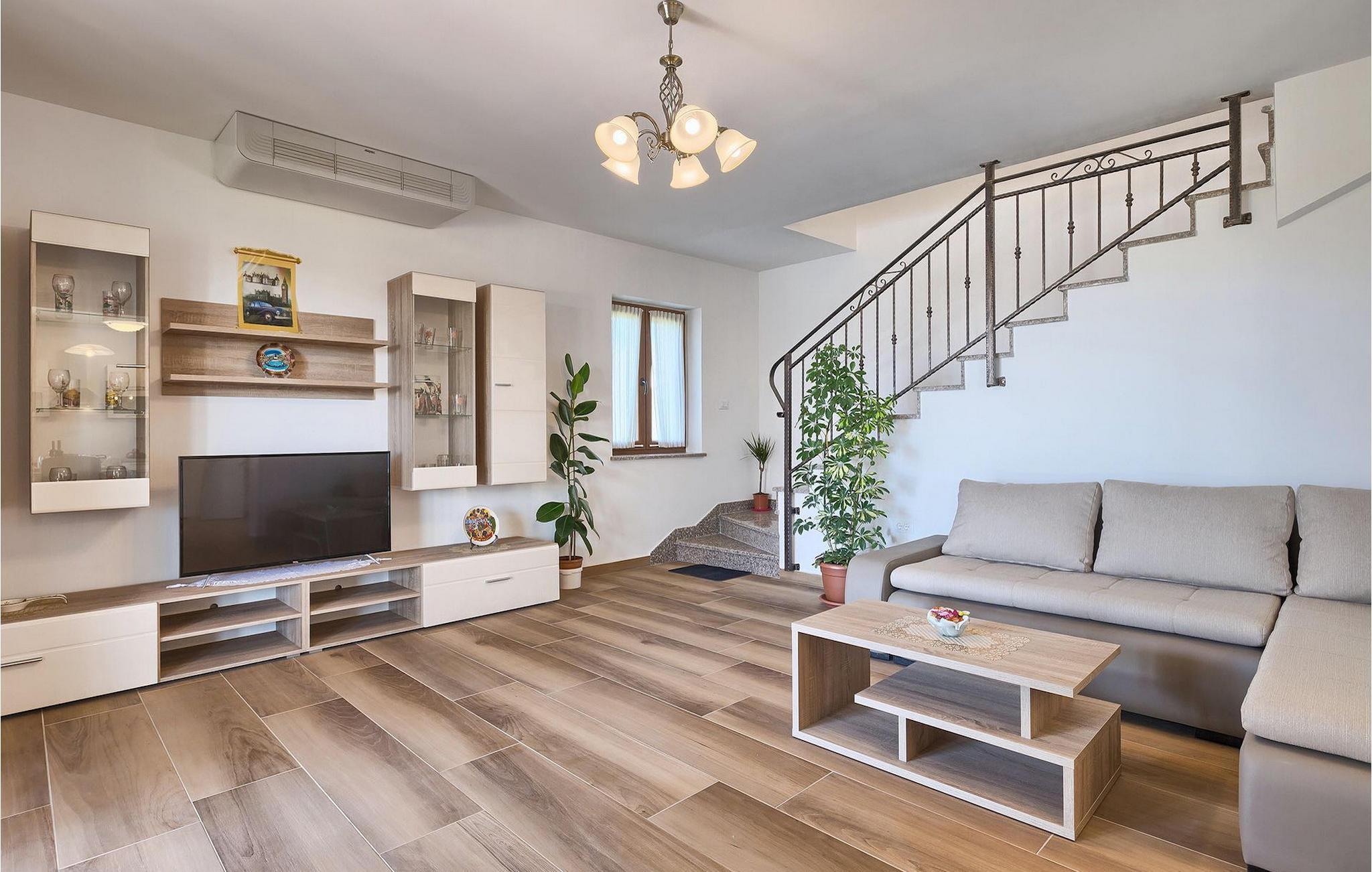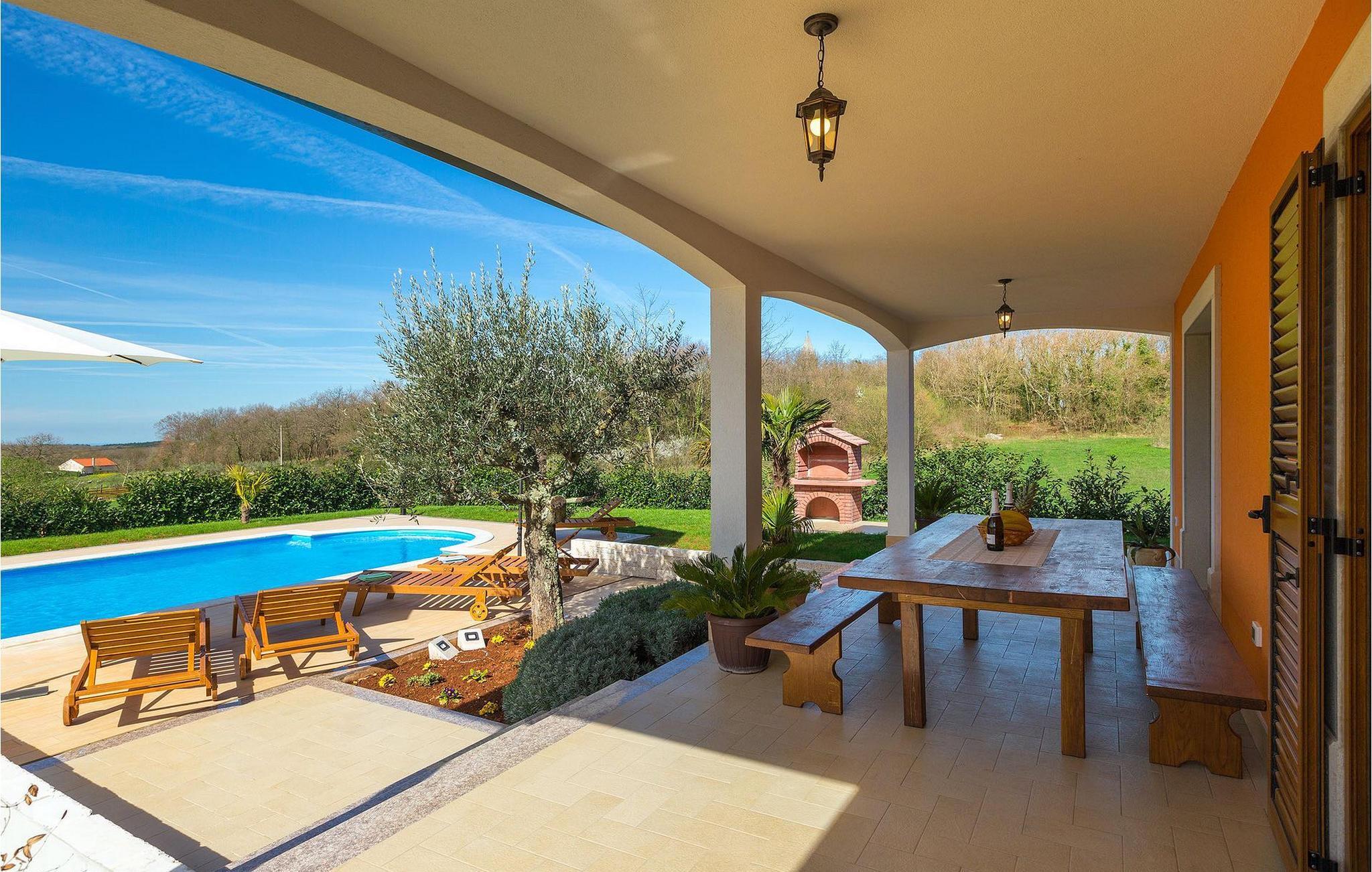 Diese schöne Familienvilla befindet sich in einem kleinen istrischen Dorf und ist ideal für 6 Personen, da sie 3 Schlafzimmer hat, aber dank dem Sofabett im Wohnzimmer kann die Villa bis zu 8 Personen beherbergen. Villa Montreo, auf einem 600 m2 großen Grundstück gelegen, ist die perfekte Familienunterkunft. Zur Verfügung steht Ihnen der privater Pool mit Liegestühlen, ein Holzkohlegrill, der geräumige Garten mit Schaukeln für Kinder und Tischfußball und Darts im unteren Erdgeschoss für noch mehr Spaß in Ihrem erholsamen Urlaub. Außer der hellen Küche mit Essbereich, die mit allem was Sie während Ihres Aufenthaltes benötigen können, ausgestattet ist, befindet sich im Erdgeschoss das Wohnzimmer, eine separate Toilette und ein Schlafzimmer mit eigenem Badezimmer. Das Obergeschoss besteht aus den 2 weiteren Schlafzimmern und Badezimmern. Alle sind klimatisiert und verfügen über ein Doppelbett. In einem der Zimmer im Obergeschoss kann das Bett bei Bedarf in zwei Einzelbetten geteilt werden. Die Zimmer im Obergeschoss haben Zugang zum Balkon, wo Sie den Blick auf die ruhige istrische Umgebung genießen können.Die Villa befindet sich in einem kleinen Dorf in Zentralistrien. Die Lage ist perfekt für diejenigen, die einen erholsamen Urlaub verbringen möchten. Alle Sehenswürdigkeiten in Istrien und an der Adriaküste sind dennoch im Rahmen einer kurzen Autofahrt erreichbar. Sie können frische Produkte direkt von den Bauern im Dorf kaufen. Das typisches istrisches Städtchen Tinjan ist weniger als 5 km von der Villa entfernt. Mit ihrer atemberaubender Landschaft, diese Region ist ideal für diejenigen, die gerne spazieren und sich mit Radsporten beschäftigen. Was die Gastronomie angeht, ist Zentralistrien für natives Olivenöl, prosciutto und Malvasia bekannt, die im ganzen Land beliebt sind. Falls Sie die Strände besuchen möchten, können Sie sehr einfach die Westküste Istriens erreichen, zum Beispiel in der Gegend von der historischen Stadt Porec. Ein Tagesausflug in den Brijuni Nationalpark, Besuch der Lim Bucht oder der Stadt Porec ist immer eine gute Idee.