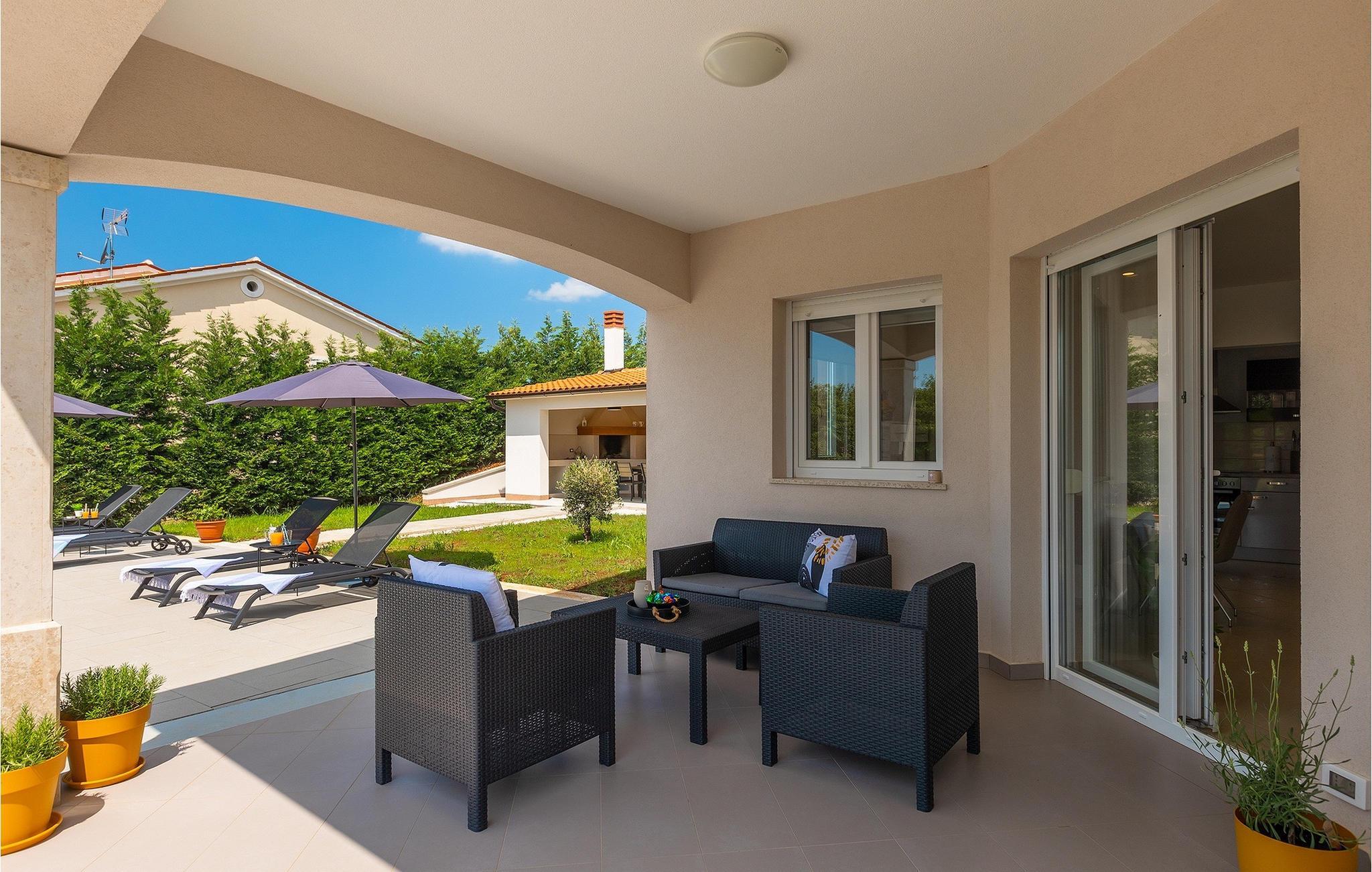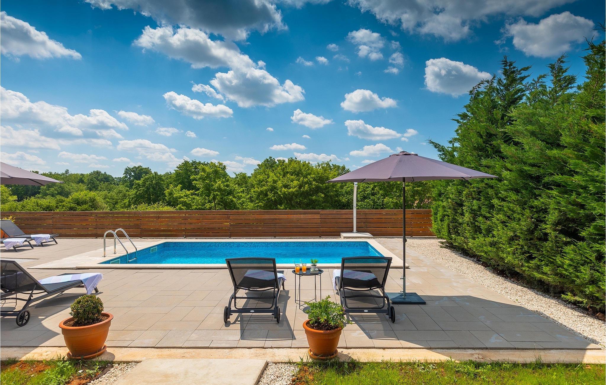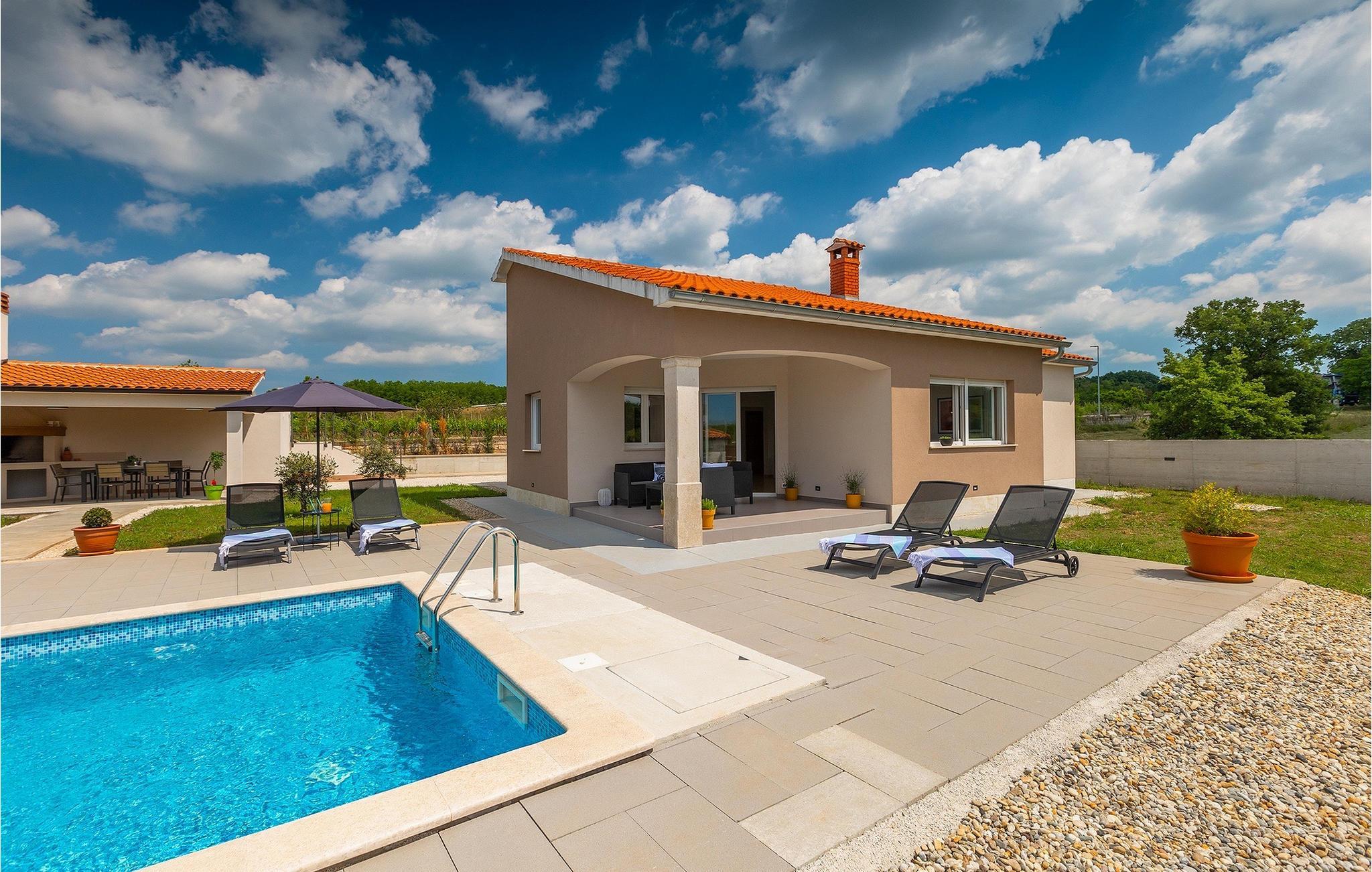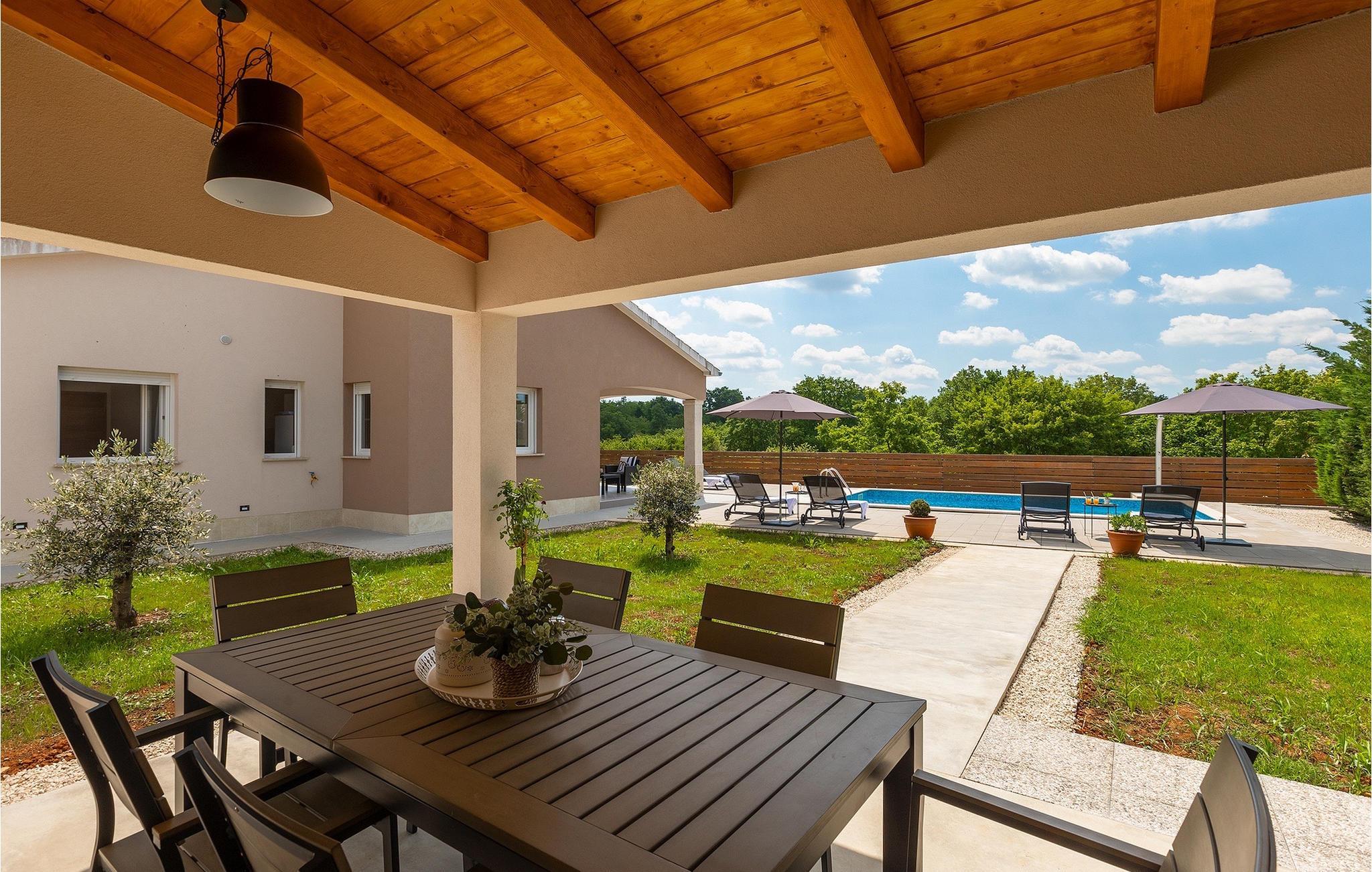 Träumen Sie von einem erholsamen Familienurlaub? Dann ist die Villa Rita die perfekte Wahl für Sie! Sie befindet sich in einer ruhigen und idyllischen Lage im Herzen Zentral Istriens. Die Villa bietet Platz für insgesamt sechs Gäste in drei Schlafzimmern. Im Außenbereich befindet sich ein privater Pool, in dem Sie sich an warmen Sommertagen erfrischen oder die Sommerbrise genießen können, während Sie auf einer der Sonnenliegen entspannen. Nur ein paar Schritte entfernt befindet sich ein schattiger Essbereich mit Sommerküche und einem Holzkohlegrill - der perfekte Ort um sich mit der Familie zu versammeln. Nutzen Sie den Grill um Ihre Grillkünste unter Beweis zu stellen und Ihre Liebsten zu verwöhnen. Betreten Sie von der Terrasse aus das Innere der Villa, so bietet sich Ihnen ein offener, geschmackvoll eingerichteter Wohn- und Essbereich welcher mit einer komplett ausgestatteten Küche verbunden. Ebenfalls befinden sich hier drei komfortabele Schlafzimmer sowie zwei Badezimmer. Buchen Sie Villa Rita und verbringen Sie einen unvergesslichen Urlaub im sonnigen Istrien.Villa Rita befindet sich nahe dem mittelalterlichen Dorf Tinjan im Herzen Istriens. Die wunderschöner Lage bietet den Gästen die Möglichkeit, die umliegenden kleineren Städte zu erkunden und ihre Restaurants mit berühmten istrischen Spezialitäten zu besuchen. Wenn Sie während Ihres Urlaubs aktiv bleiben möchten, ist dies der ideale Ort für Sie! Die Umgebung bietet zahlreiche Freizeitmöglichkeiten: Fahrrad fahren, reiten, joggen, wandern und vieles mehr. Alle Naturliebhaber können die Zipline in der Nähe von Pazin ausprobieren. Die Adriaküste mit ihren Stränden und Urlaubsorten wie Porec, Rovinj und Novigrad ist nur eine kurze Autofahrt von der Villa entfernt. Wir empfehlen Ihnen die historische Stadt Pula zu besuchen. Die Stadt ist bekannt für das berühmte Amphitheater aus dem 1. Jahrhundert. Es befindet sich im Stadtzentrum und ist ein Wahrzeichen, das Sie unbedingt erkundet sollten. Für diejenigen, die Geschichte lieben, empfehlen wir eine geführte Besichtigungstour, um viele interessante Dinge über dieses imposante Gebäude zu erfahren.