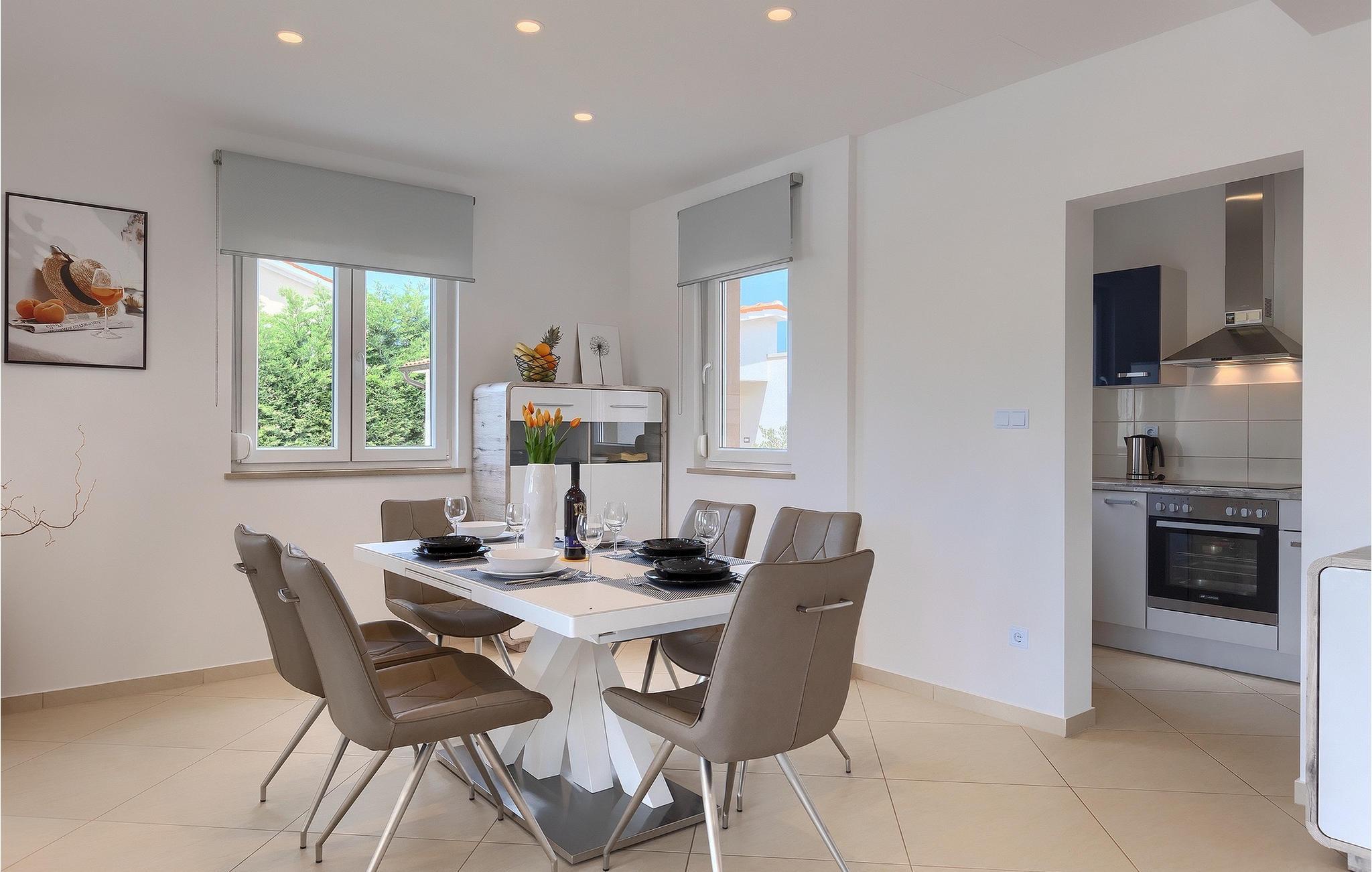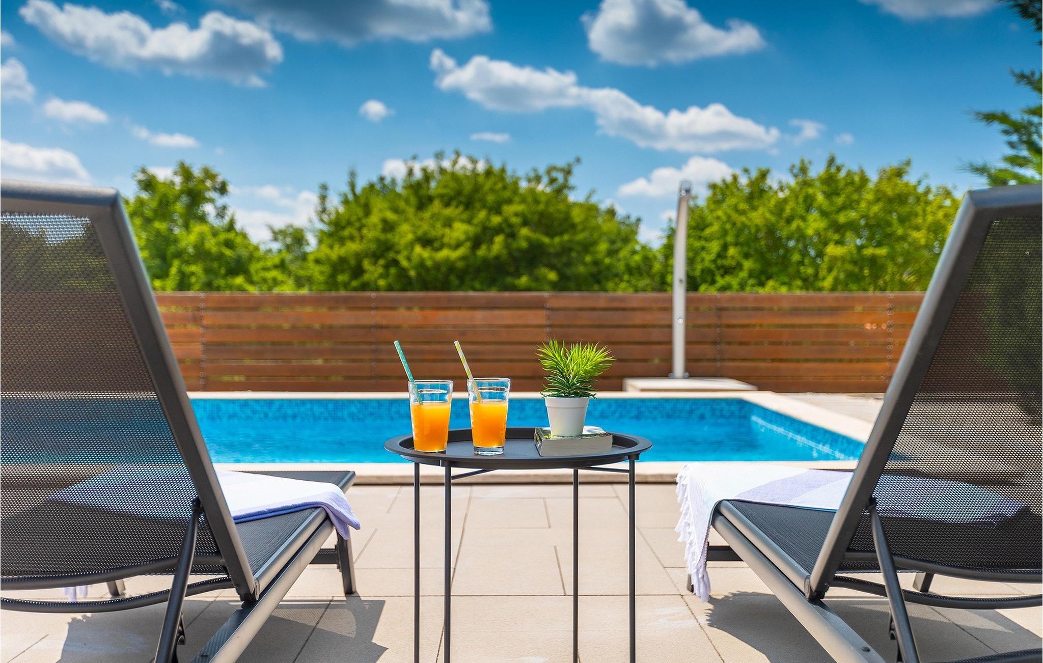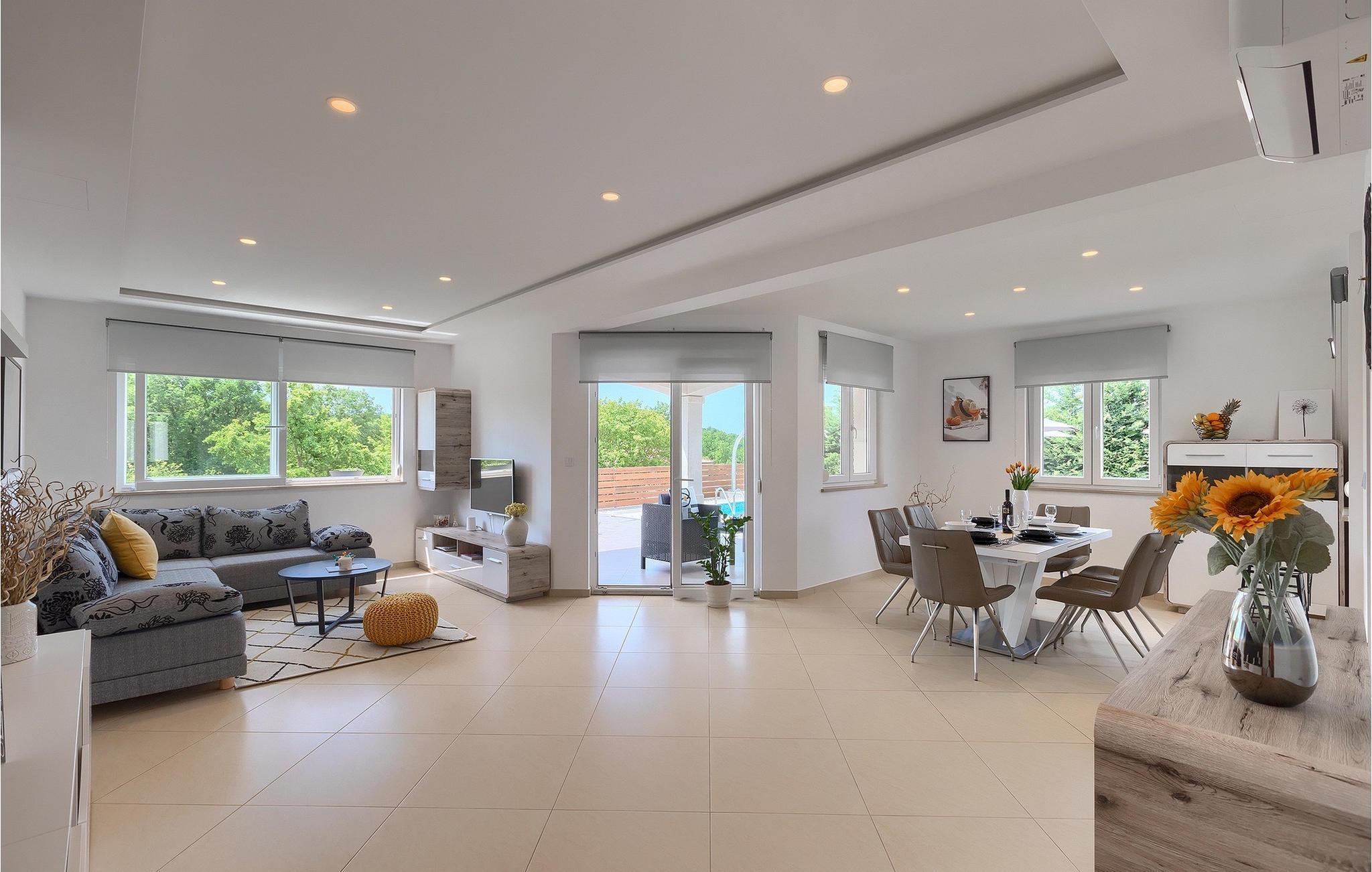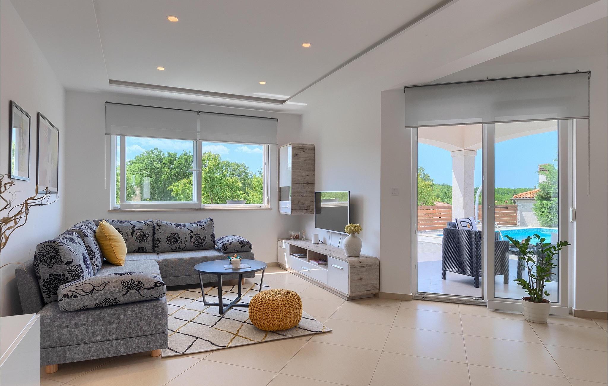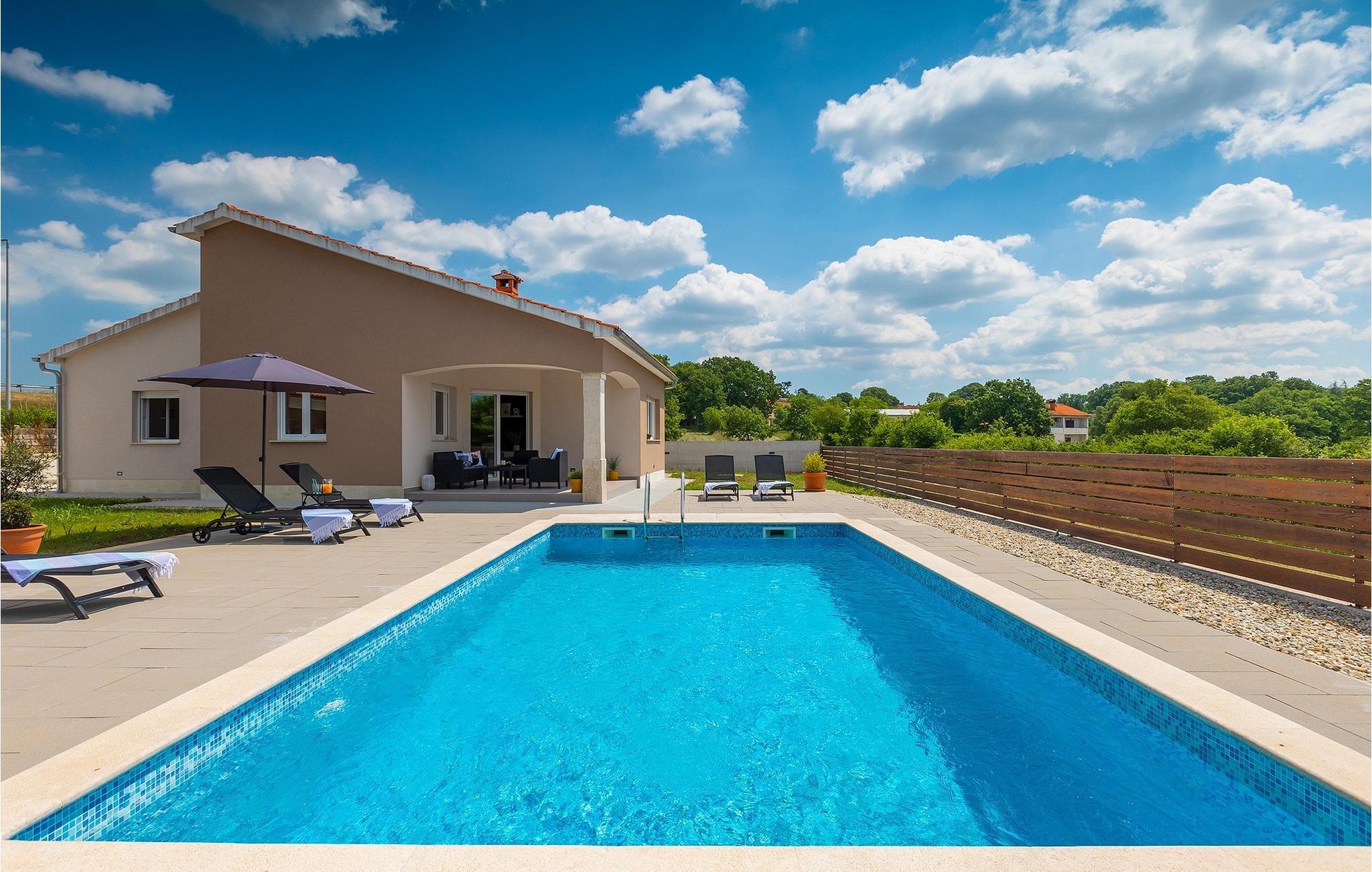 Träumen Sie von einem erholsamen Familienurlaub? Dann ist die Villa Rita die perfekte Wahl für Sie! Sie befindet sich in einer ruhigen und idyllischen Lage im Herzen Zentral Istriens. Die Villa bietet Platz für insgesamt sechs Gäste in drei Schlafzimmern. Im Außenbereich befindet sich ein privater Pool, in dem Sie sich an warmen Sommertagen erfrischen oder die Sommerbrise genießen können, während Sie auf einer der Sonnenliegen entspannen. Nur ein paar Schritte entfernt befindet sich ein schattiger Essbereich mit Sommerküche und einem Holzkohlegrill - der perfekte Ort um sich mit der Familie zu versammeln. Nutzen Sie den Grill um Ihre Grillkünste unter Beweis zu stellen und Ihre Liebsten zu verwöhnen. Betreten Sie von der Terrasse aus das Innere der Villa, so bietet sich Ihnen ein offener, geschmackvoll eingerichteter Wohn- und Essbereich welcher mit einer komplett ausgestatteten Küche verbunden. Ebenfalls befinden sich hier drei komfortabele Schlafzimmer sowie zwei Badezimmer. Buchen Sie Villa Rita und verbringen Sie einen unvergesslichen Urlaub im sonnigen Istrien.Villa Rita befindet sich nahe dem mittelalterlichen Dorf Tinjan im Herzen Istriens. Die wunderschöner Lage bietet den Gästen die Möglichkeit, die umliegenden kleineren Städte zu erkunden und ihre Restaurants mit berühmten istrischen Spezialitäten zu besuchen. Wenn Sie während Ihres Urlaubs aktiv bleiben möchten, ist dies der ideale Ort für Sie! Die Umgebung bietet zahlreiche Freizeitmöglichkeiten: Fahrrad fahren, reiten, joggen, wandern und vieles mehr. Alle Naturliebhaber können die Zipline in der Nähe von Pazin ausprobieren. Die Adriaküste mit ihren Stränden und Urlaubsorten wie Porec, Rovinj und Novigrad ist nur eine kurze Autofahrt von der Villa entfernt. Wir empfehlen Ihnen die historische Stadt Pula zu besuchen. Die Stadt ist bekannt für das berühmte Amphitheater aus dem 1. Jahrhundert. Es befindet sich im Stadtzentrum und ist ein Wahrzeichen, das Sie unbedingt erkundet sollten. Für diejenigen, die Geschichte lieben, empfehlen wir eine geführte Besichtigungstour, um viele interessante Dinge über dieses imposante Gebäude zu erfahren.