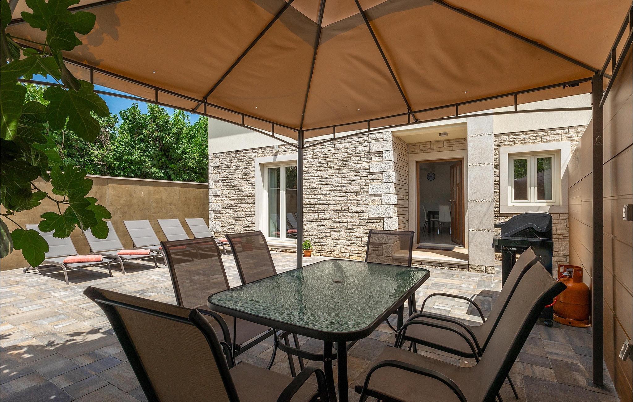 Die Villa Leni Kringa befindet sich im zentralen Teil Istriens, in der Nähe von Tinjan und Pazin, sowie in der Nähe von Porec. Die Villa bietet Ruhe und Privatsphäre für bis zu 5 Personen, die hier ihre Zeit verbringen und die einzigartige istrische Landschaft genießen können. Der Außenbereich des Hauses besteht aus einer großen Terrasse, auf der Sie traditionelle istrische Gerichte auf dem Grill zubereiten können, einem Swimmingpool, der bei sommerlichen Temperaturen für Erfrischung sorgt, und Liegestühlen, auf denen Sie sich entspannen und die Sonnenstrahlen einfangen können. Von der Terrasse aus haben Sie direkten Zugang zum inneren Teil des Hauses. Im Erdgeschoss der voll klimatisierten Villa gibt es ein geräumiges Wohnzimmer mit einem gemütlichen Sofa und TV, einen Essbereich und eine voll ausgestattete Küche. Die Treppen führen in das Obergeschoss, wo sich 3 komfortable Schlafzimmer und ein Bad mit Duschkabine befinden. Zwei Zimmer bieten Schlafmöglichkeiten in Einzelbetten, und es gibt auch ein großes Zimmer mit einem Doppelbett. Buchen Sie die Villa Leni Kringa und genießen Sie Ihren Urlaub mit einem privaten Pool und Ihren Liebsten!Die Villa Leni Kringa befindet sich in Zentralistrien in der Nähe der Städte Porec und Pazin. Auch die Stadt Rovinj befindet sich in direkter Nähe. Mittelistrien ist bekannt für seine kleinen, attraktiven und mediterranen Städte. In der Umgebung von Kringa gibt es hervorragende Restaurants, Cafés, Weinhandlungen und lokale Geschäfte. Diese charmante und ruhige Gegend ist nicht nur für ihre historischen und kulturellen Sehenswürdigkeiten bekannt, sondern auch für ihre ausgezeichnete, köstliche istrische Küche. In der Umgebung gibt es zahlreiche Rad- und Wanderwege, während die berühmten Strände entlang der schönen Küste nur eine kurze Autofahrt durch die idyllische Landschaft entfernt sind. Für Spaß und Lachen im Familienurlaub ist der Adrenalinpark Kringa, der sich direkt neben der Villa befindet, die ideale Idee!