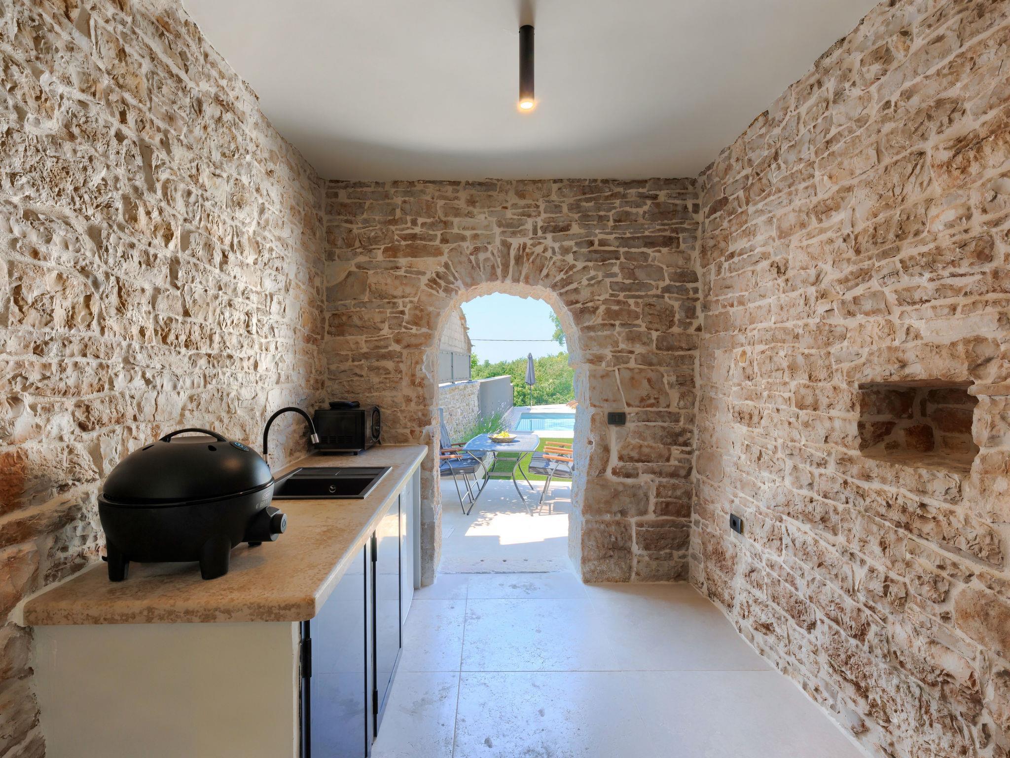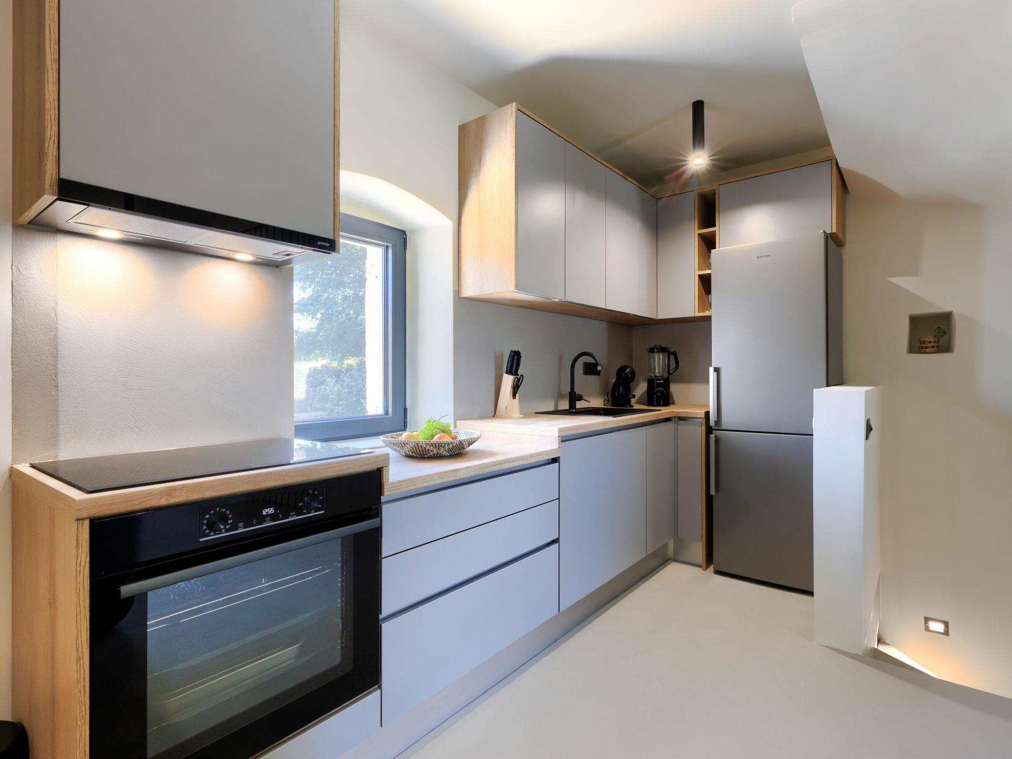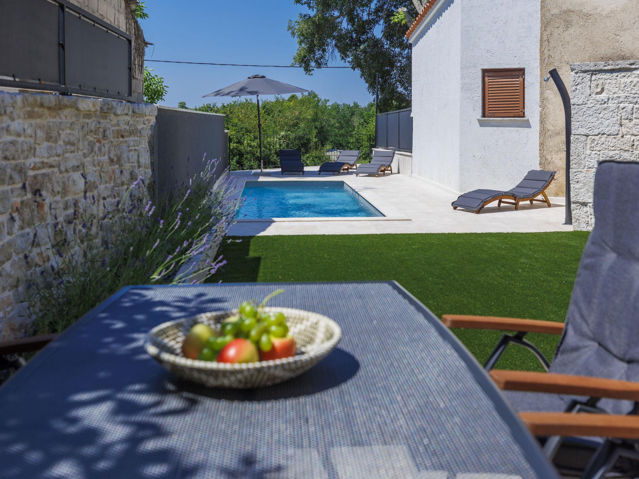 Schönes Reihenhaus "Villa Luca", auf 3 Stockwerken, renoviert im Jahre 2022. Im Weiler Muntrilj, 4 km vom Zentrum von Tinjan, sonnige Lage, 20 km vom Meer. Zur Alleinbenutzung: Grundstück 200 m2 (eingezäunt), Schwimmbad eckig (22 m2, 150 cm tief, saisonale Verfügbarkeit: 01.Mai. - 01.Okt.) mit Innentreppe. Aussendusche, Terrasse (15 m2), Gartenmöbel, Grill, Poolpflege durch den Besitzer/Gärtner. Im Hause: Internetzugang, Waschmaschine. Parkplatz (für 2 Autos) beim Haus auf dem Grundstück. Einkaufsgeschäft 4 km, Restaurant 4 km, Bar 4 km, Bushaltestelle 3.5 km, Kieselstrand 20 km, Felsstrand 20 km. Wanderwege ab Haus 100 m, Radweg 150 m. Nahe gelegene Sehenswürdigkeiten: Adrenalin park 8 km. Der Besitzer akzeptiert keine Jugendgruppen.